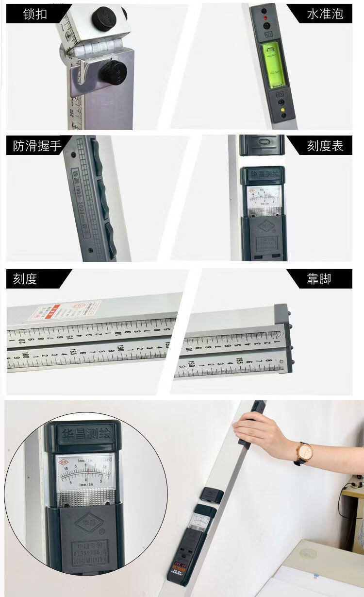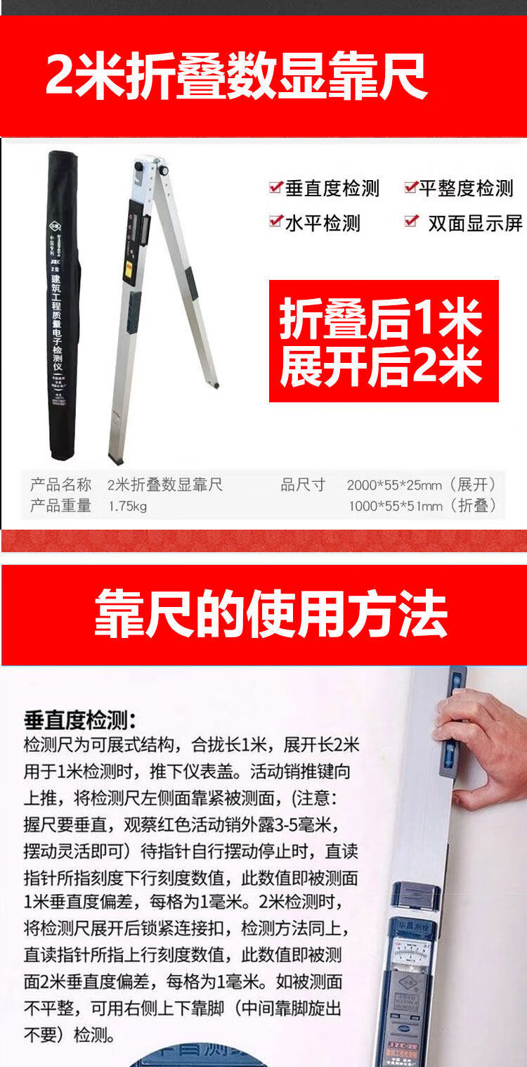 YWZR Huachang 2-meter folding ruler high-precision engineering inspection ruler aluminum alloy level ruler wall vertical digital display measurement digital display model 2-meter ruler + feeler ruler + internal and external right-angle ruler, free tape measure