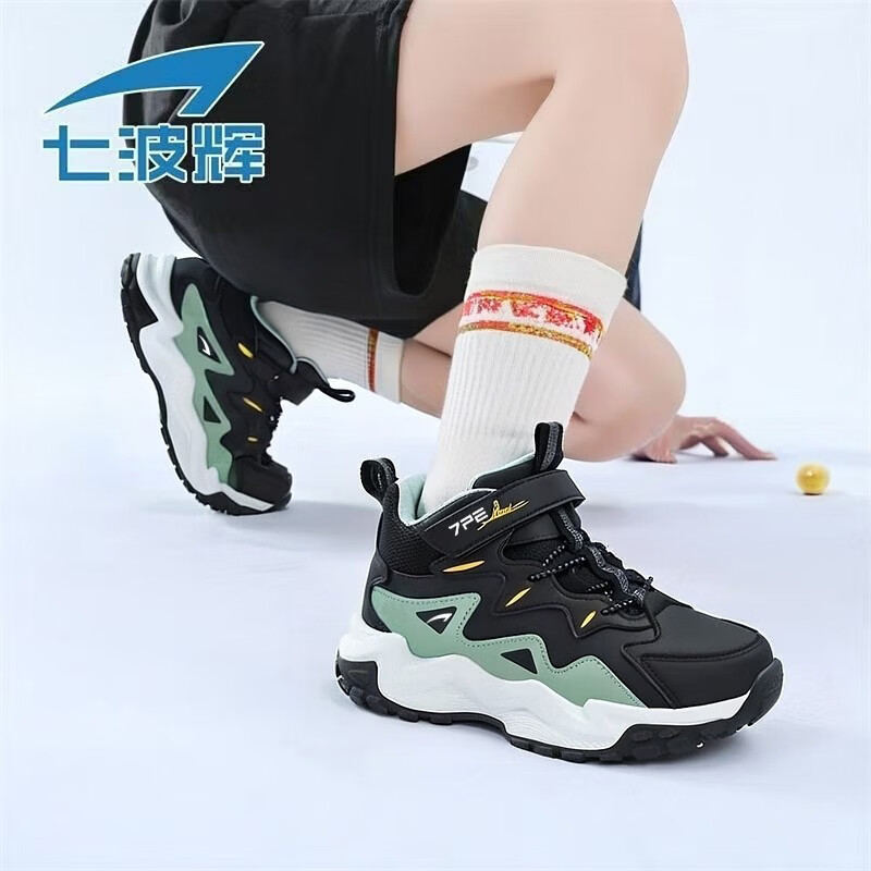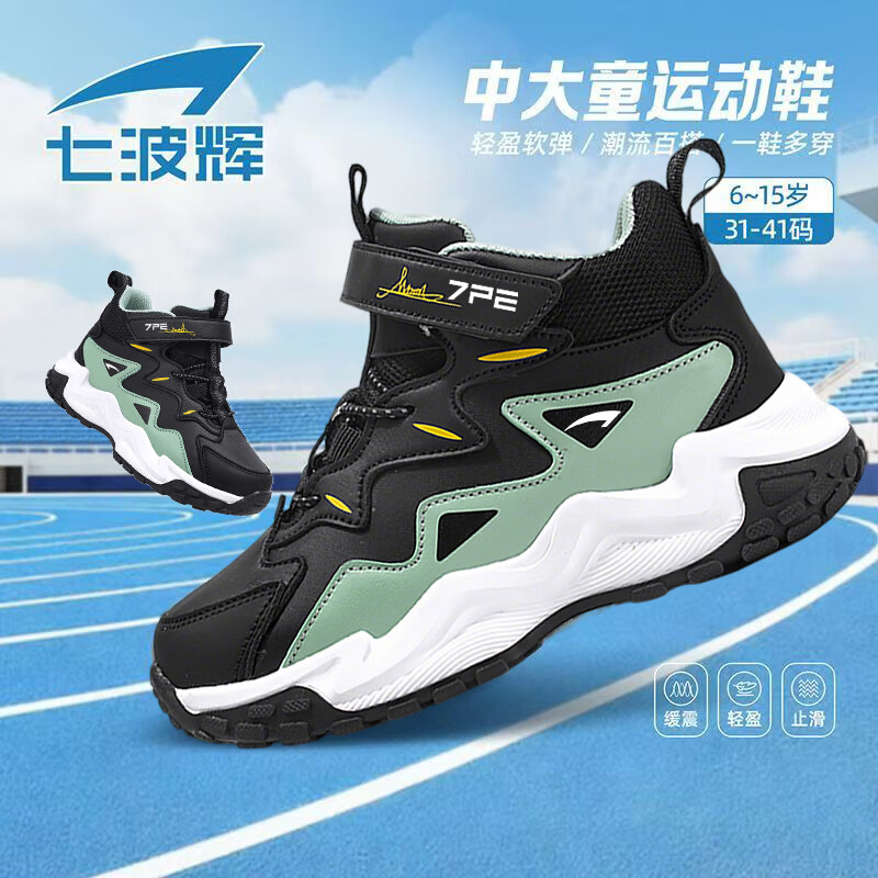 Qibohui (7-PE) Boys' Sports Shoes 2026 Spring New Boys Leather Waterproof Youth Running Shoes Children's Shoes Casual Shoes Green 30