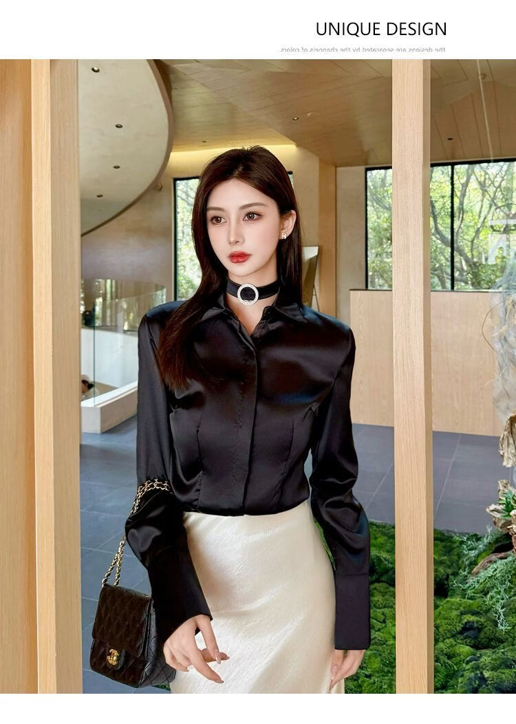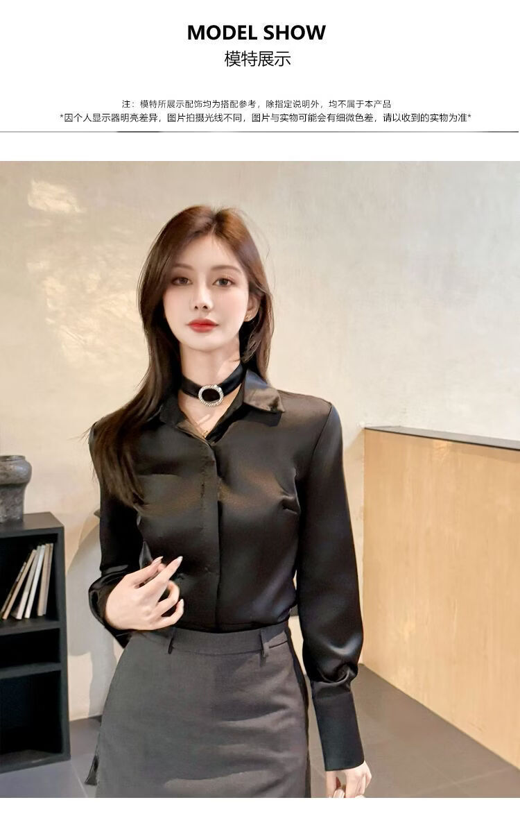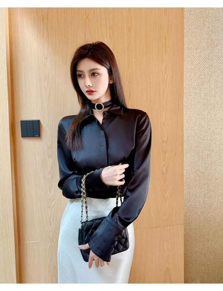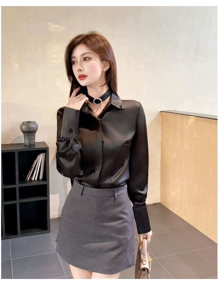 Playboy (PLAYBOY) black polo collar long-sleeved shirt for women early spring new temperament casual shirt unique chic top official flagship black S 80-95Jin Jin is equal to 0.5 kg