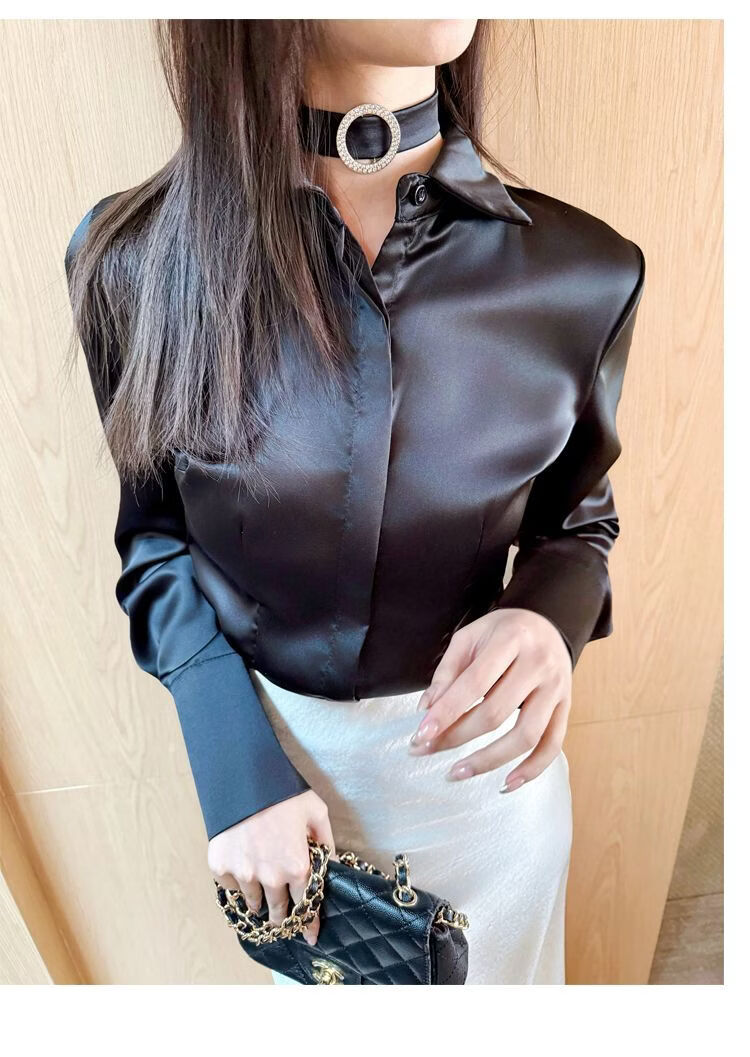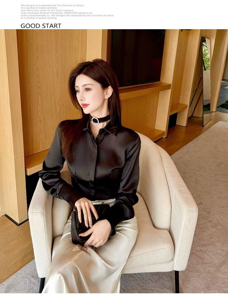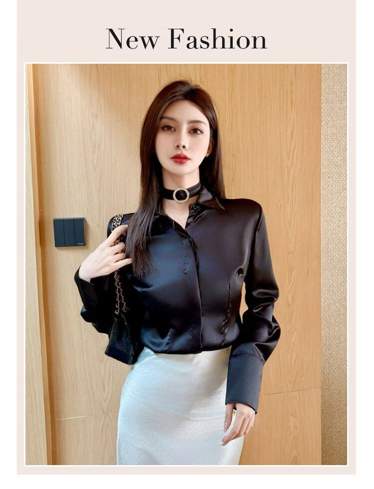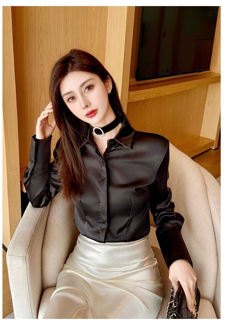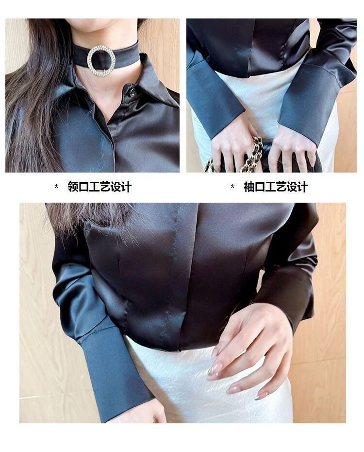 Playboy (PLAYBOY) black polo collar long-sleeved shirt for women early spring new temperament casual shirt unique chic top official flagship black S 80-95Jin Jin is equal to 0.5 kg