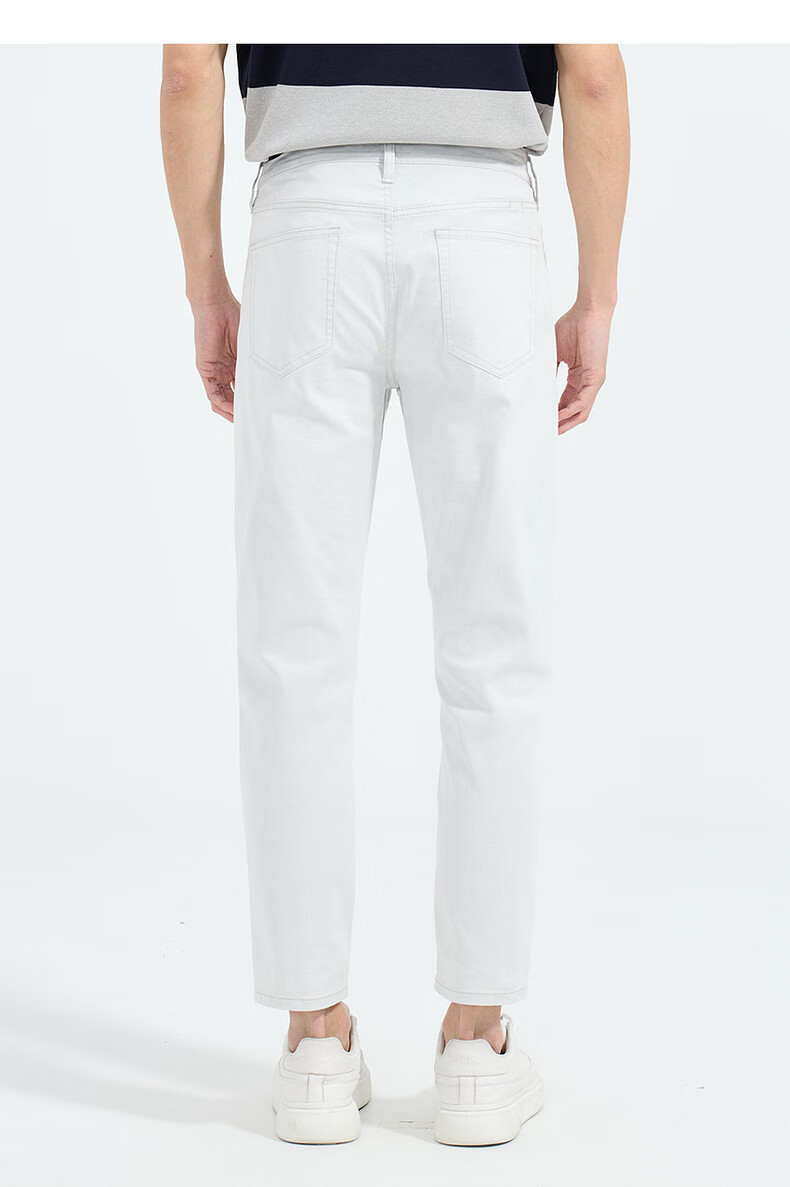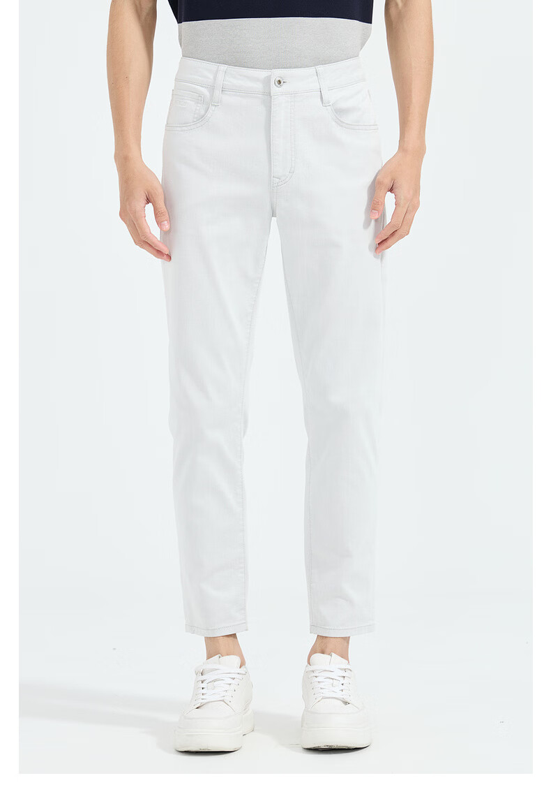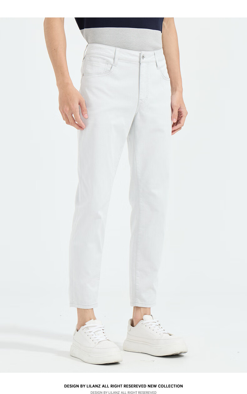 LiLang Light Fashion Men's Clothing Shopping Mall Same Style Jeans Men's Pure White Stretch Easy-Care Lightweight Breathable Nine-Point Pants White (01) 28 (160/72A)