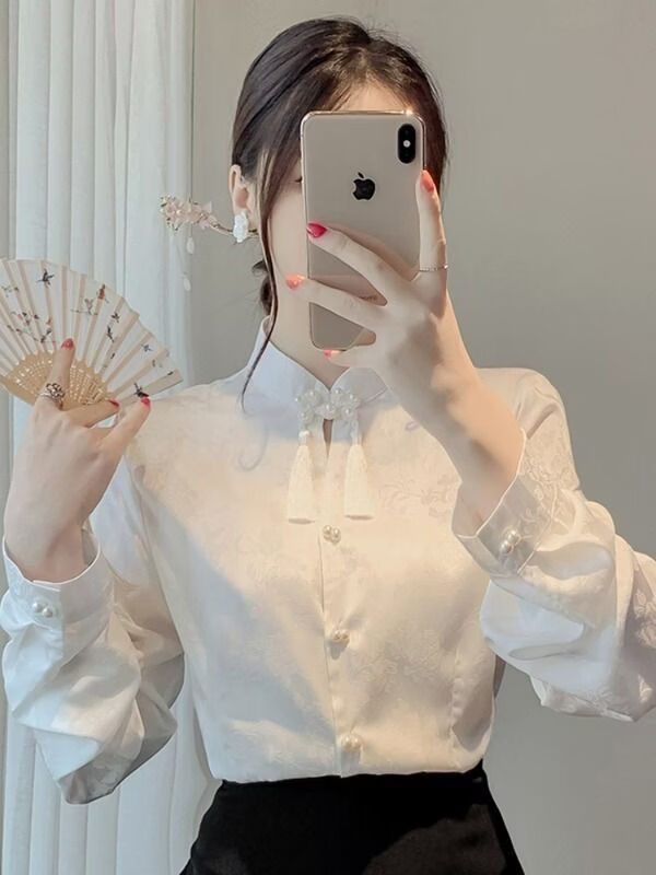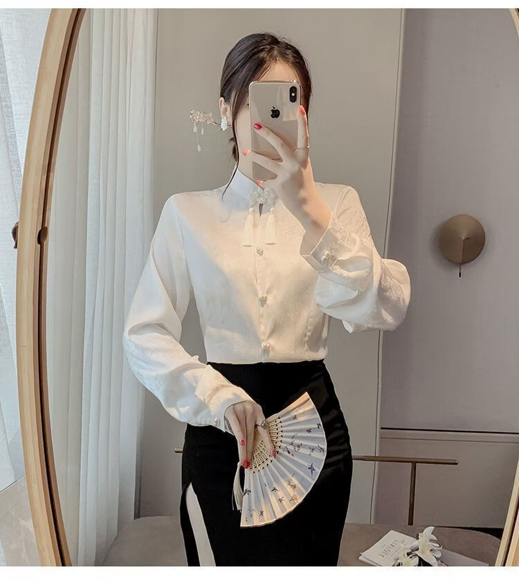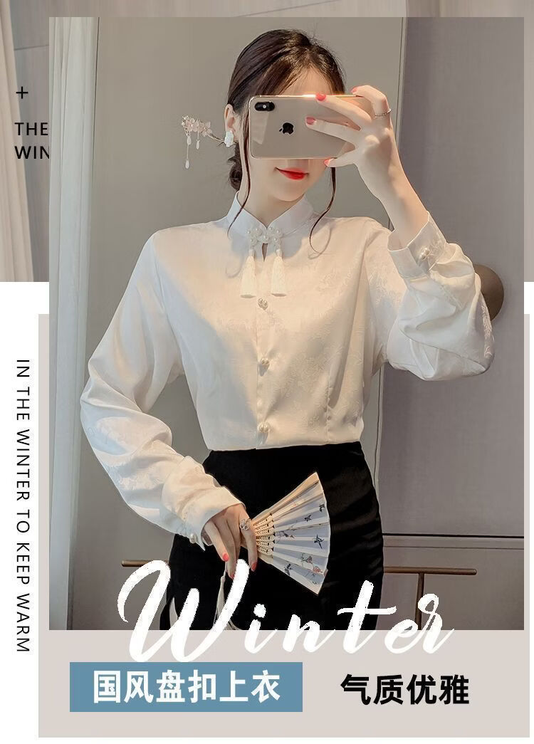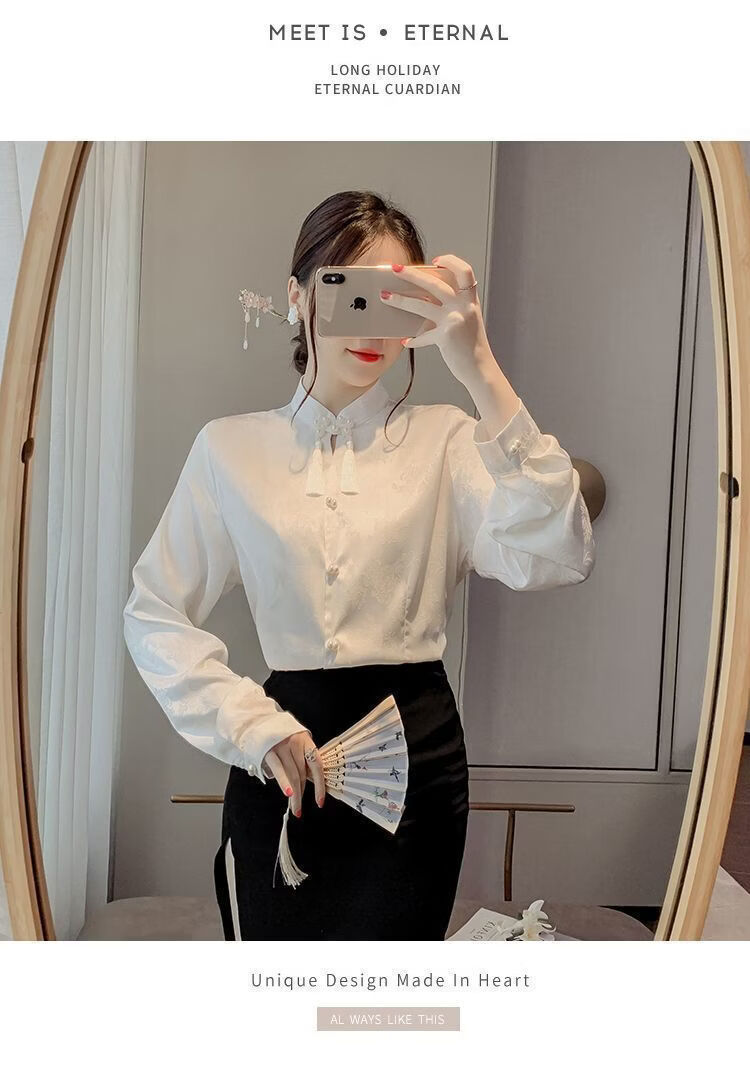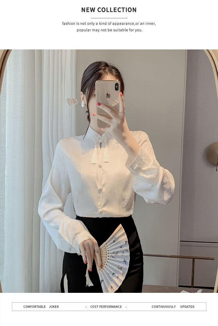 Playboy (PLAYBOY) new Chinese style plate button stand collar shirt women's design niche women's casual national style shirt spring light national style top official flagship white follow the store for priority delivery XS
