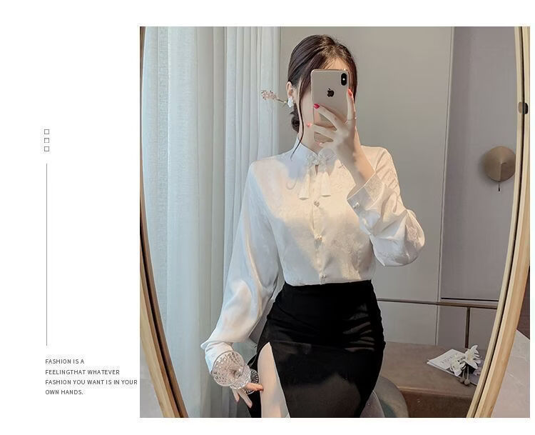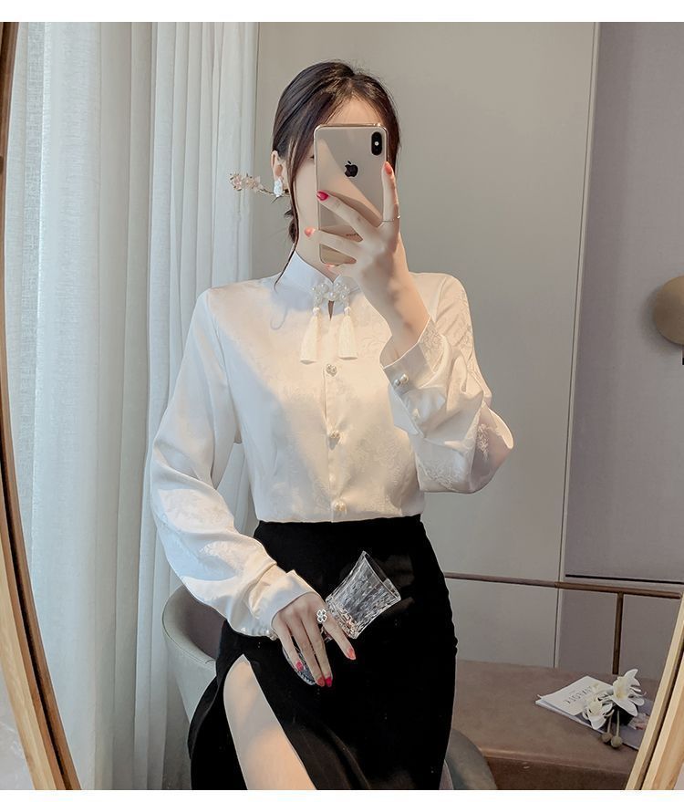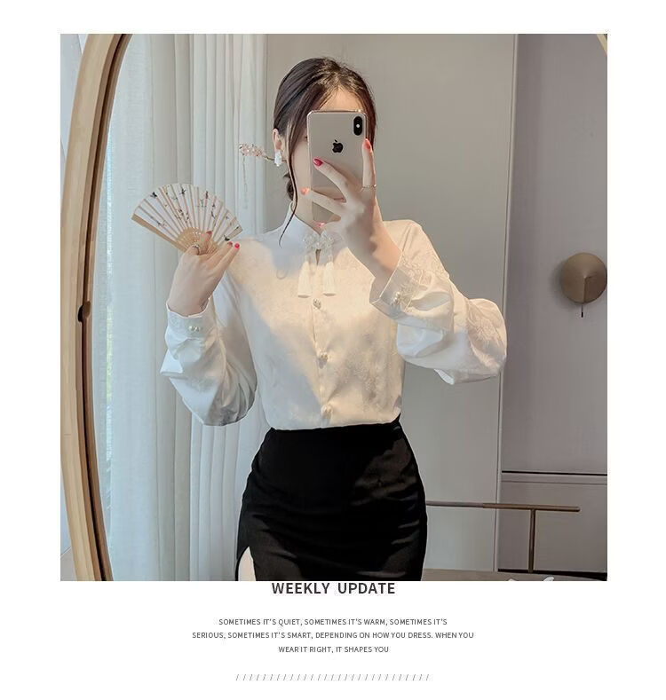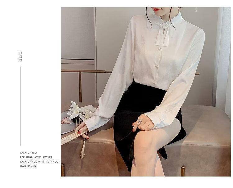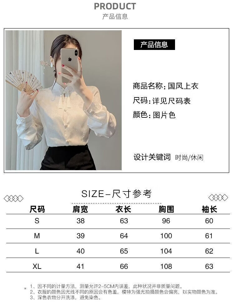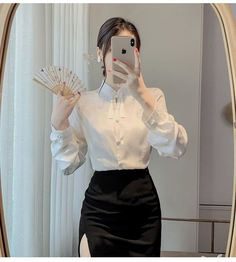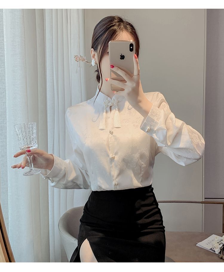 Playboy (PLAYBOY) new Chinese style plate button stand collar shirt women's design niche women's casual national style shirt spring light national style top official flagship white follow the store for priority delivery XS