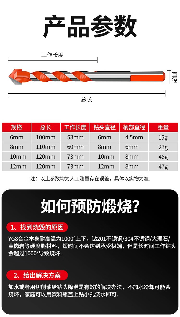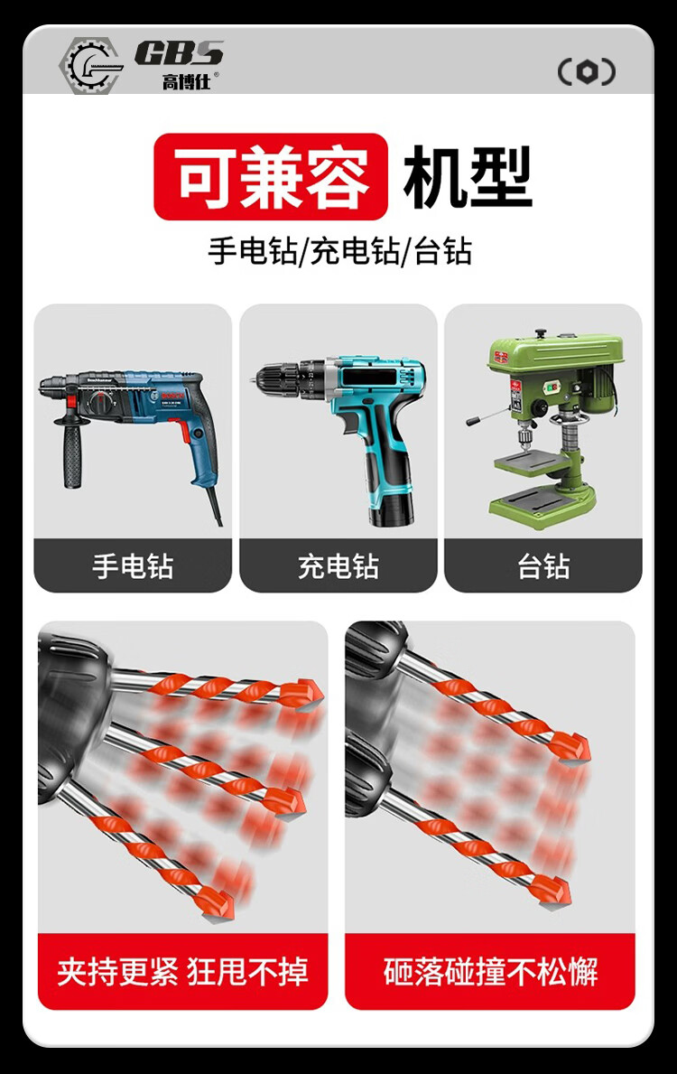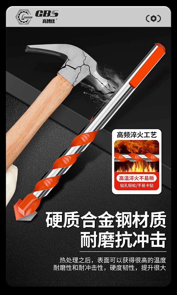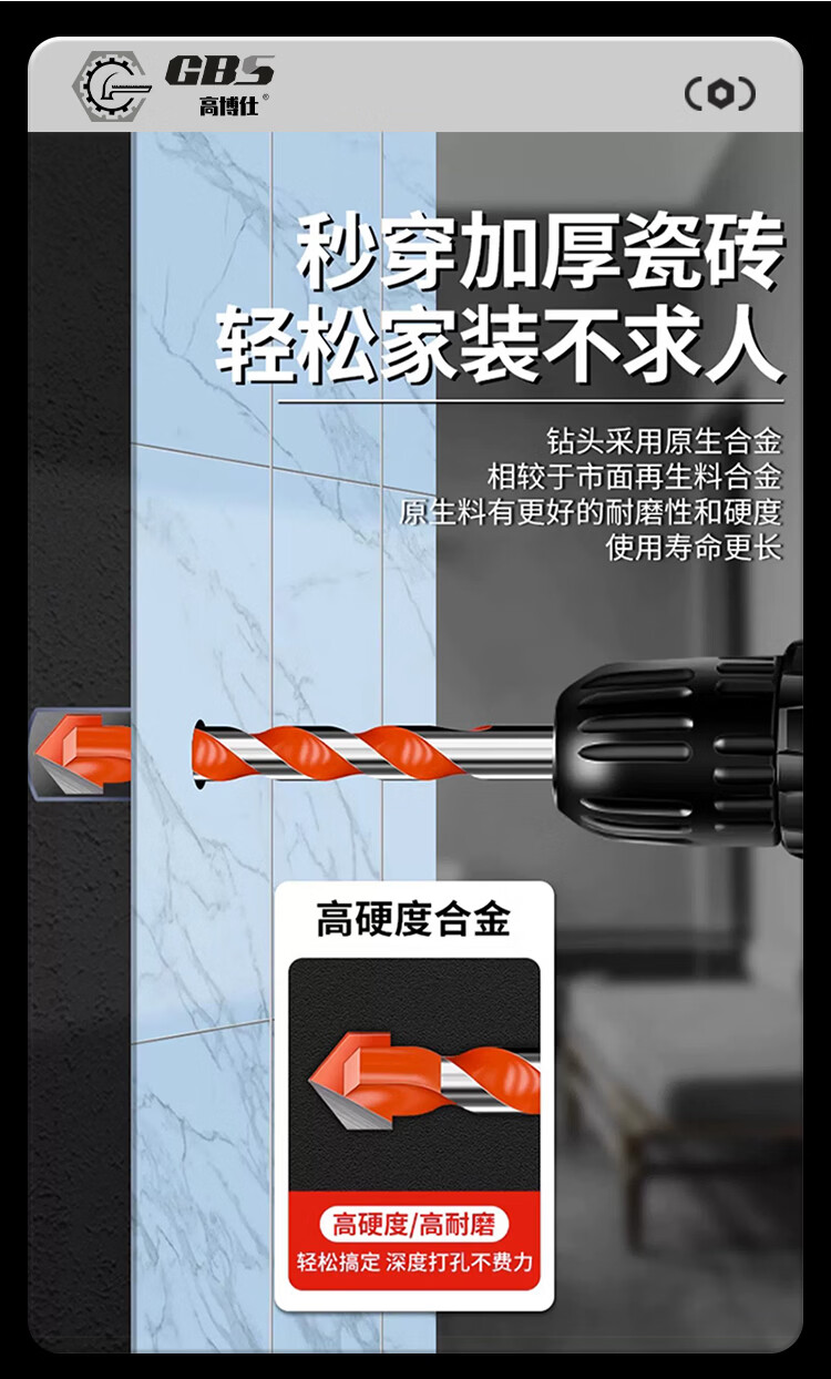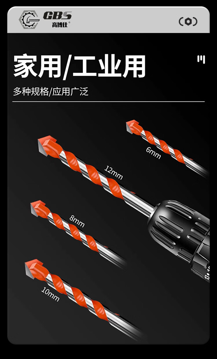 Goboshi Industrial Grade Tile Drill Bits for Concrete Drilling Alloy Triangle Overlord Drill Glass Cement Hand Electric Drill Alloy Overlord Drill 6+8 Two Pairs