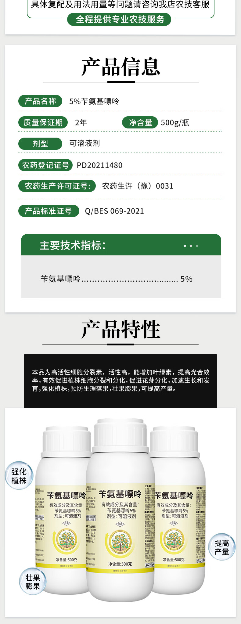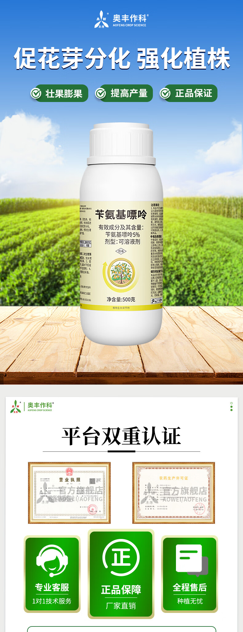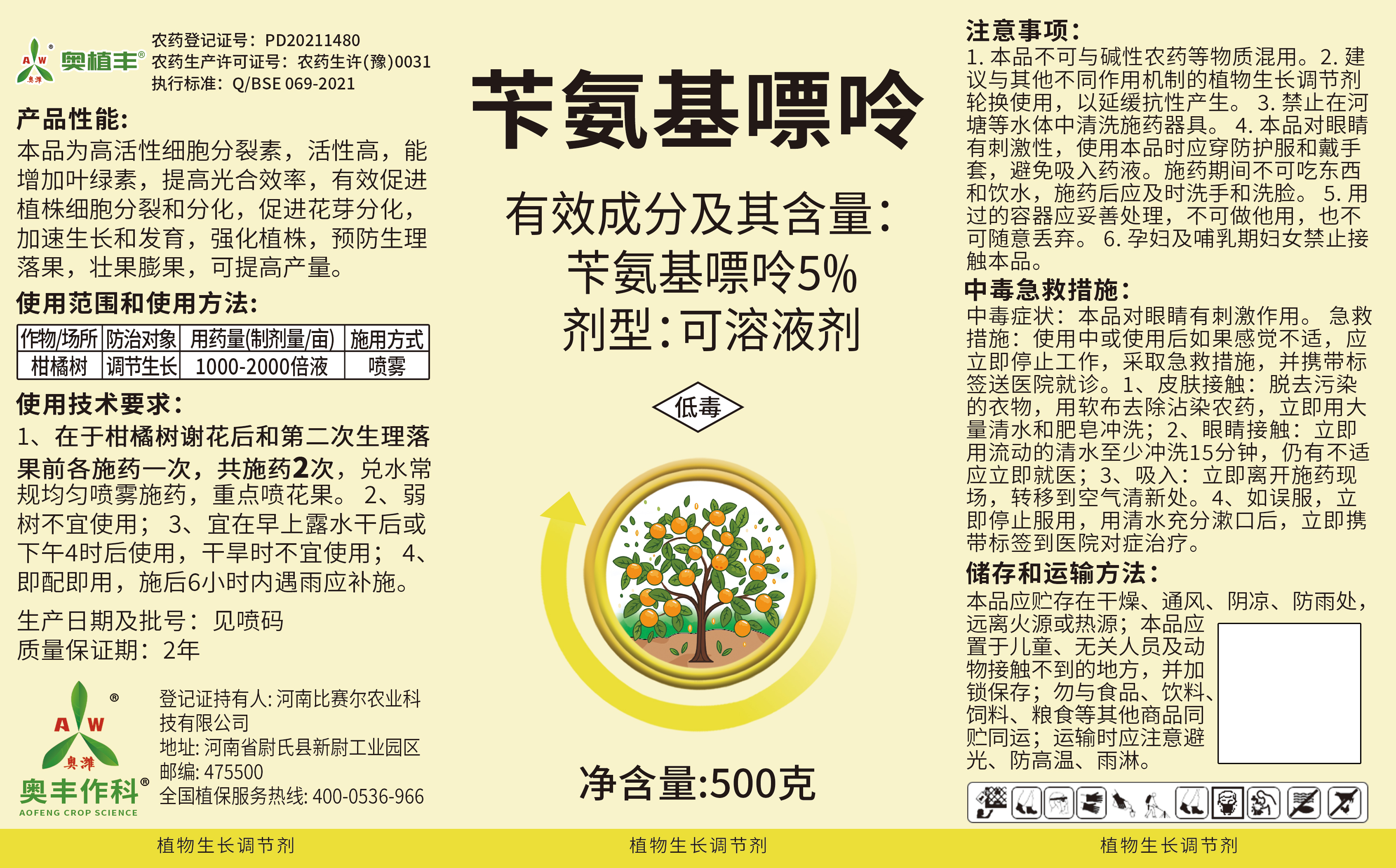 Aowei benzylaminopurine promotes fruit tree flower bud differentiation and growth regulator citrus fruit expansion, increases yield and strengthens plants 500g*4 bottles