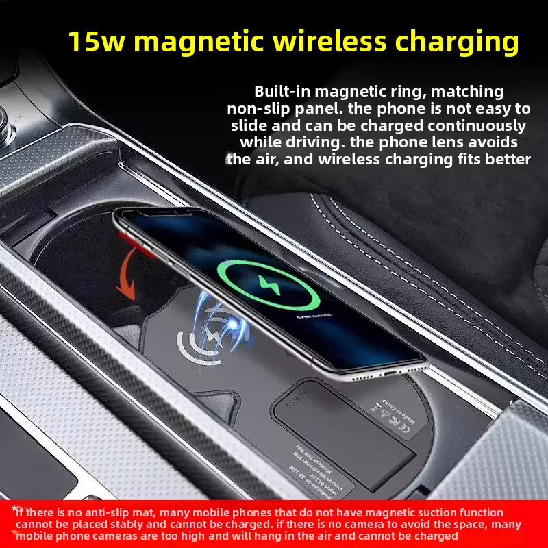 Yusenyi is suitable for 19-25 Audi A6LA7L wireless central control modified expansion base for mobile phone fast charging and cigarette lighting (1218 models A6LA7 magnetic wireless)-TypeC-Apple fast charging retractable cable
