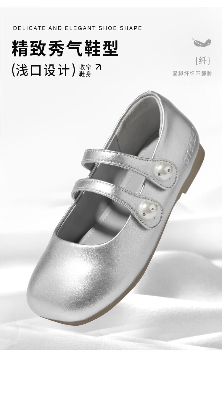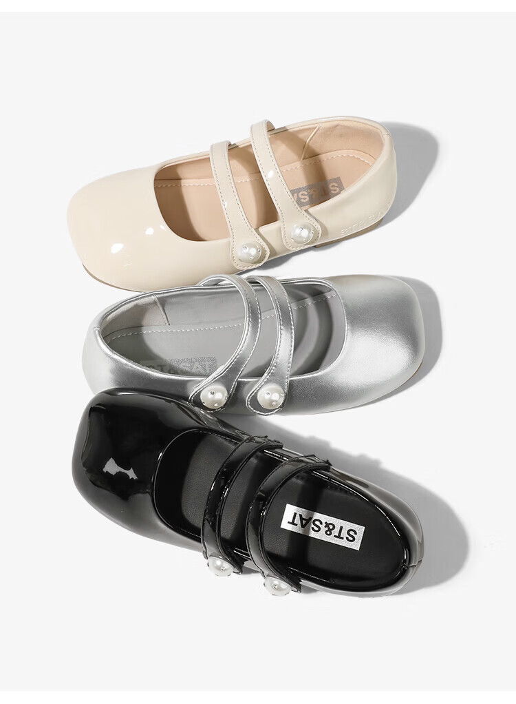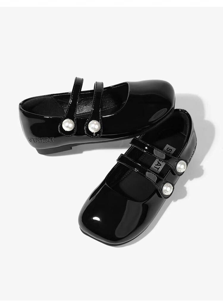 Saturday Girls Princess Shoes 2026 Spring and Summer New Pearl Performance Shoes Soft Sole Girls Single Shoes Sweet Small Leather Shoes Obsidian Black 28 Shoe Inner Length 18.1cm/Suitable for Foot Length 17.3cm