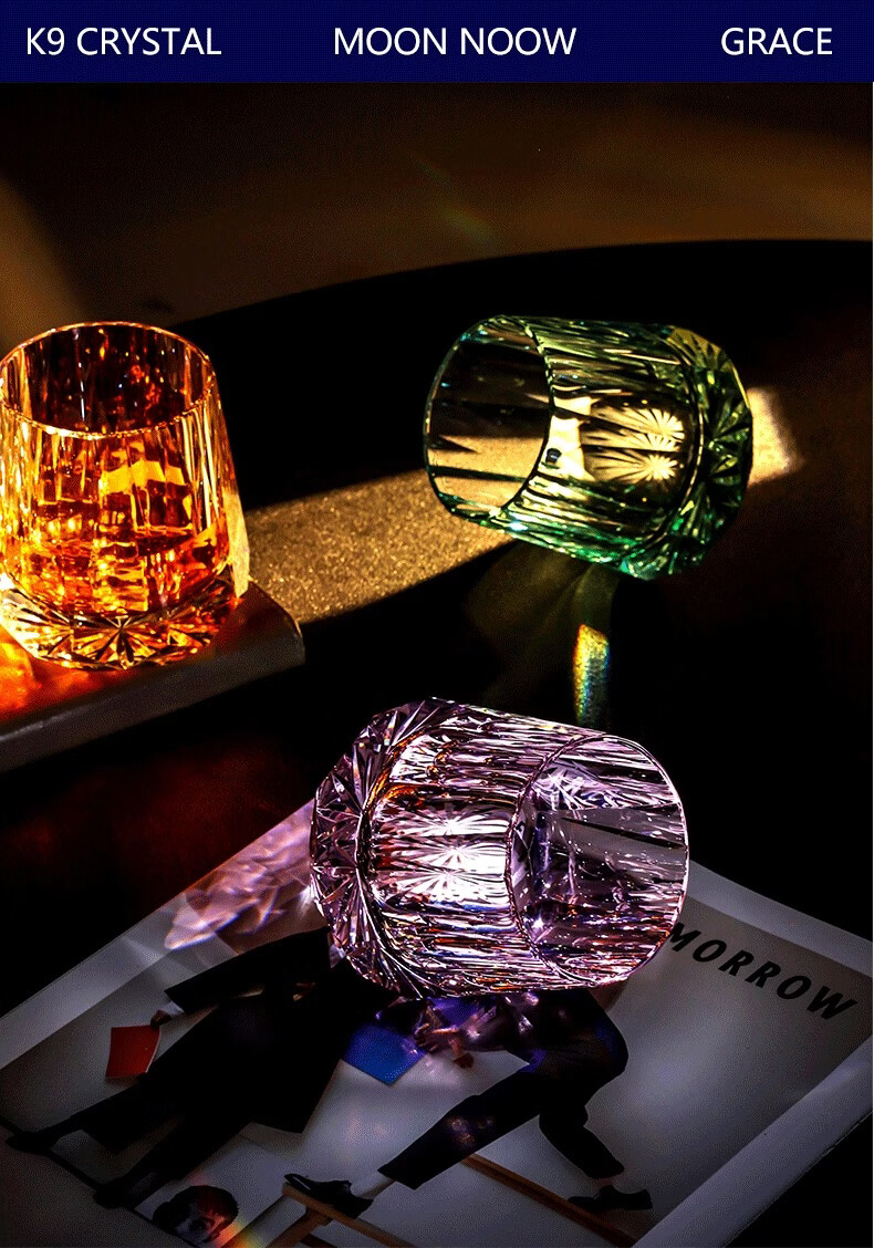 The shopkeeper's high-end Edo Kiriko K9 crystal handmade faceted lead-free whiskey glass for home light luxury wine glass gift box K9 crystal eternity + cherry blossom pink gift box