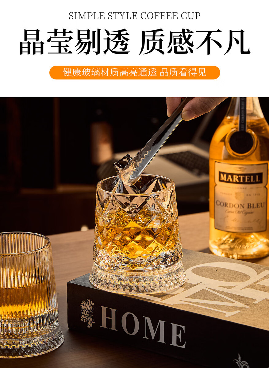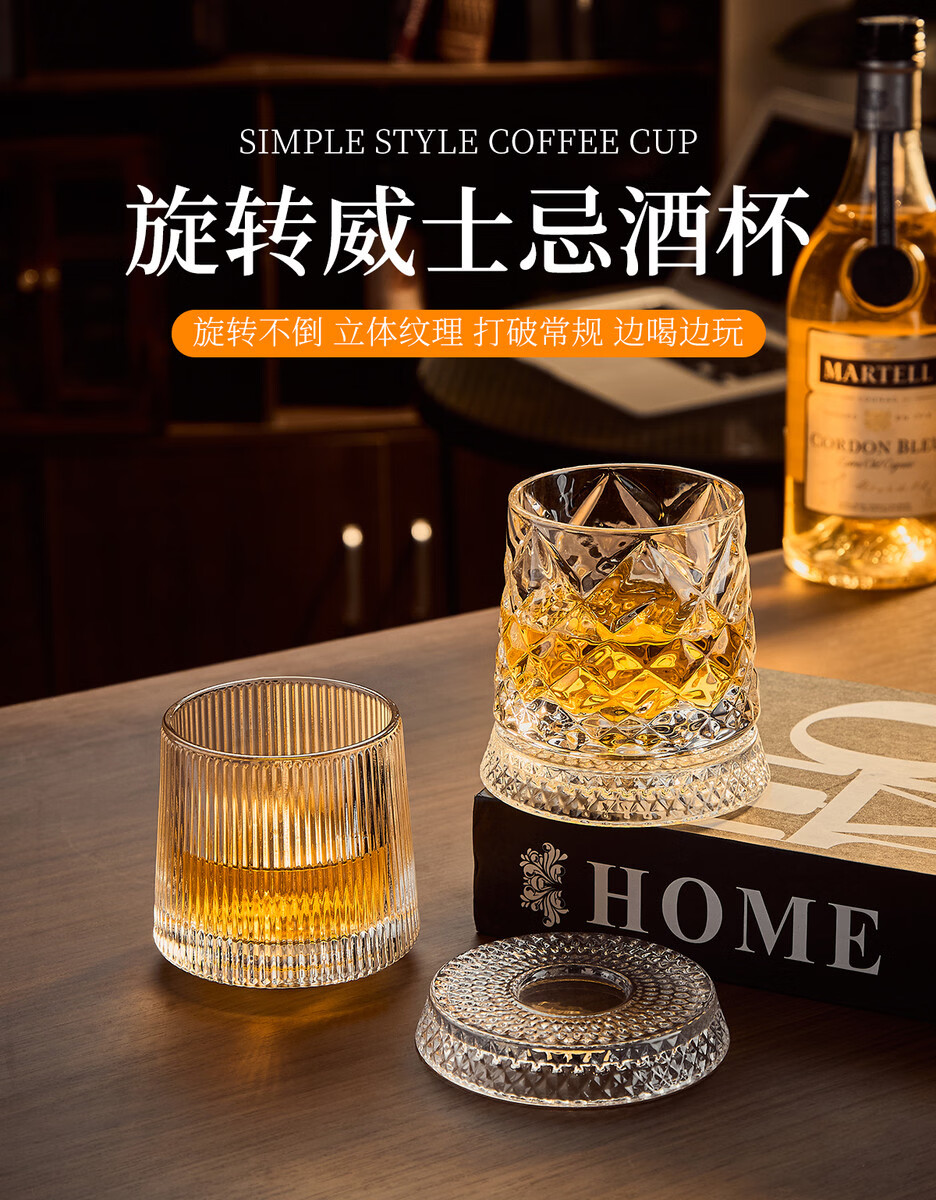 Sanqihu Internet celebrity's same style rotatable whiskey glass creative crystal wine glass beer glass decompression artifact glass base ice flower rotating cup + 2 pieces