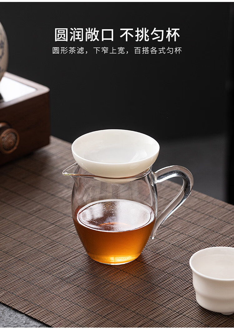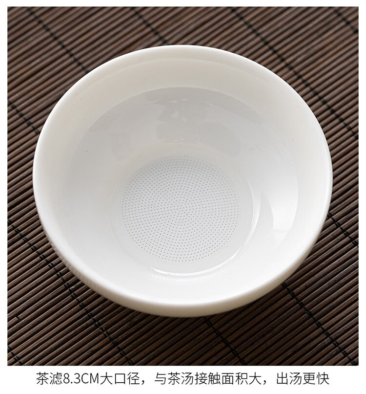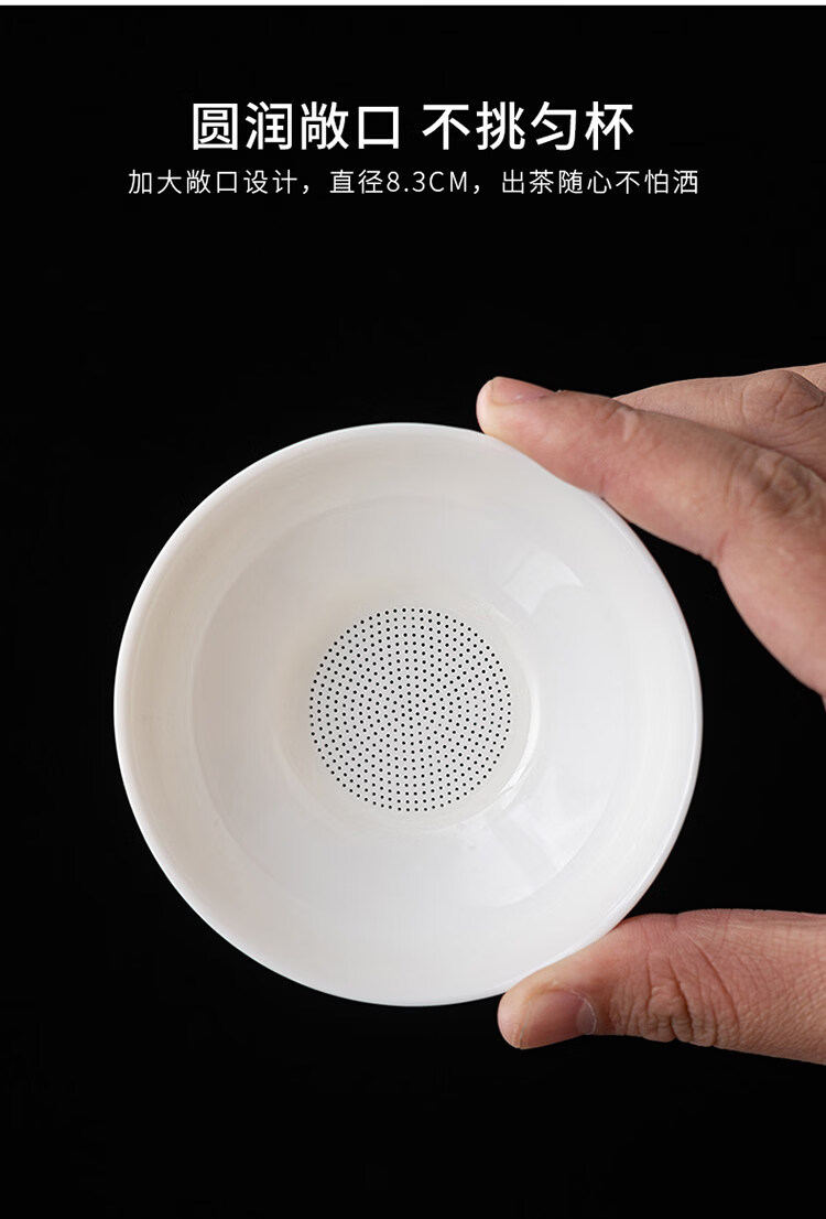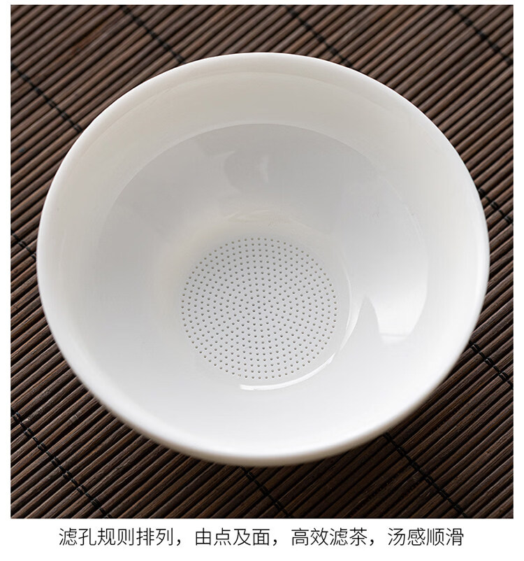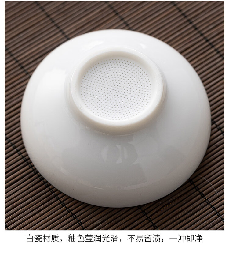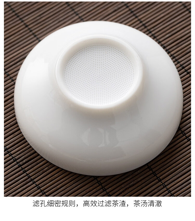Weiyang mutton-fat jade white porcelain tea leakage tea filter household integrated tea strainer net tea set accessories tea divider male cup tea making mutton-fat jade tea leakage 1183 holes + Polygonatum odorifera base
