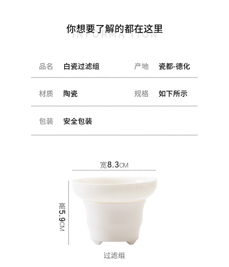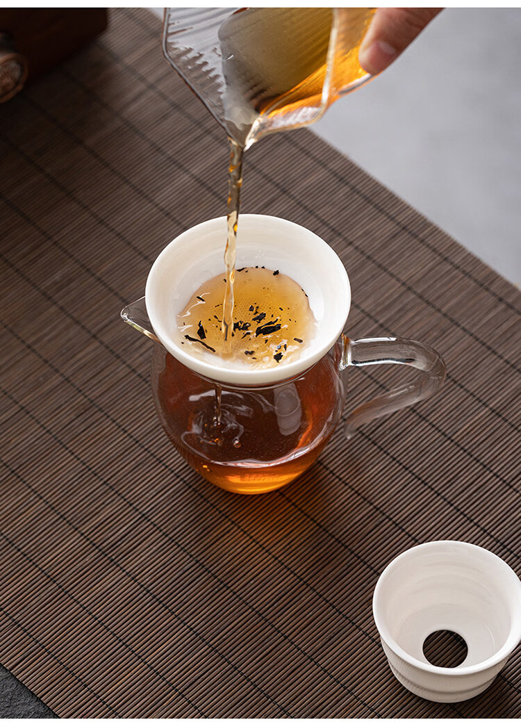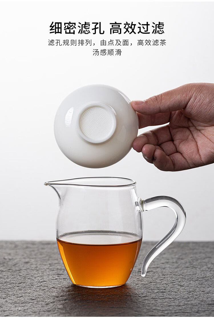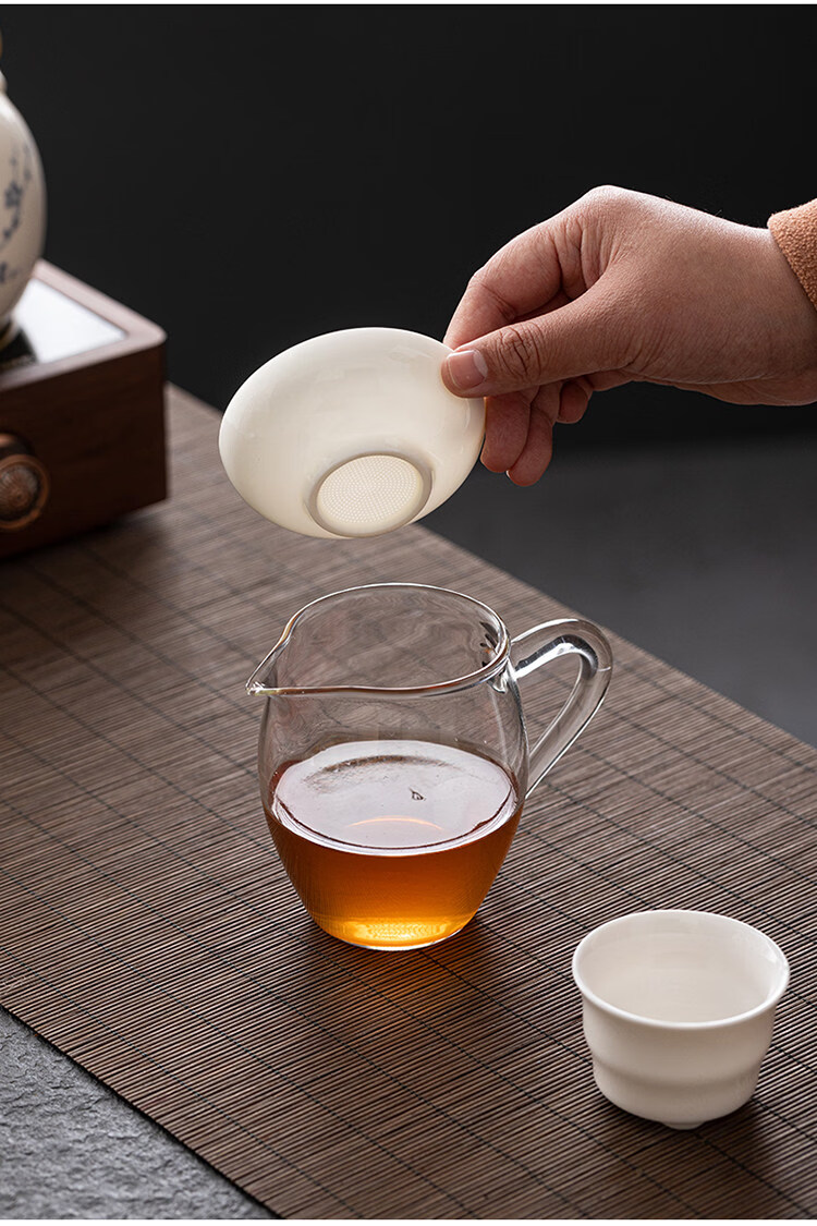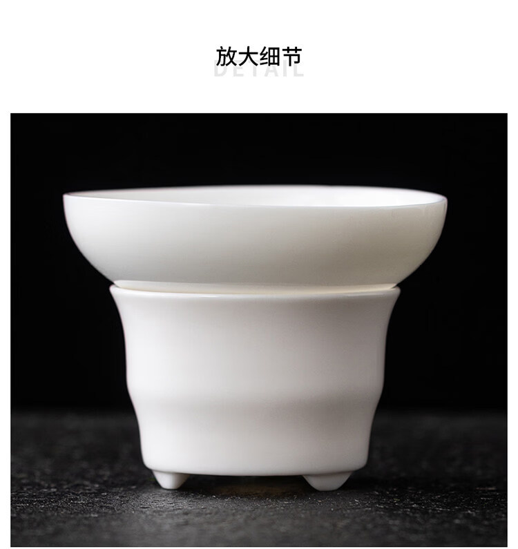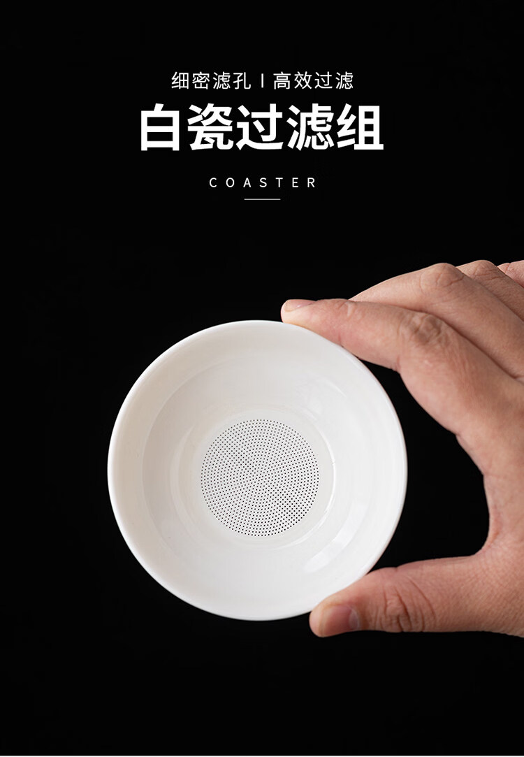 Weiyang mutton-fat jade white porcelain tea leakage tea filter household integrated tea strainer net tea set accessories tea divider male cup tea making mutton-fat jade tea leakage 1183 holes + Polygonatum odorifera base