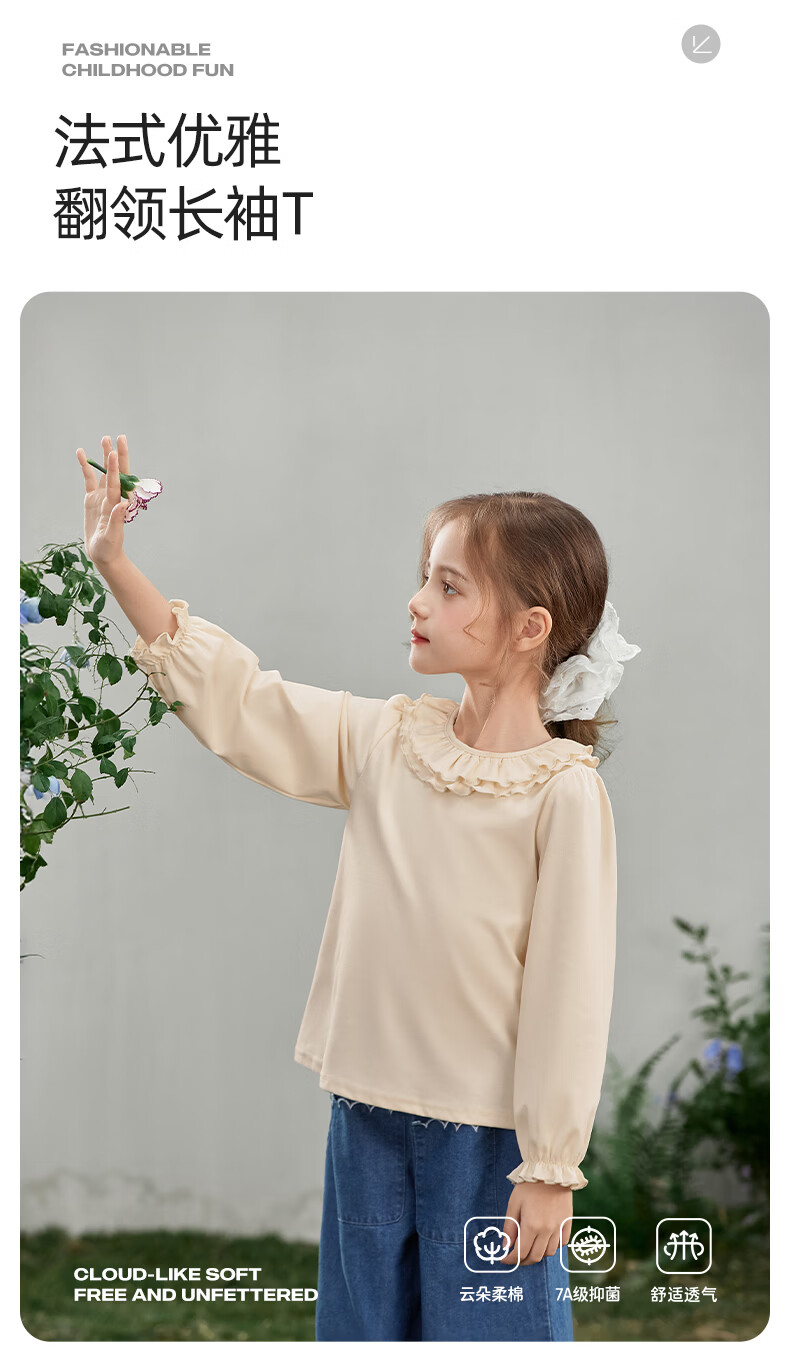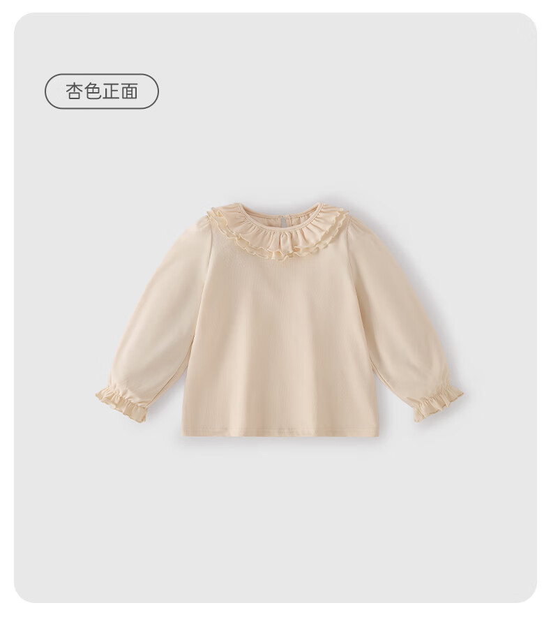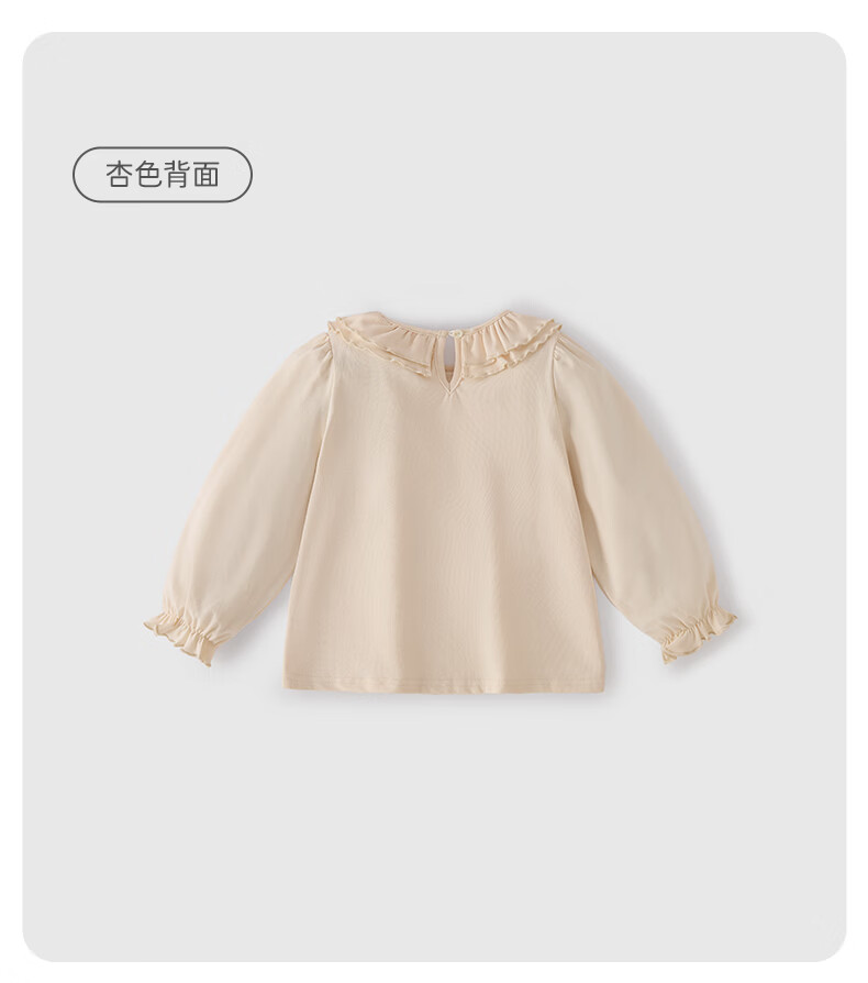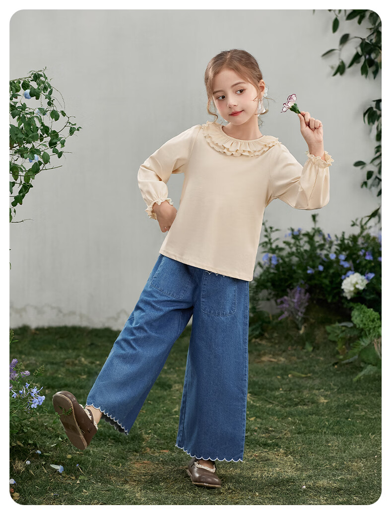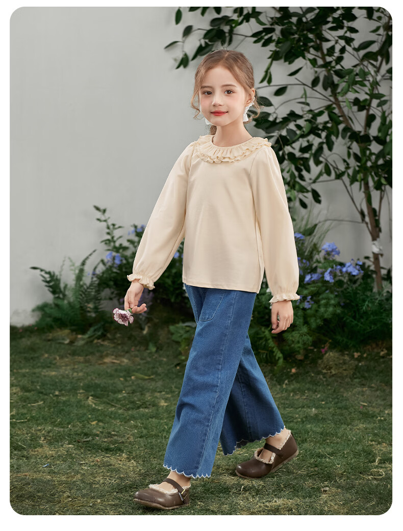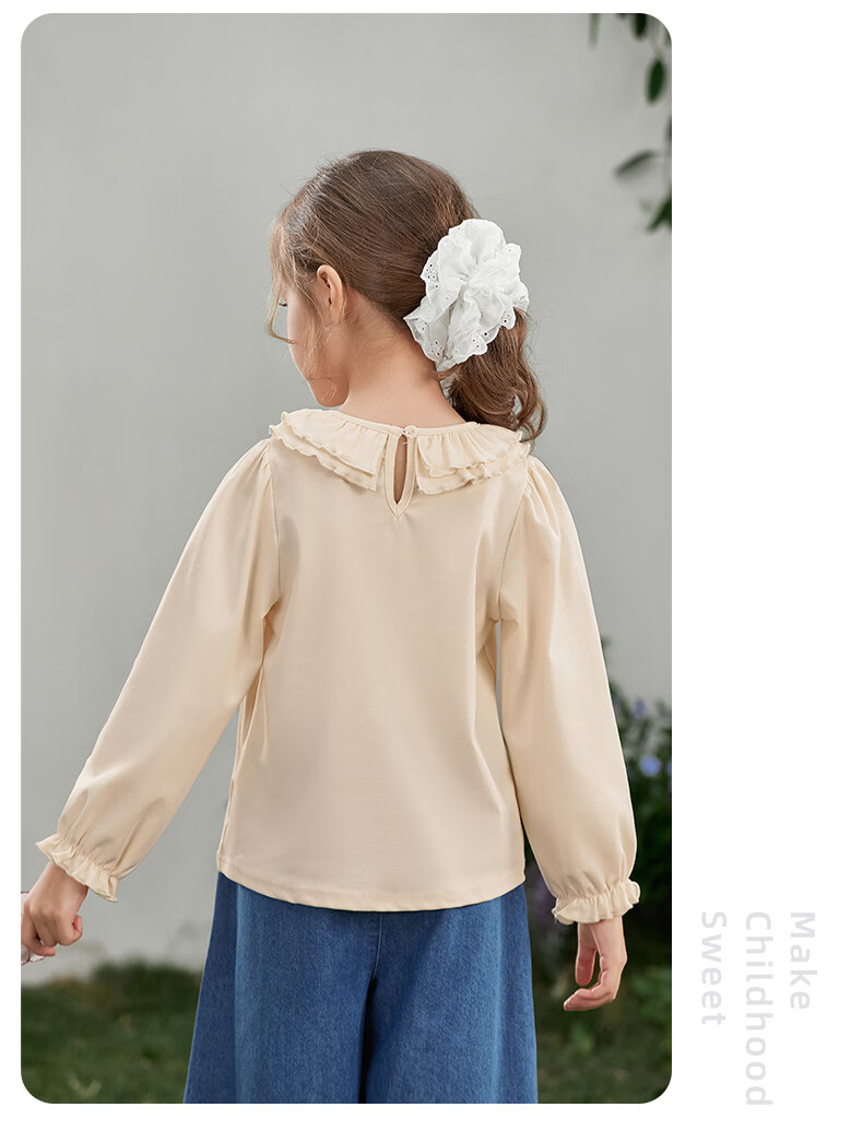 JELLYBABY French solid color lace long-sleeved T-shirt 26 new spring style girls lapel T-shirt antibacterial and soft big children yellow 110