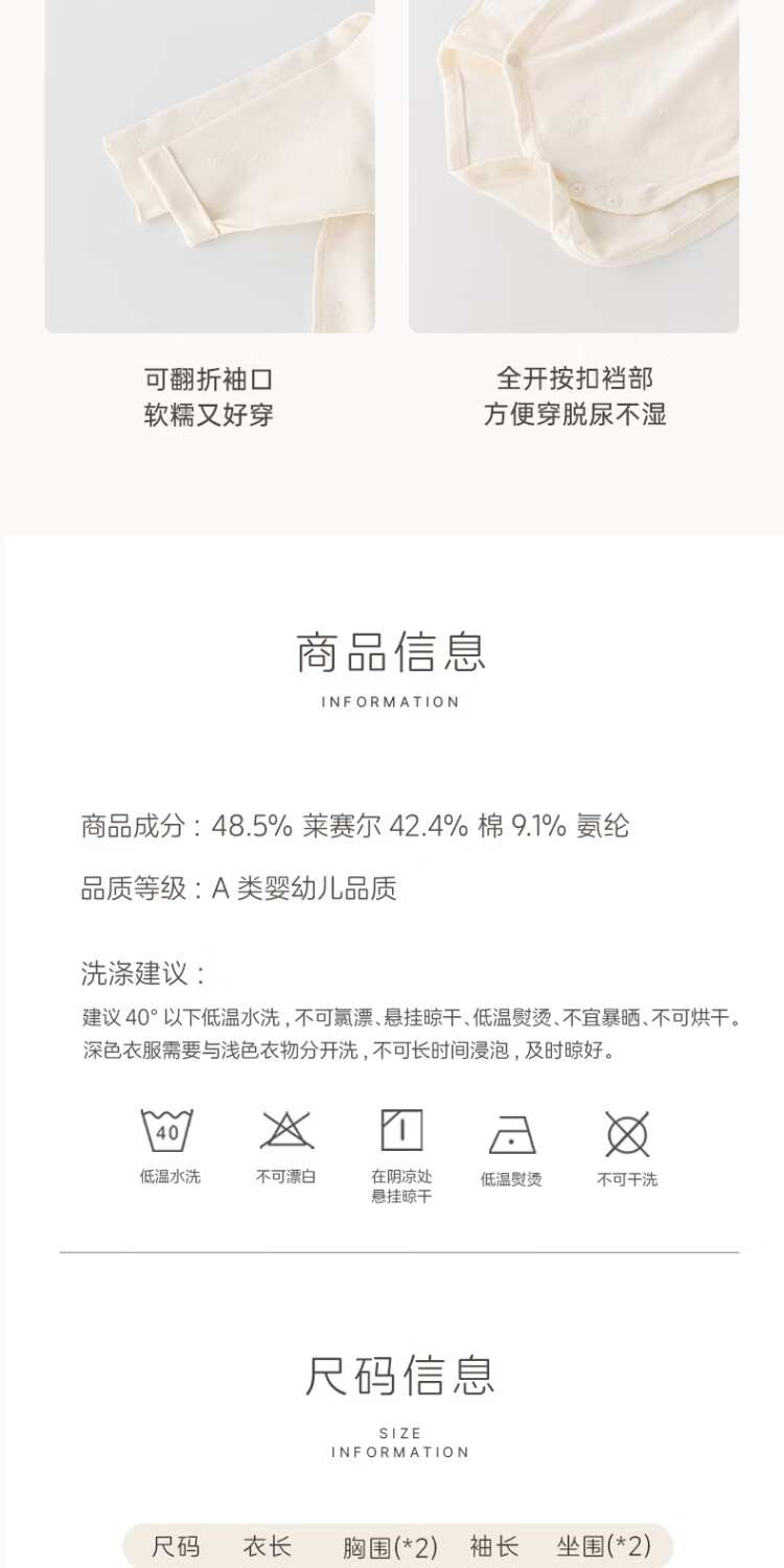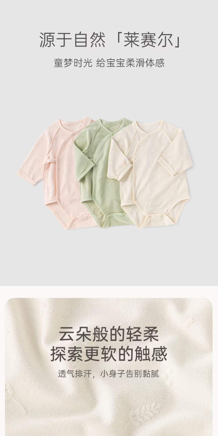 Wooden cotton lyocell newborn elastic jumpsuit spring and autumn baby breathable triangle romper baby belly protector fart cover cream pink white 52cm