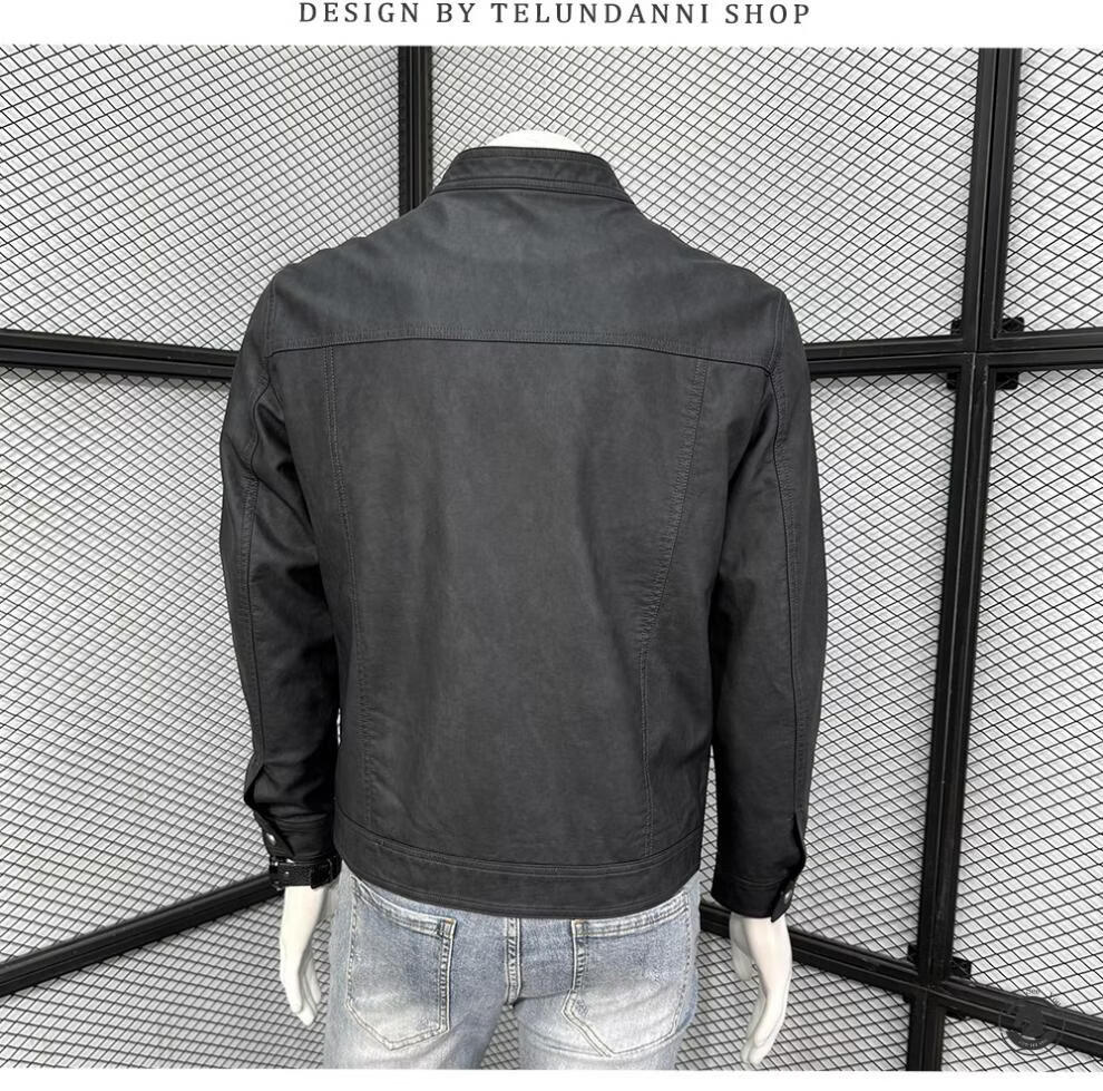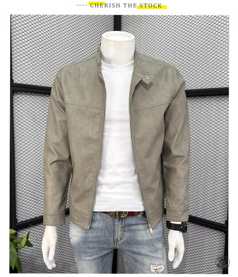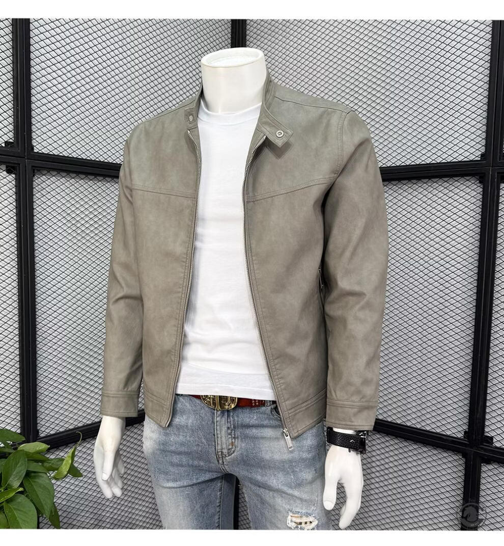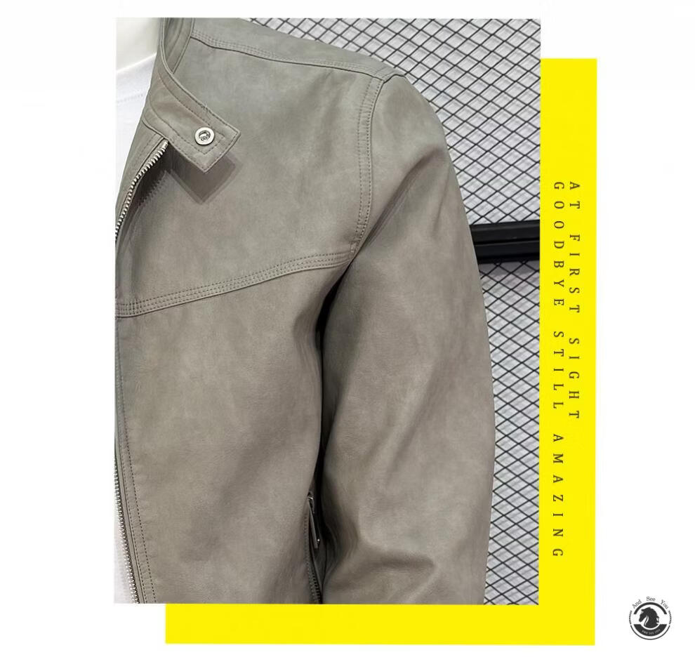 ANDSEEYOU brand men's leather jacket 2026 spring new trendy fashion stand-up collar top versatile casual PU leather jacket gray green L