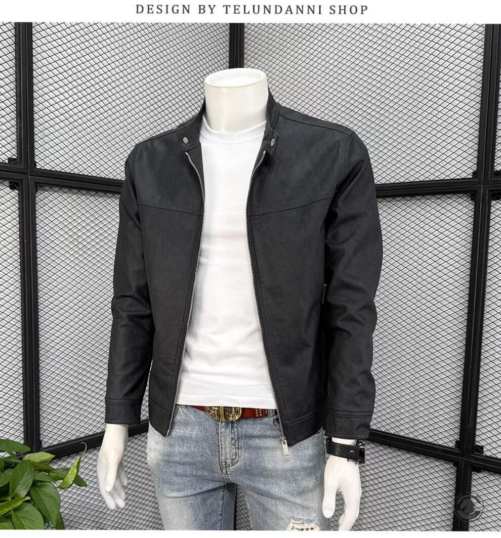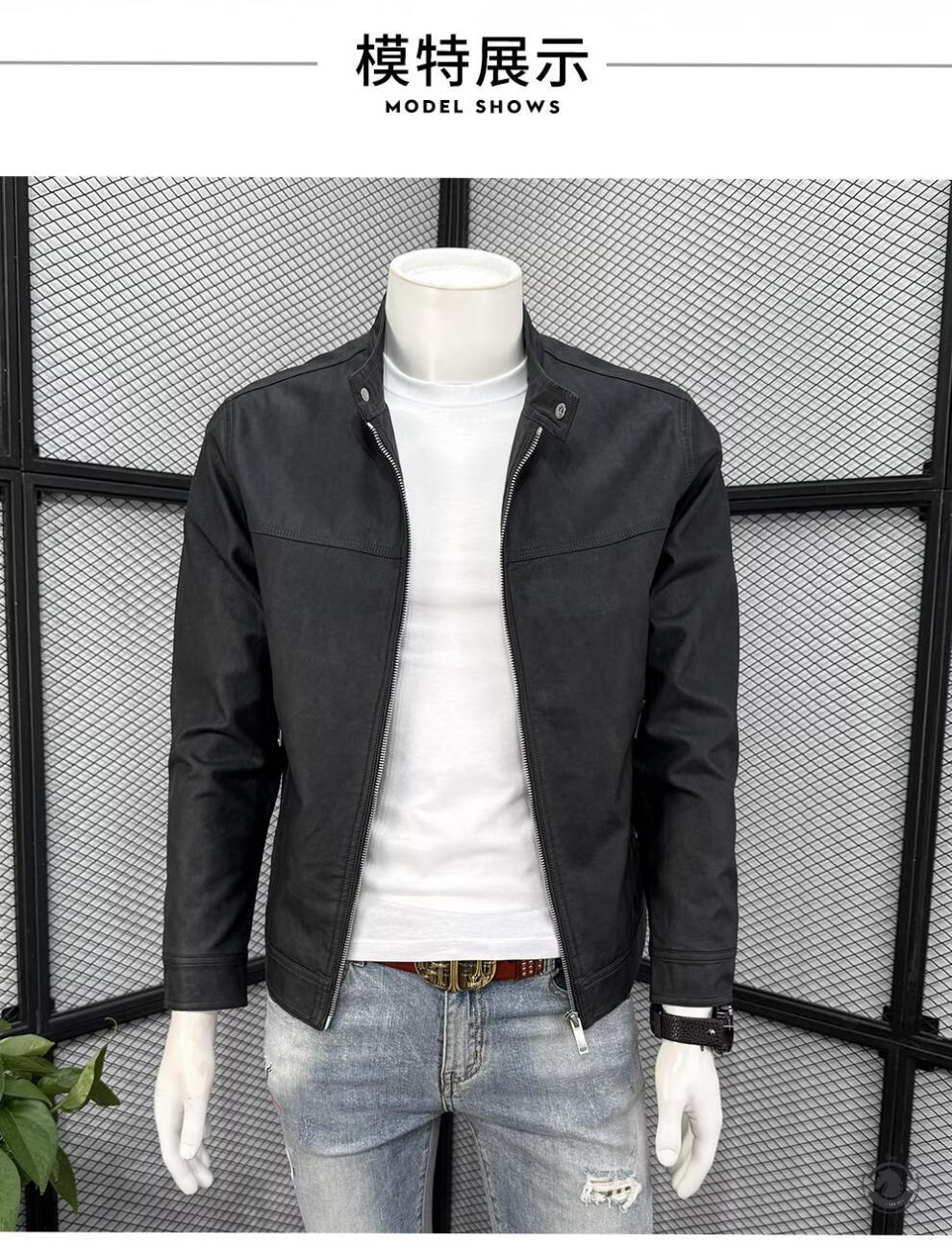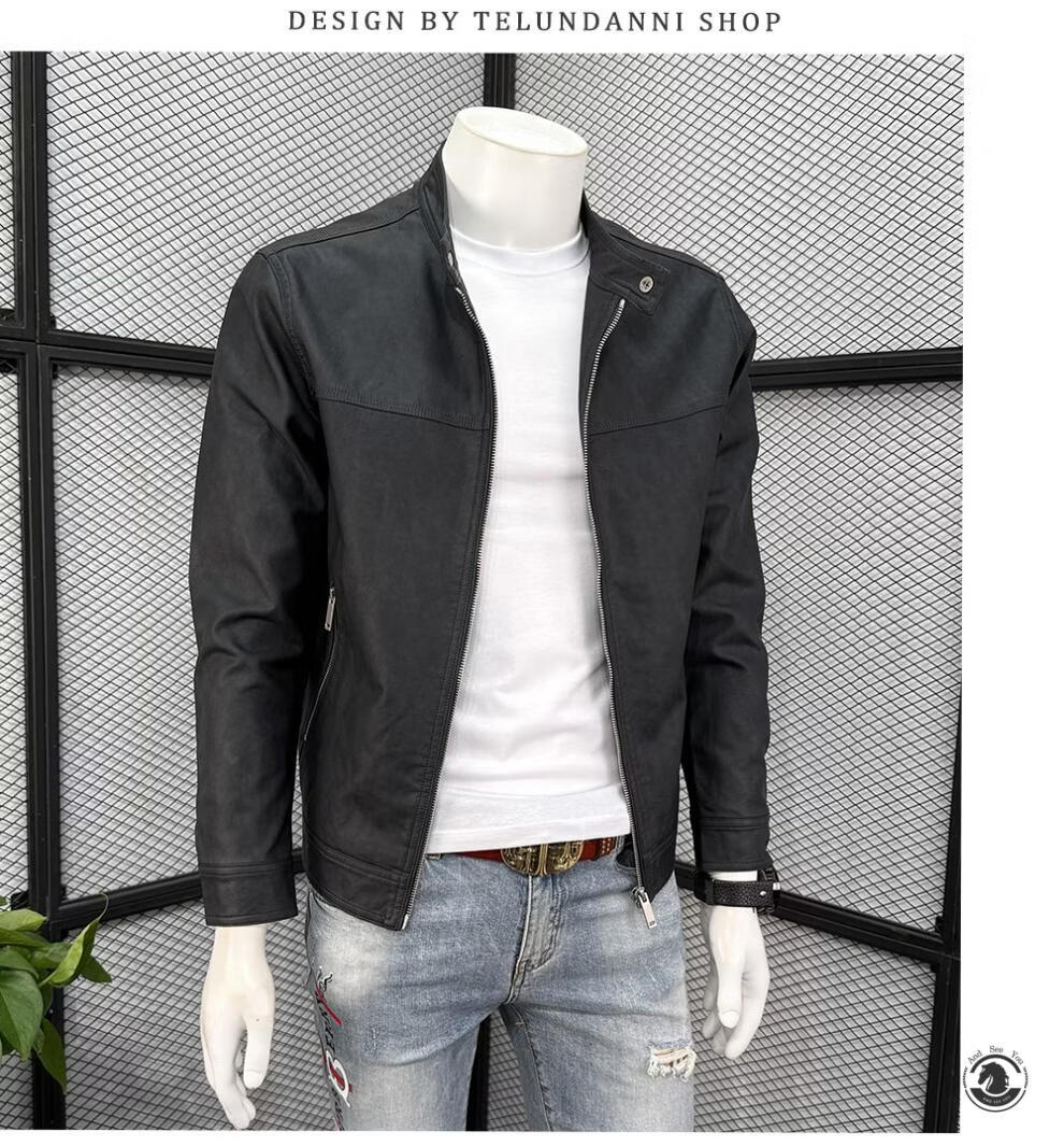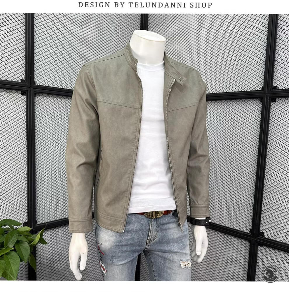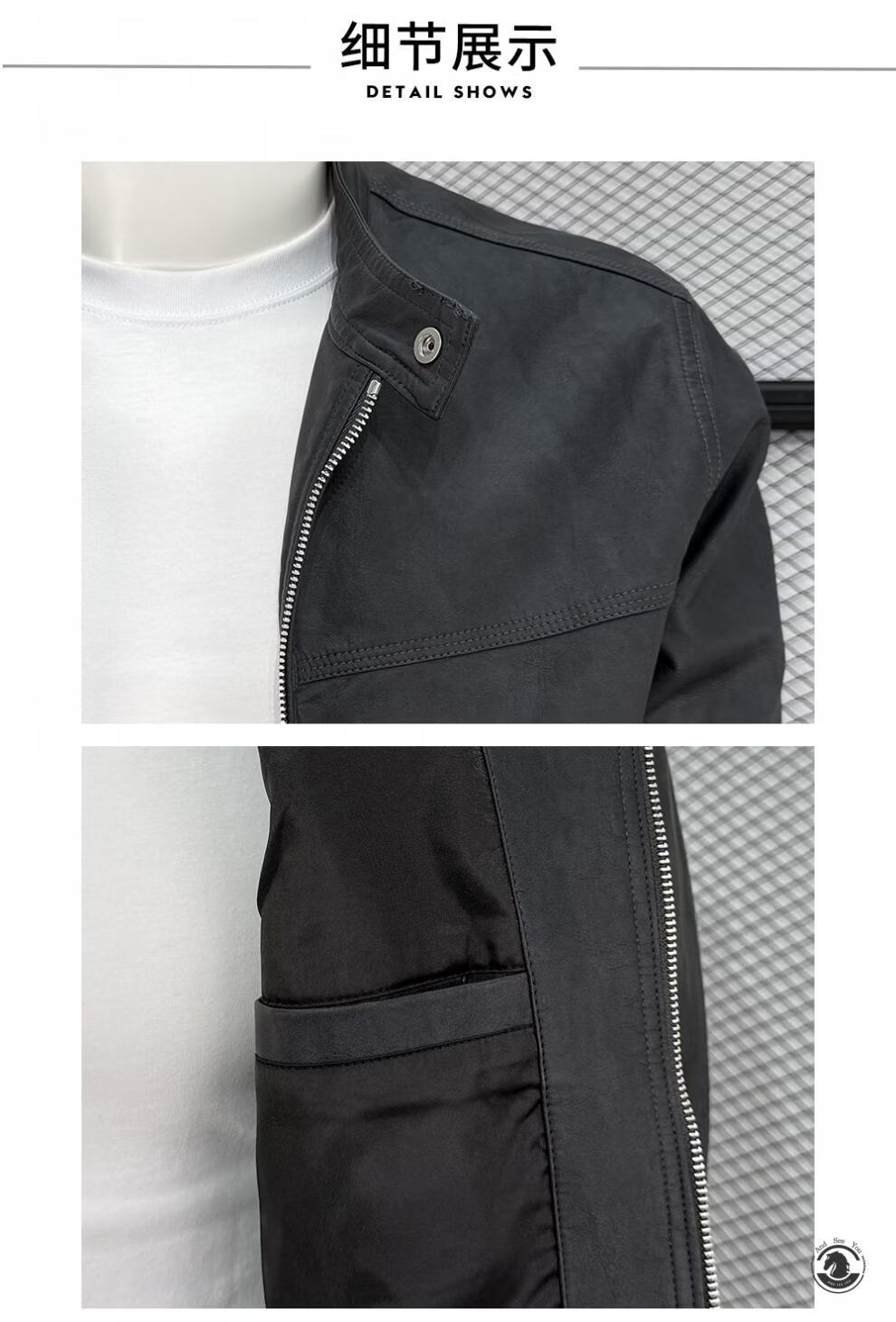 ANDSEEYOU brand men's leather jacket 2026 spring new trendy fashion stand-up collar top versatile casual PU leather jacket gray green L