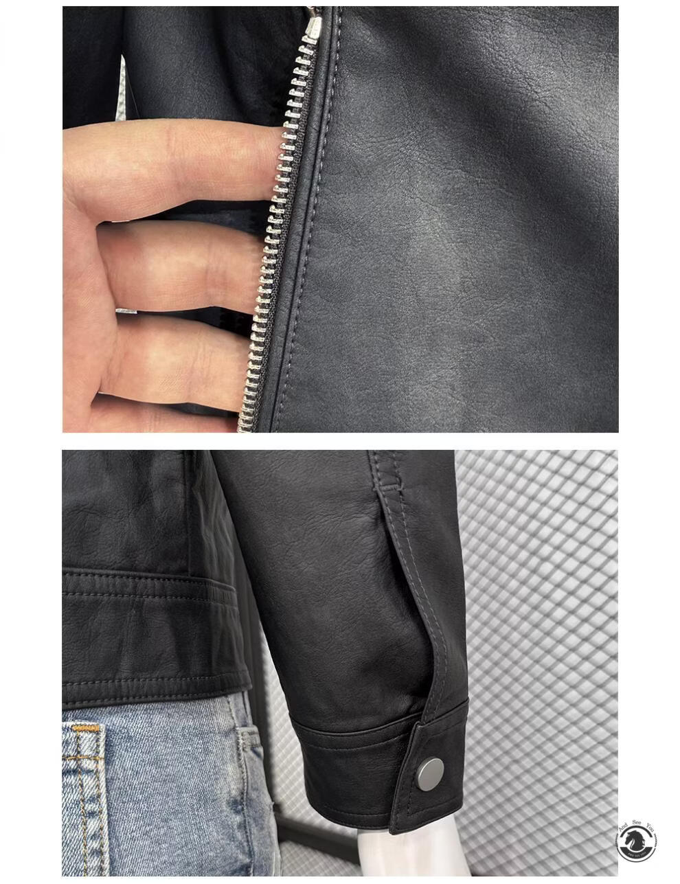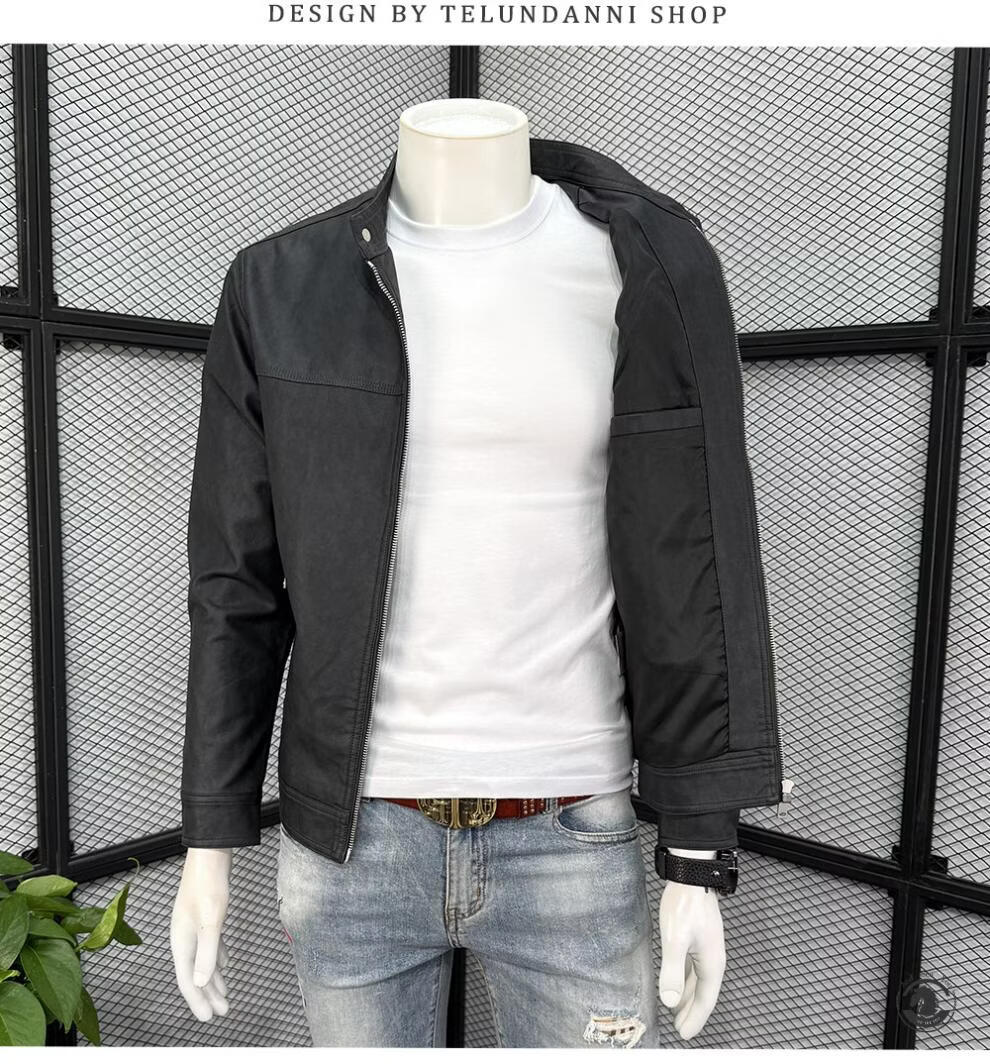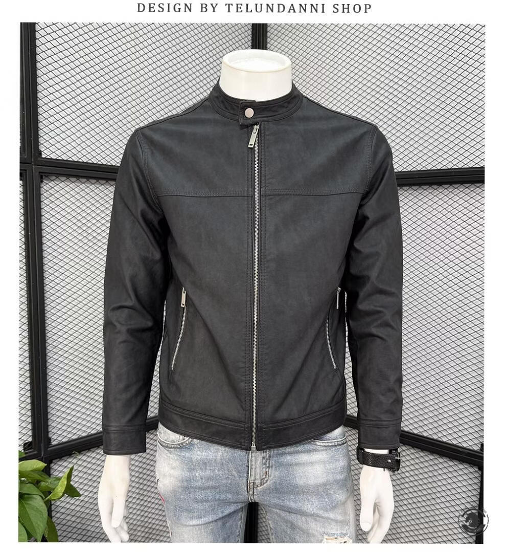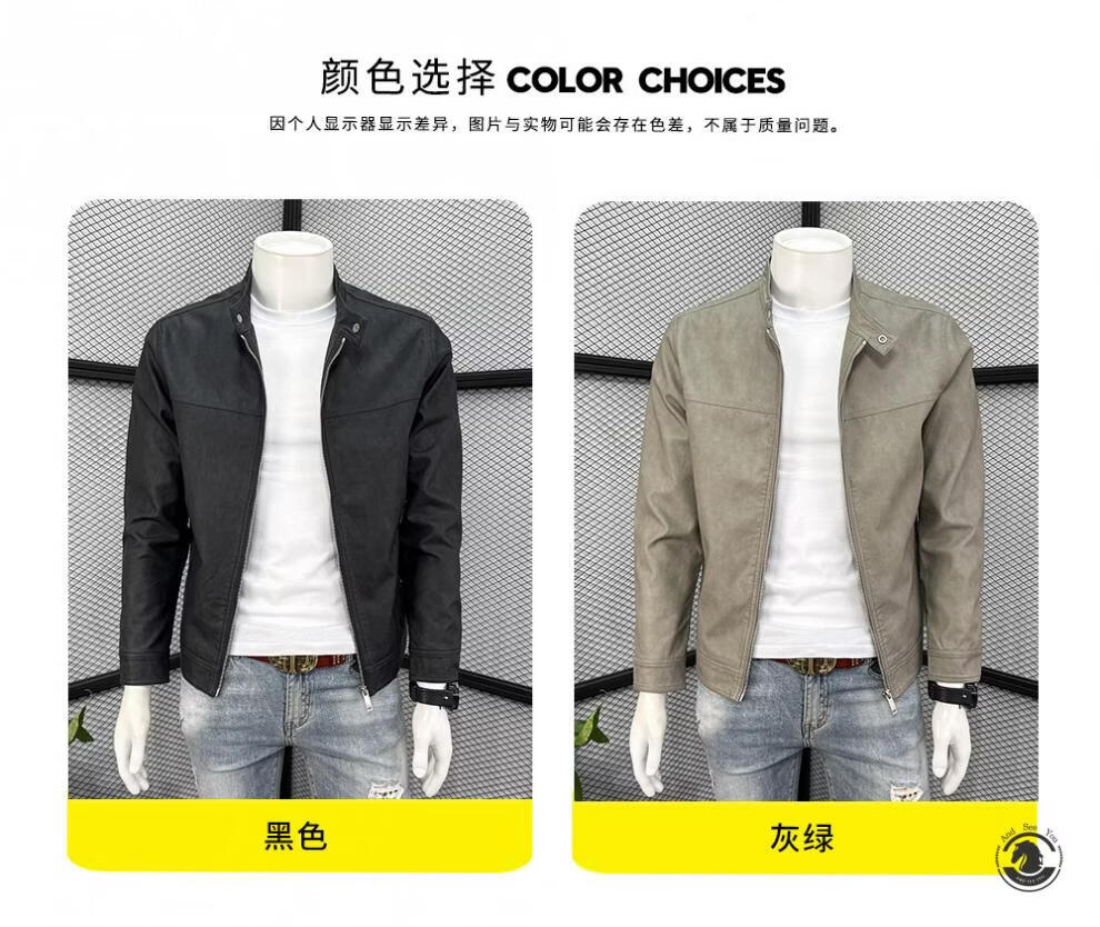 ANDSEEYOU brand men's leather jacket 2026 spring new trendy fashion stand-up collar top versatile casual PU leather jacket gray green L
