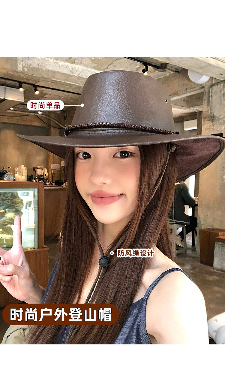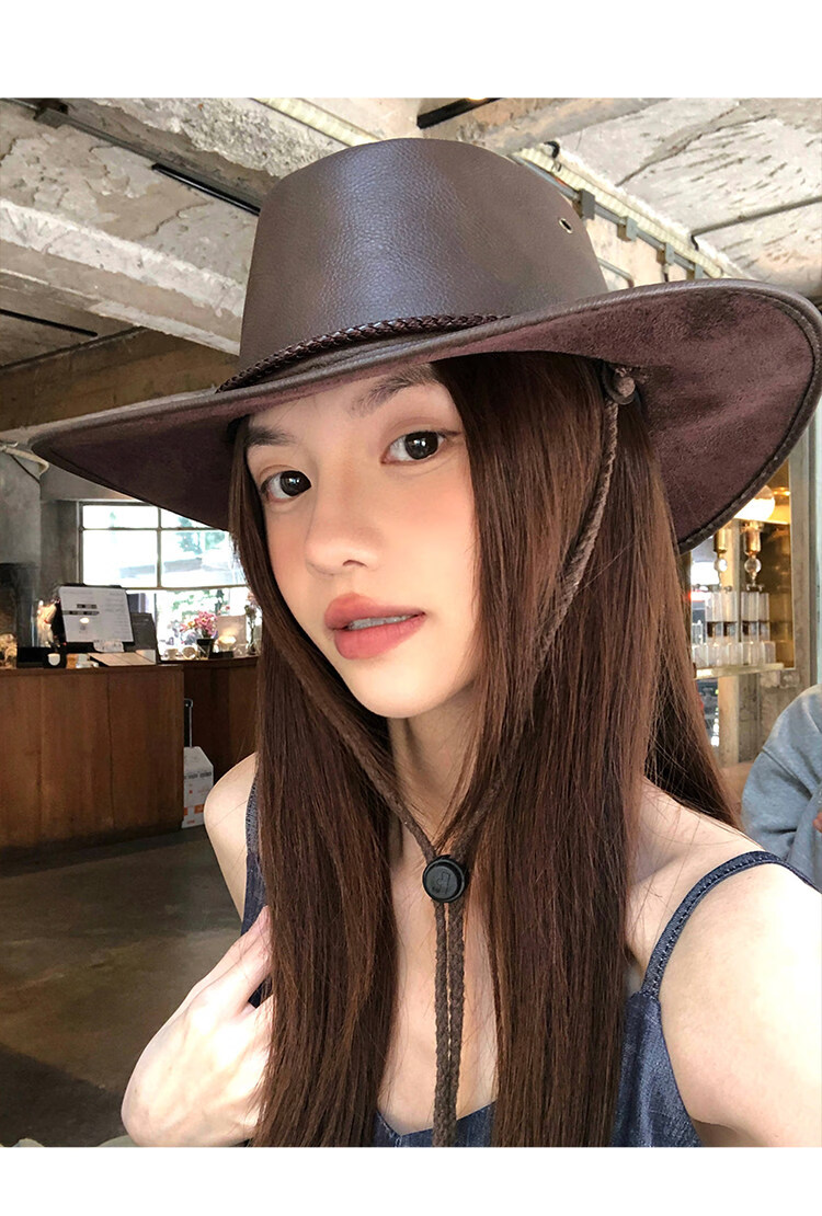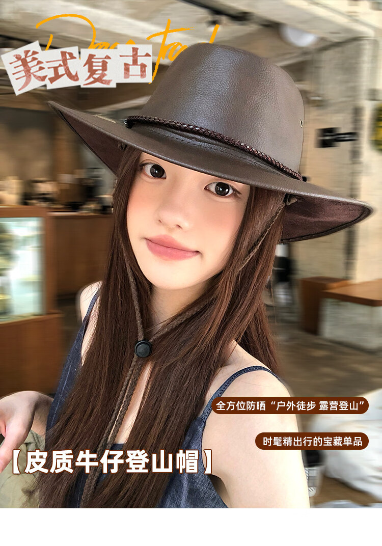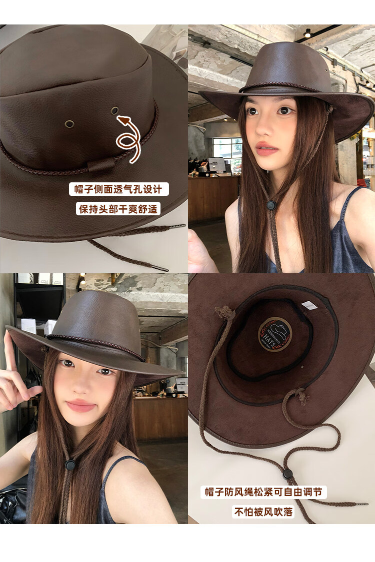 Shijanu American retro western cowboy hat for women spring and summer new outdoor riding and travel sun protection hat hiking hat brown M (56-58cm)