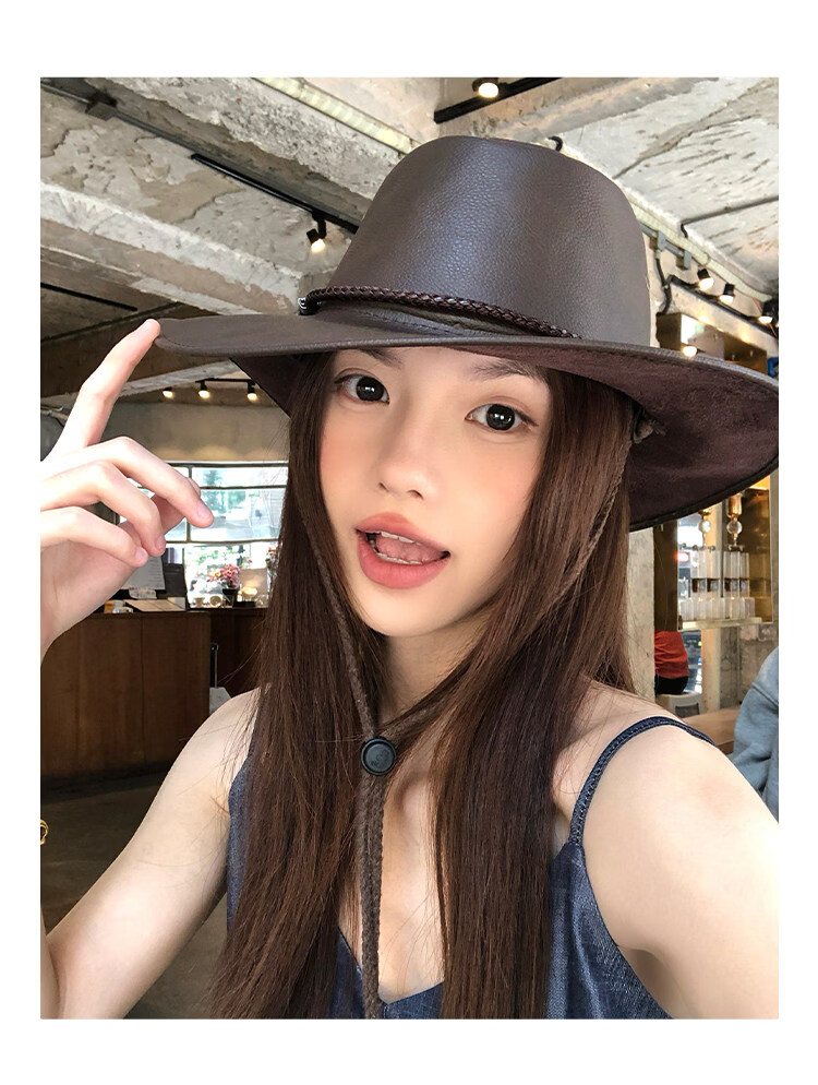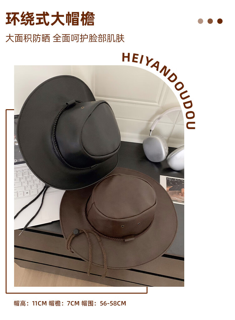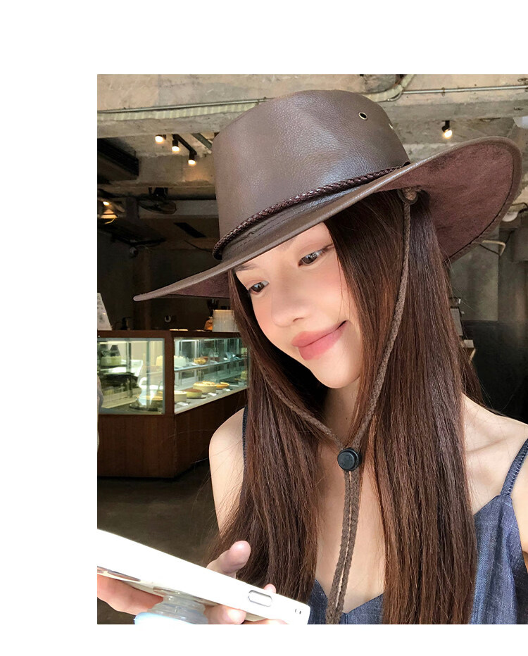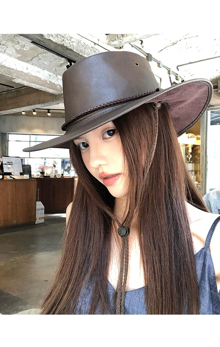 Shijanu American retro western cowboy hat for women spring and summer new outdoor riding and travel sun protection hat hiking hat brown M (56-58cm)