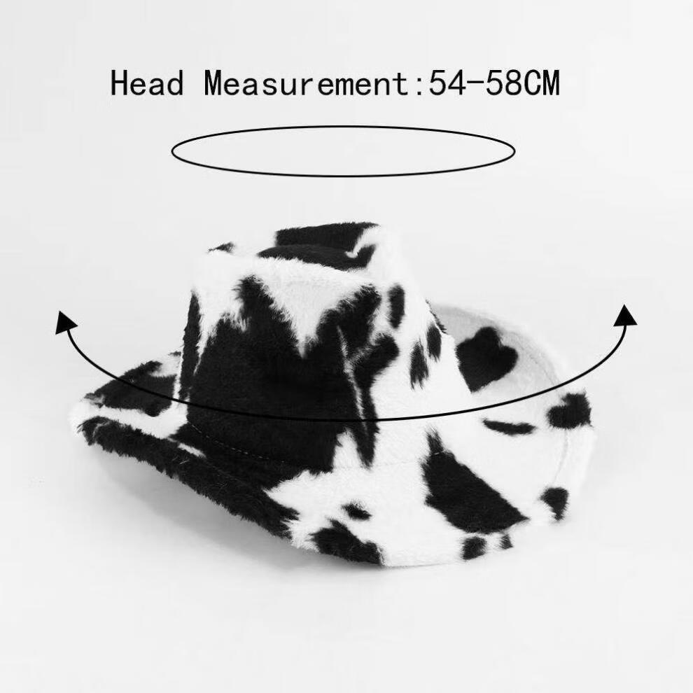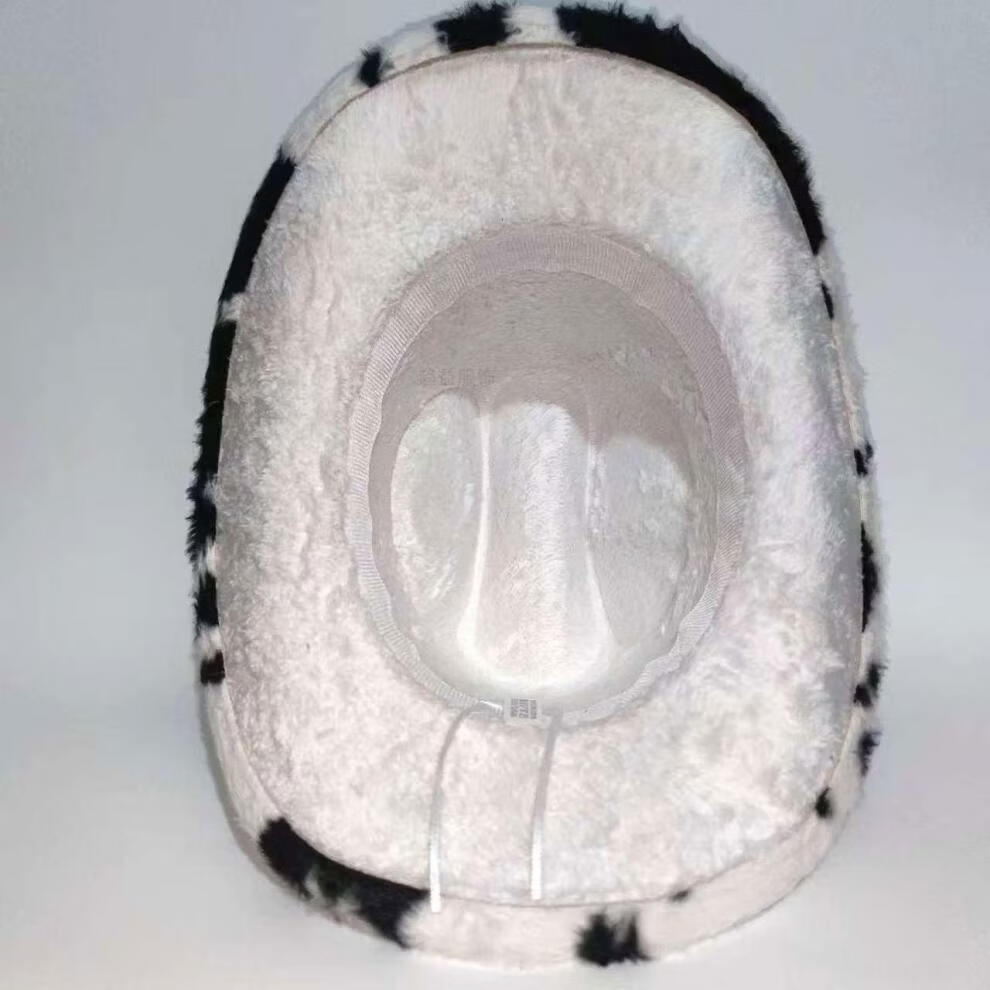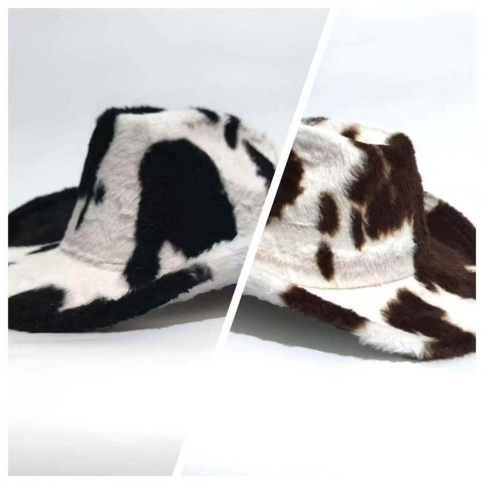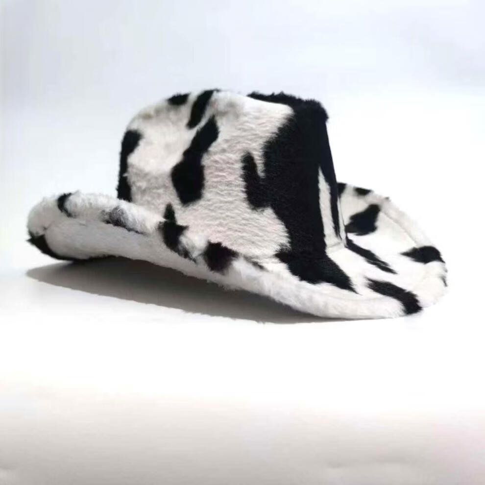 Shijanu Autumn and Winter New Cow Western Cowboy Hat Fashion Plush Thickened Internet Celebrity Hat Warm Hat Trendy Plush Hat Black and White One Size