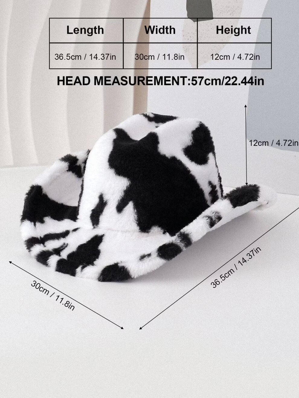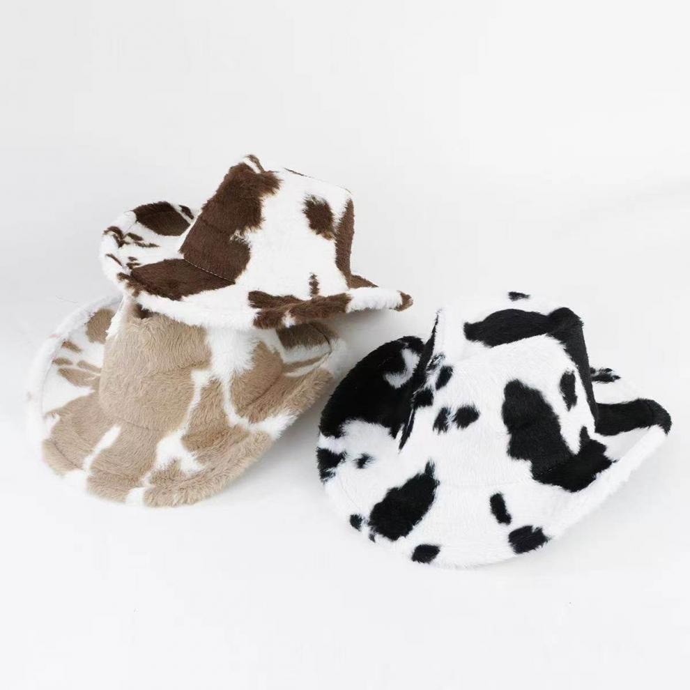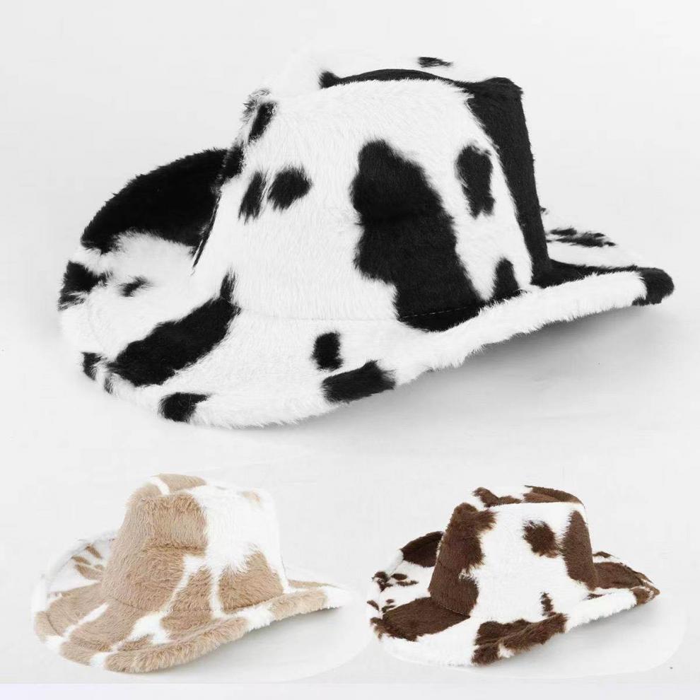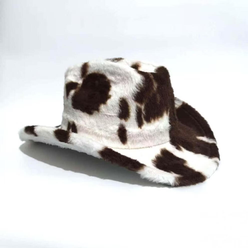 Shijanu Autumn and Winter New Cow Western Cowboy Hat Fashion Plush Thickened Internet Celebrity Hat Warm Hat Trendy Plush Hat Black and White One Size