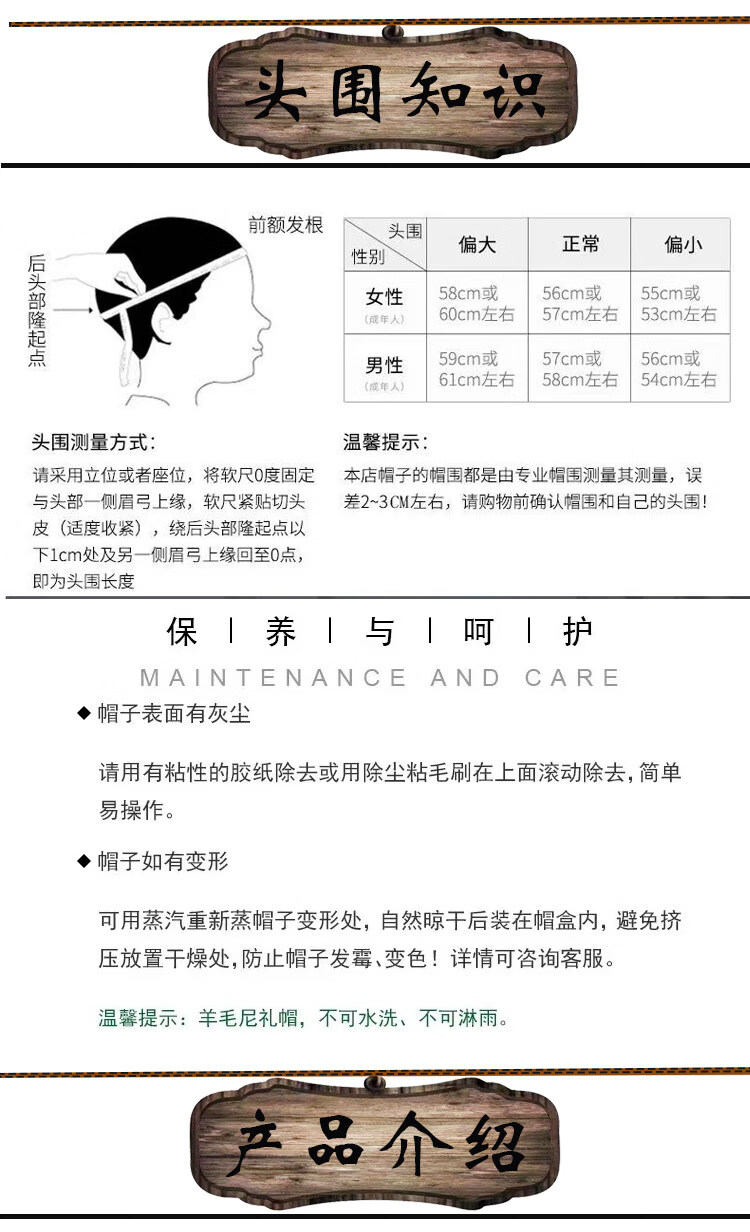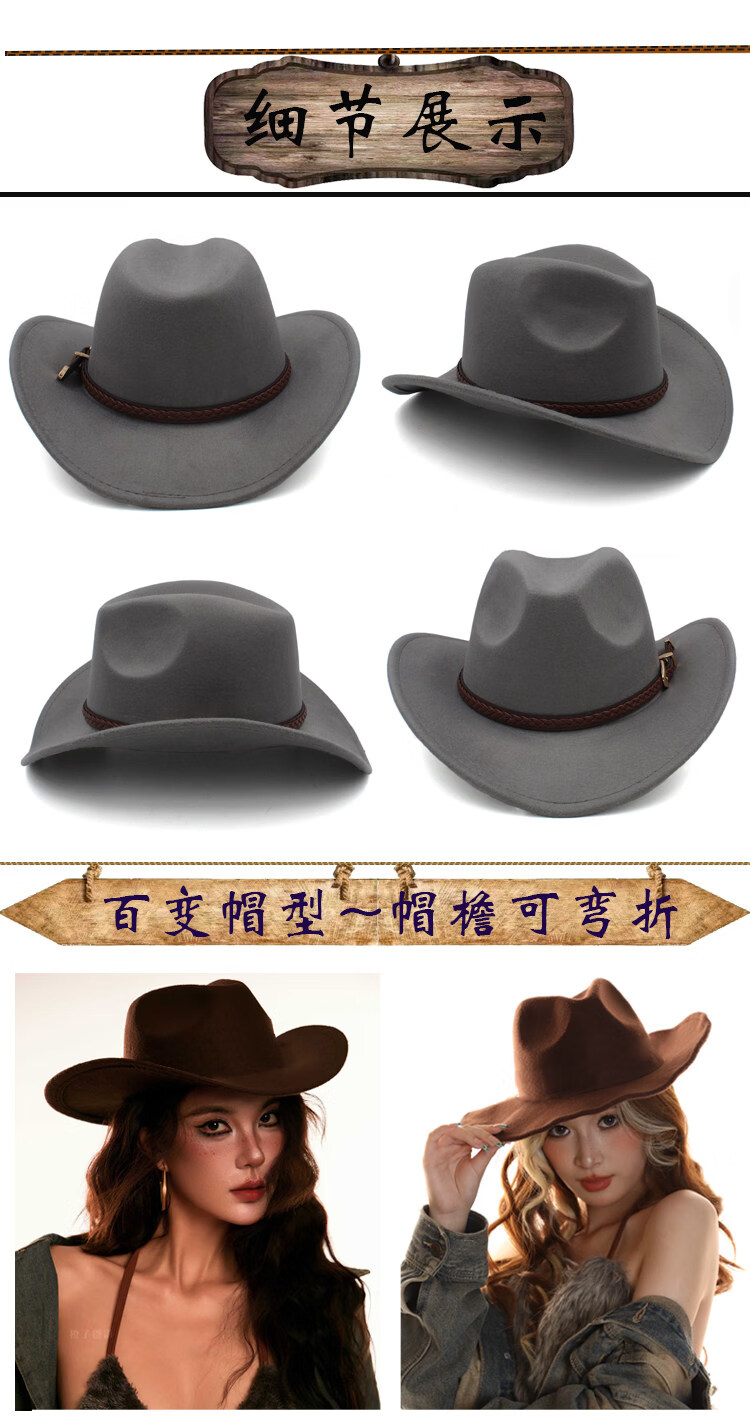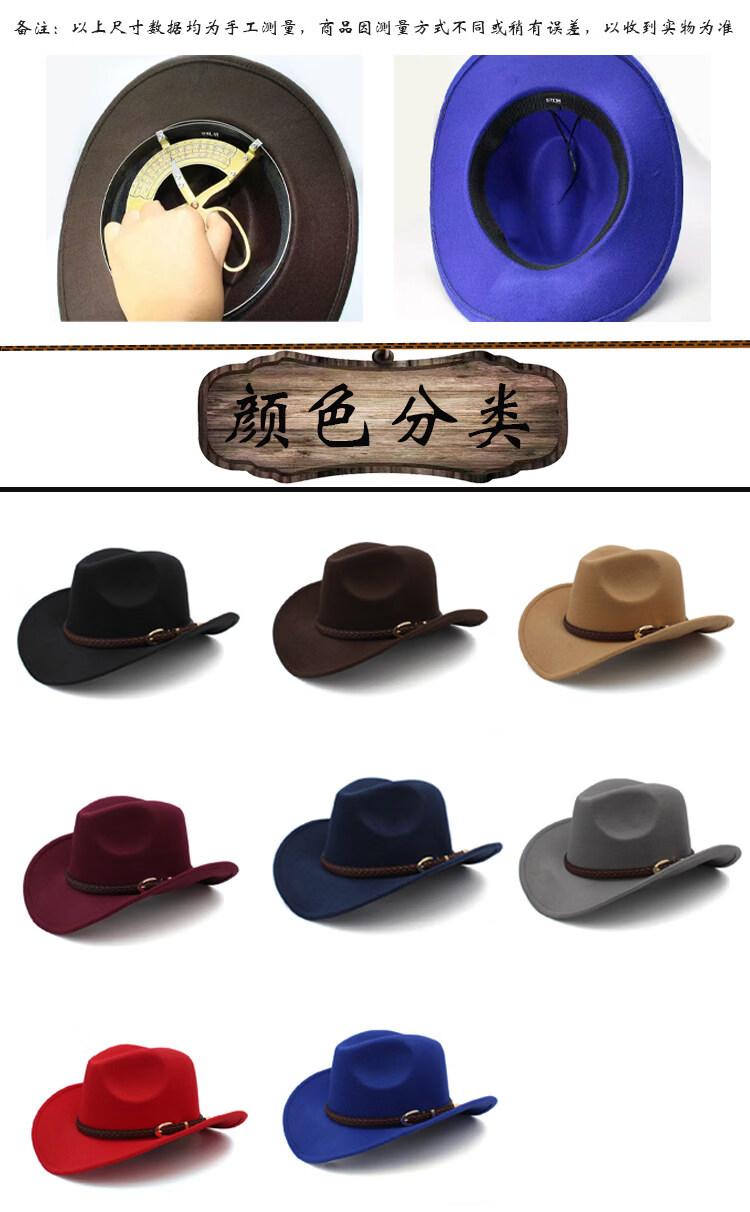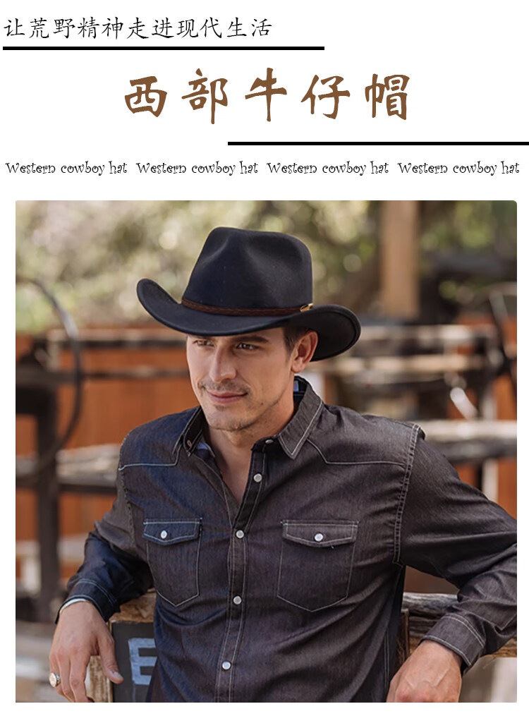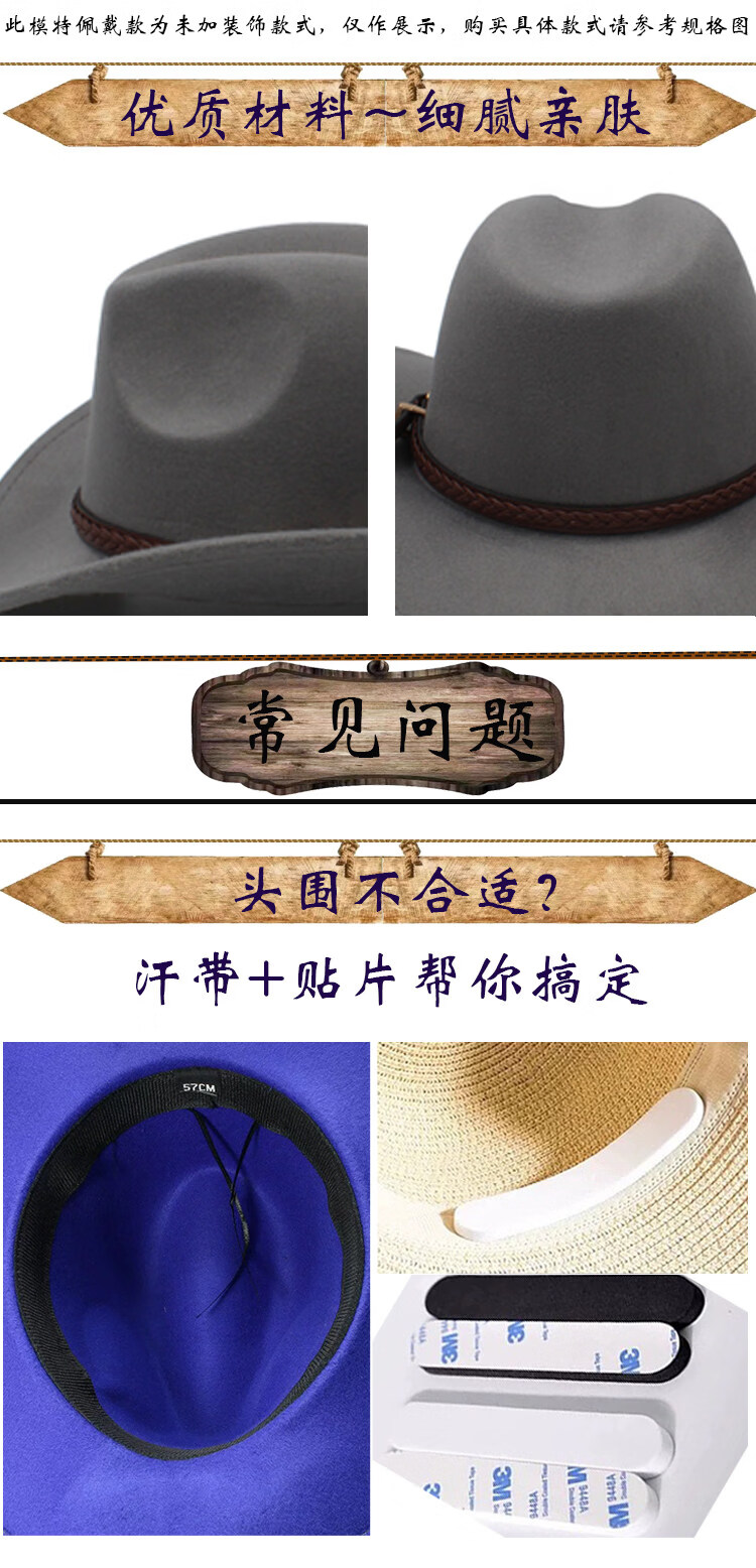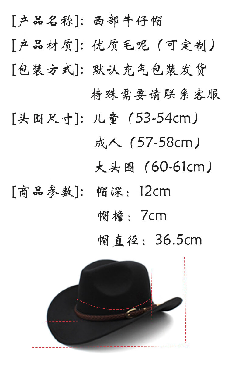 Shijanu large head circumference adjustable spring, autumn and winter woolen riding western cowboy hat for men and women, parent-child style, black (without windproof rope) large head circumference (60-61CM)