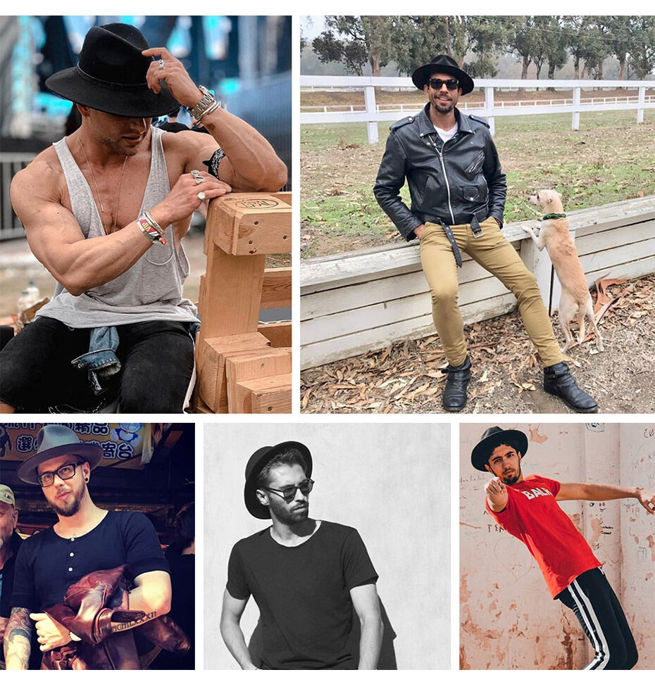 Shijanu American Western Cowboy Hat Felt Men's and Women's Riding Hat Roll-Brim Jazz Hat Cowboy Hat Brown M (56-58cm)