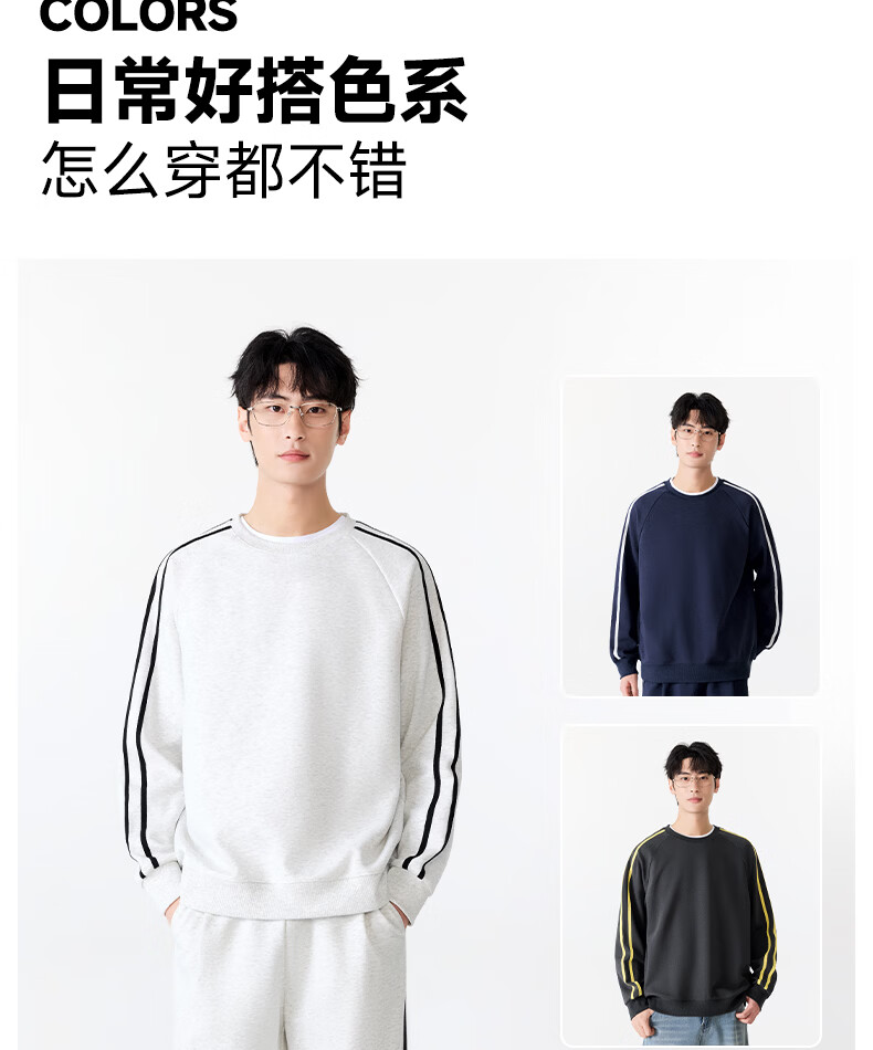 MINISO Contrast Color Raglan Round Neck Sweater Men's Heavyweight Tops Sports Fashionable Men's Street Style Spring and Autumn Clothes for Men White Flower Gray (mt Triangular Ink Gray Chest Label) M /170 (Full refund for quality issues within 30 days)