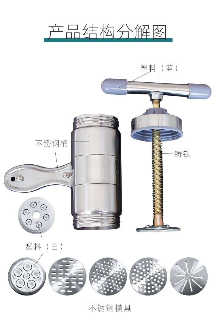 Pupan noodle machine household noodle tools 栲栳栳堳wowo 饸饸饹面 hollow flour mold hand-rolled dough machine noodle machine basic version 4 molds