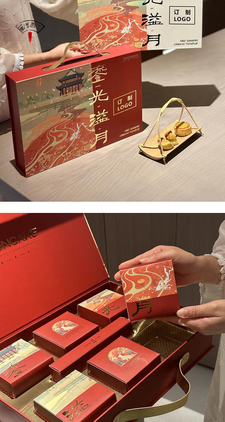 2025 new moon cake gift box empty box ice skin flow heart empty hand box 6 capsules 8 full moon cake dots orange 8 capsules