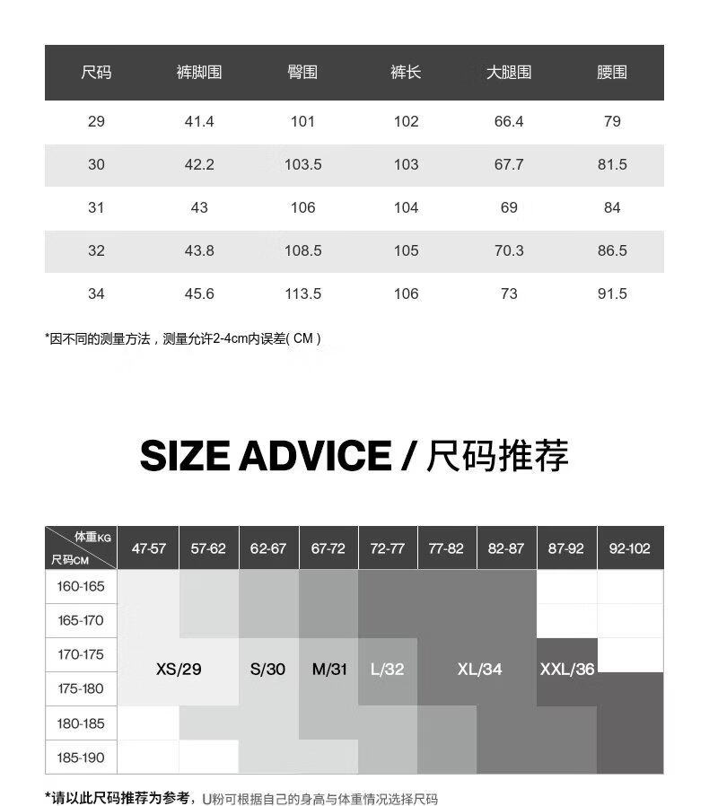 China (cm) 160-165/84-86 165-170 / 88-90 167-172 / 92-96 168-173 / 98-102 170-176 / 106-110
