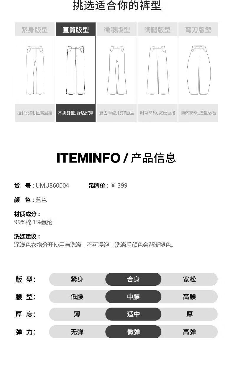 UR Urban urban series 2026 spring new men's washed denim trousers UMU860004 blue 29