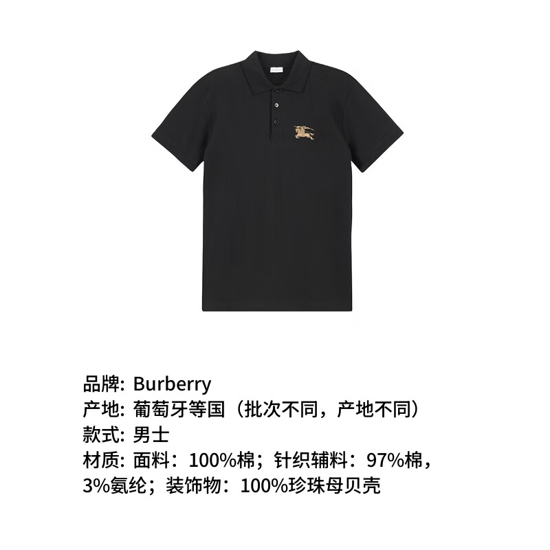 BURBERRY new product men's cotton short-sleeved POLO shirt men's 8119010 swamp green metallic equestrian knight logo embroidery M