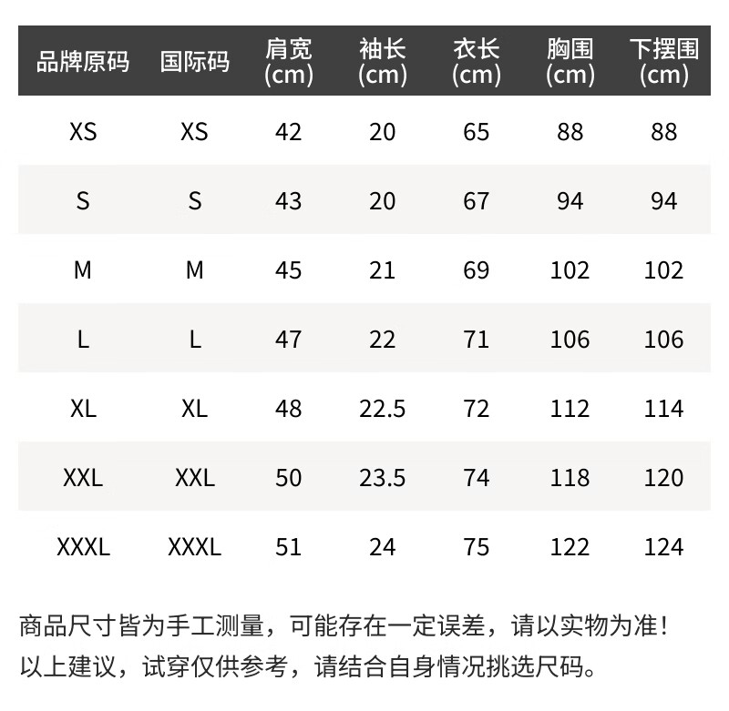 International XS S M L XL XXL