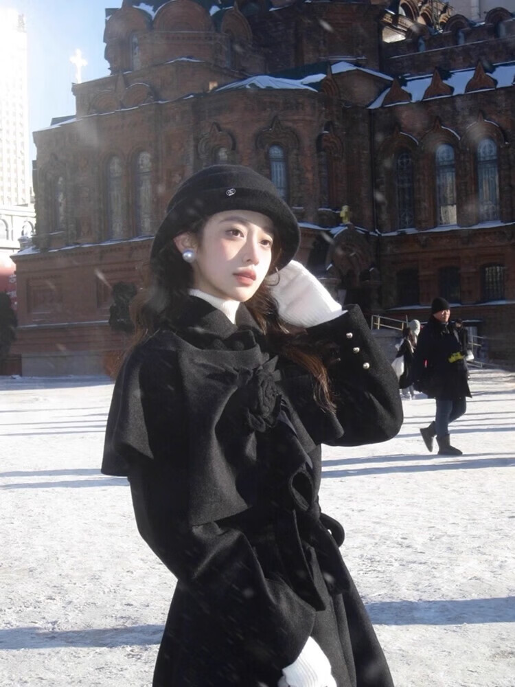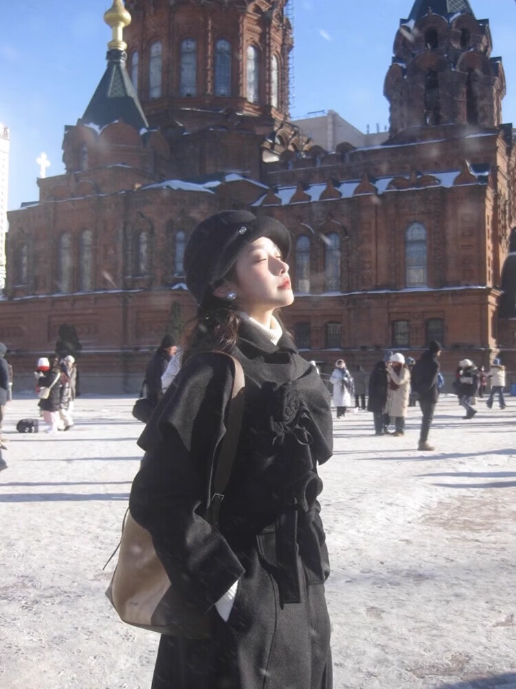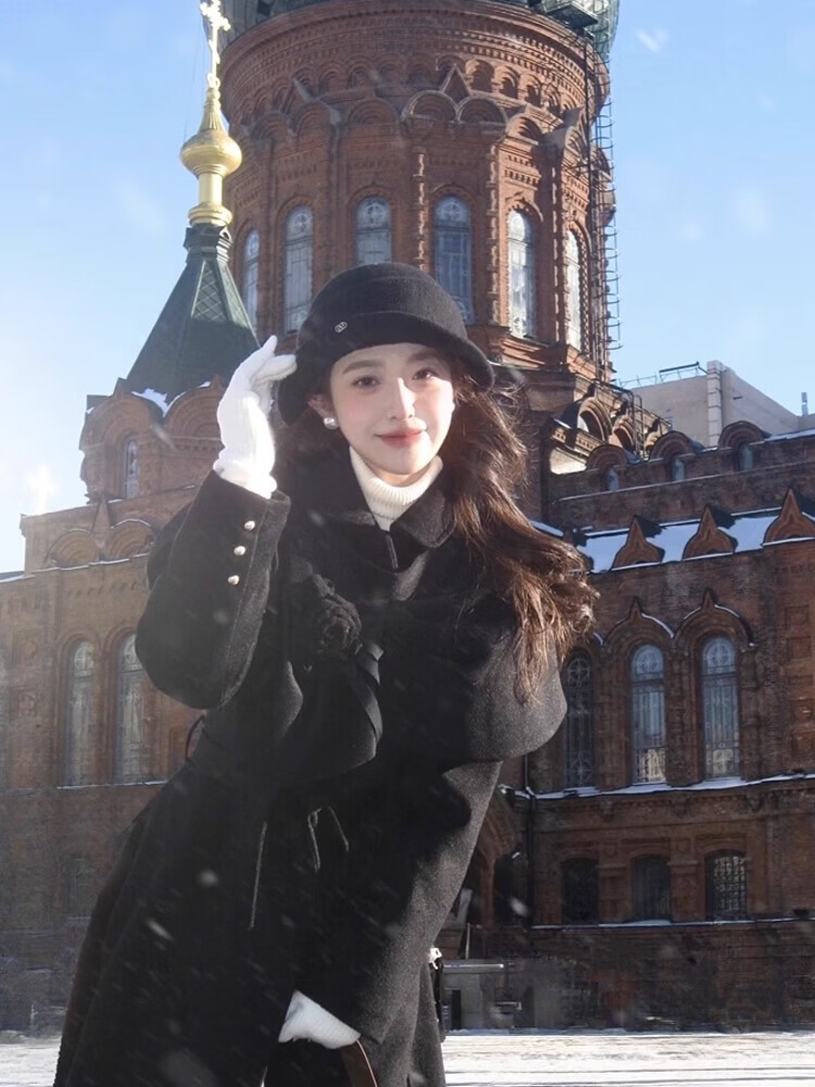 Snow King Black Hepburn Style Wool Thousand Gold Hat Women's Autumn and Winter British Hat High-Quality Warm and Versatile Equestrian Hat Elegant Black High Quality Large Version 56~62