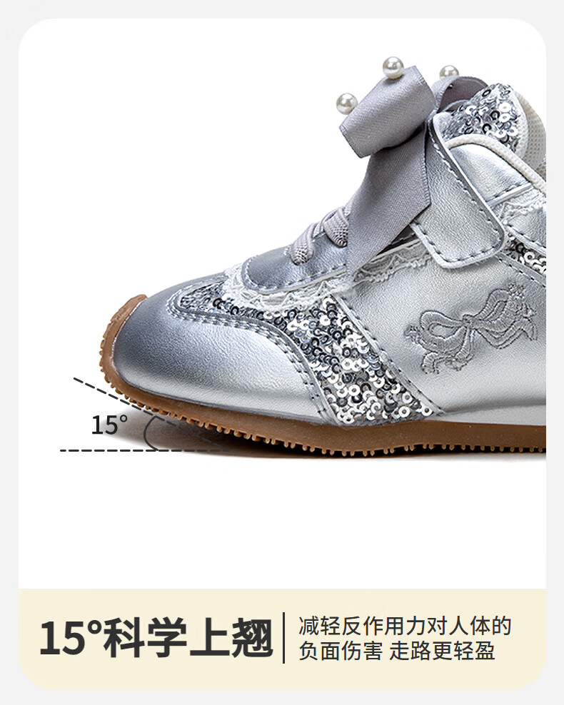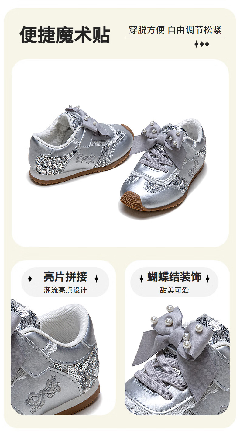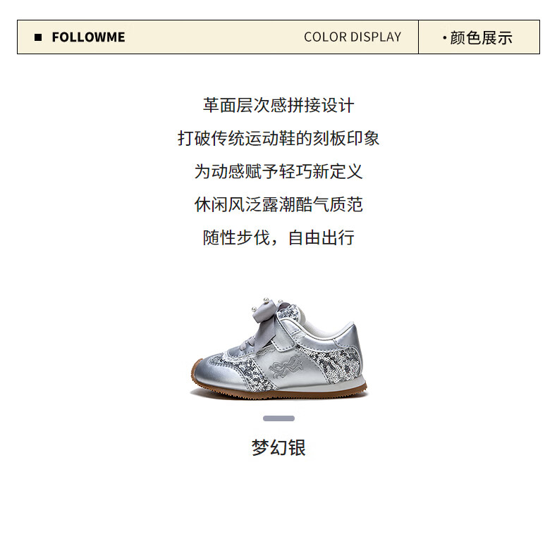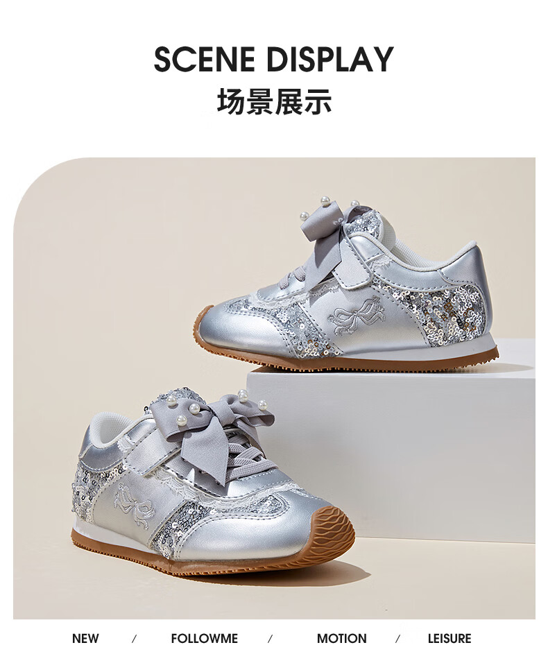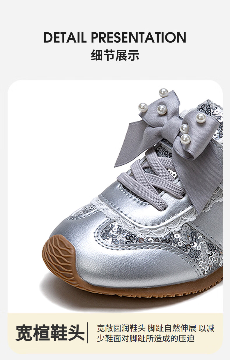 Fuluo Mi Fuluo Mi Girls' Shoes Spring New Girls' Campus Versatile Casual Shoes Sweet and Comfortable Sneakers Dreamy Silver Single Layer 33