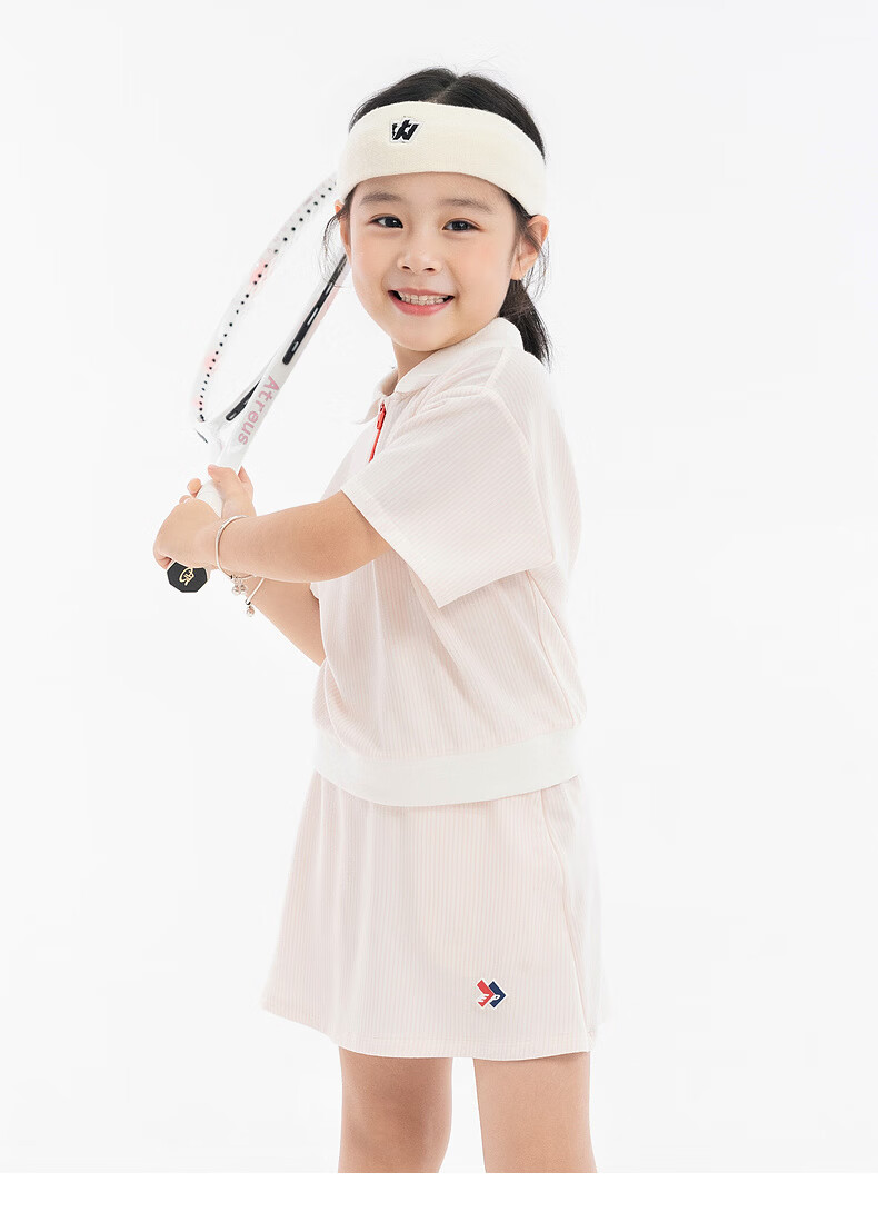 EP YAYING (EP YAYING) Shopping mall same style EP Yaying children's clothing 2026 summer girls new zipper lapel fashion casual short-sleeved T-shirt short pink 120