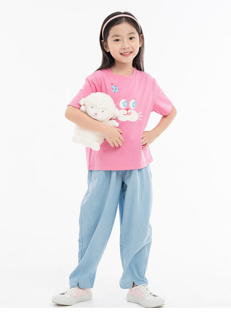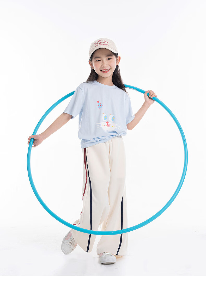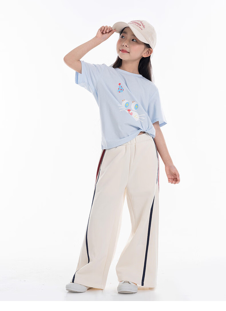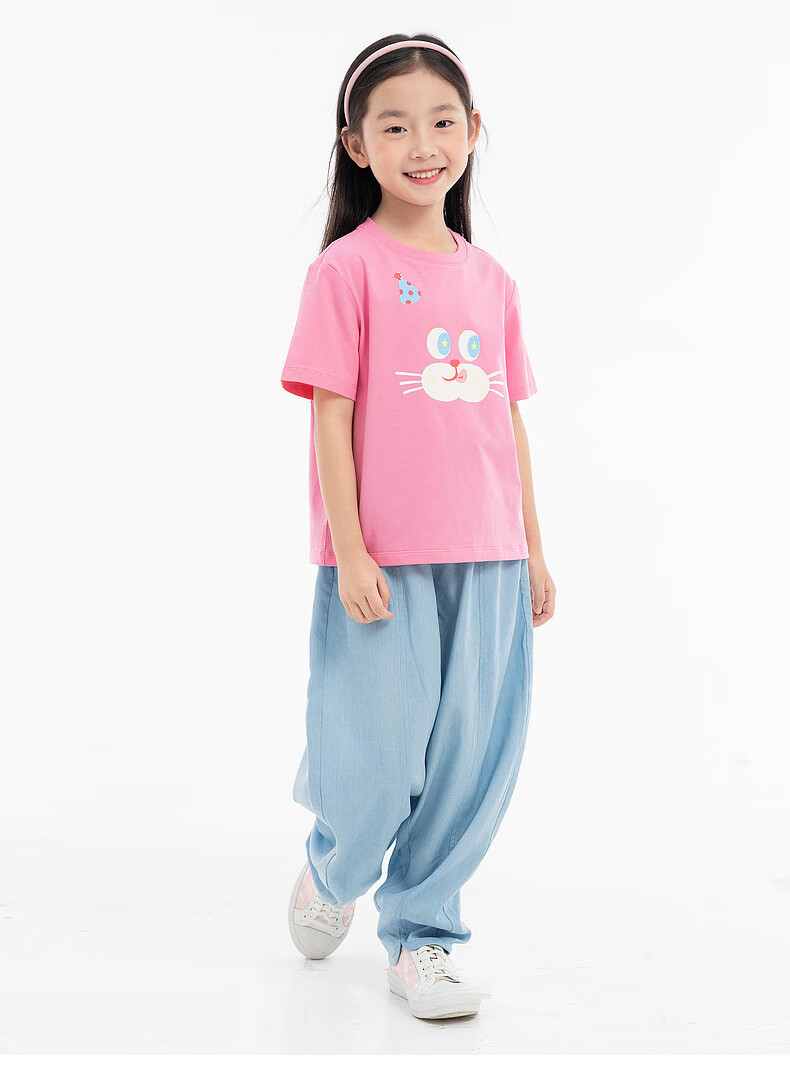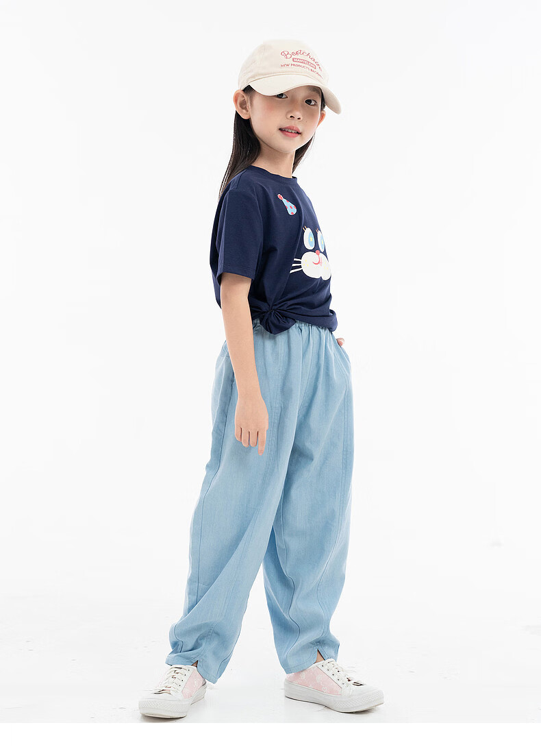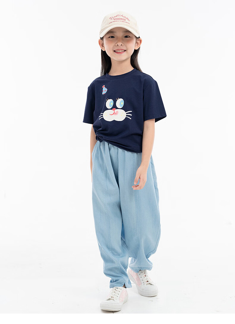 EP YAYING (EP YAYING) Shopping mall same style EP Yaying children's clothing 2026 summer girls new cute and fun expression printed casual T-shirt blue 160