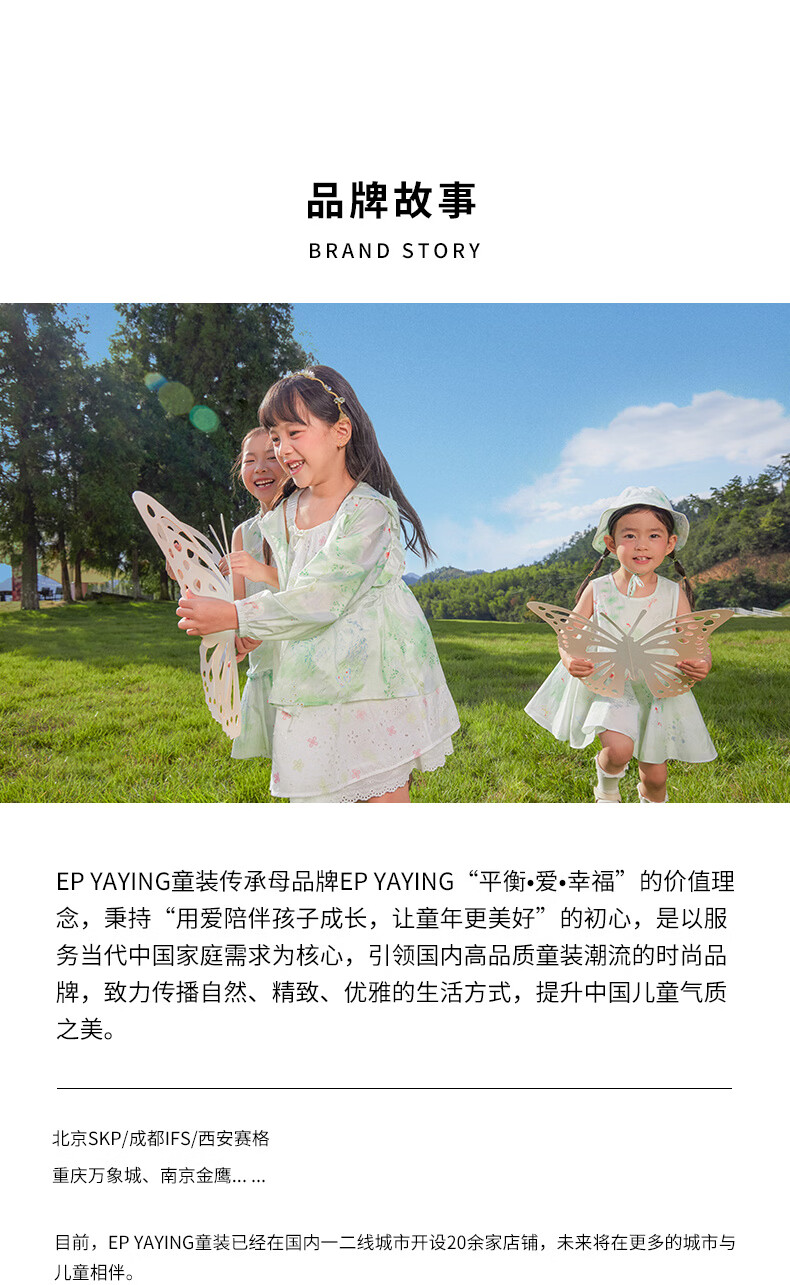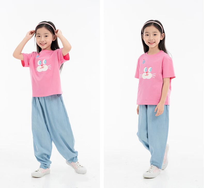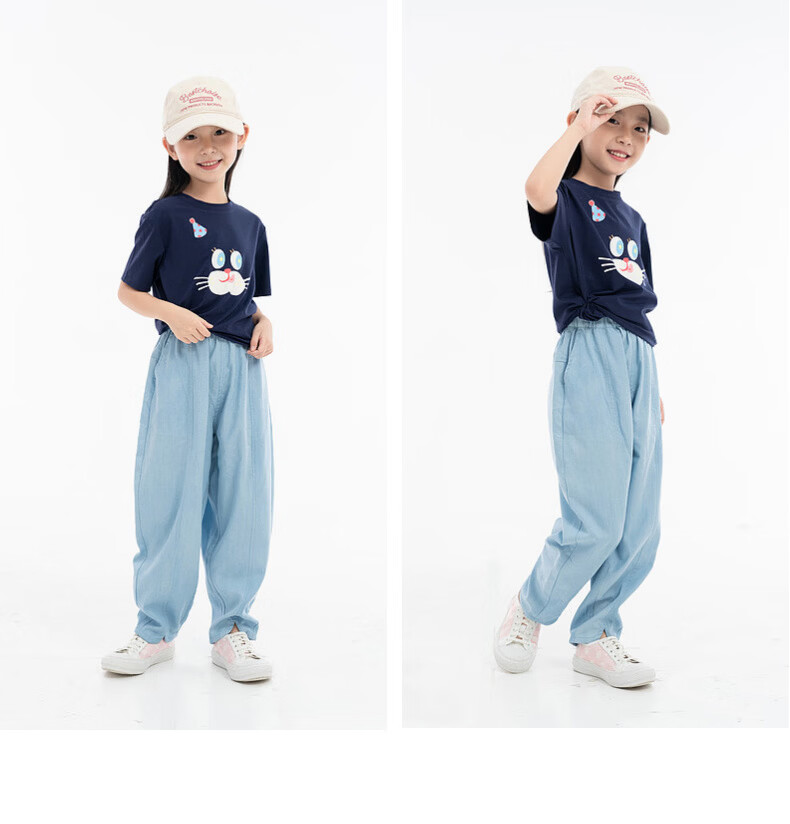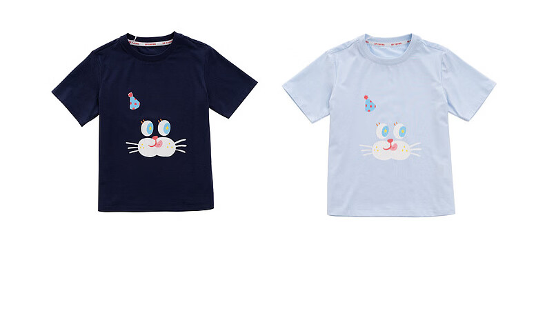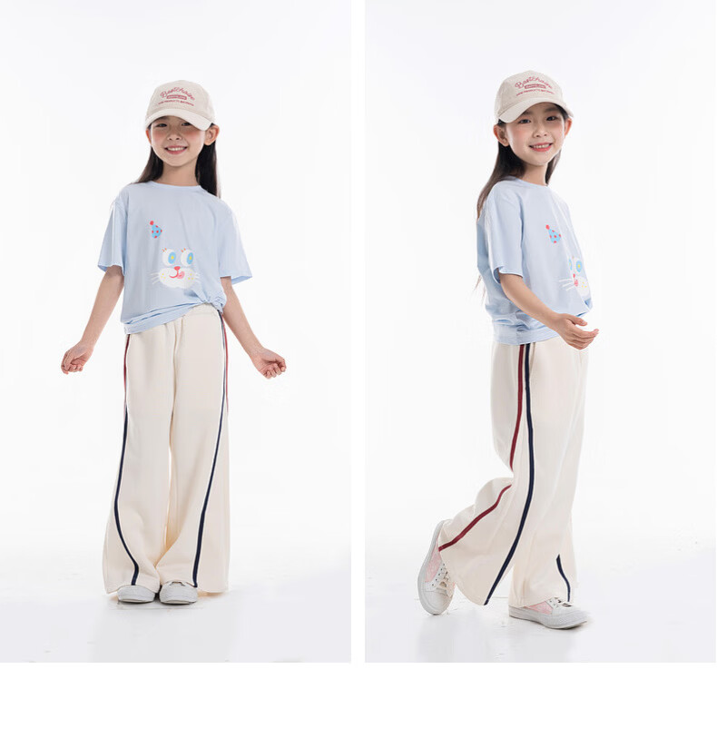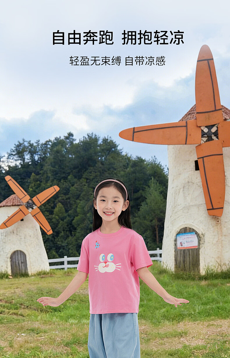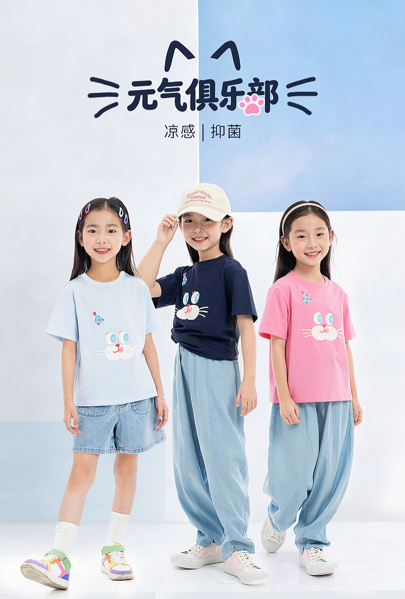 EP YAYING (EP YAYING) Shopping mall same style EP Yaying children's clothing 2026 summer girls new cute and fun expression printed casual T-shirt blue 160