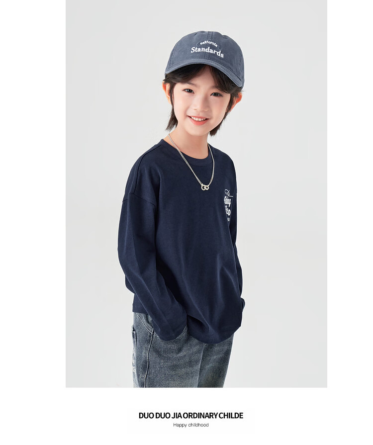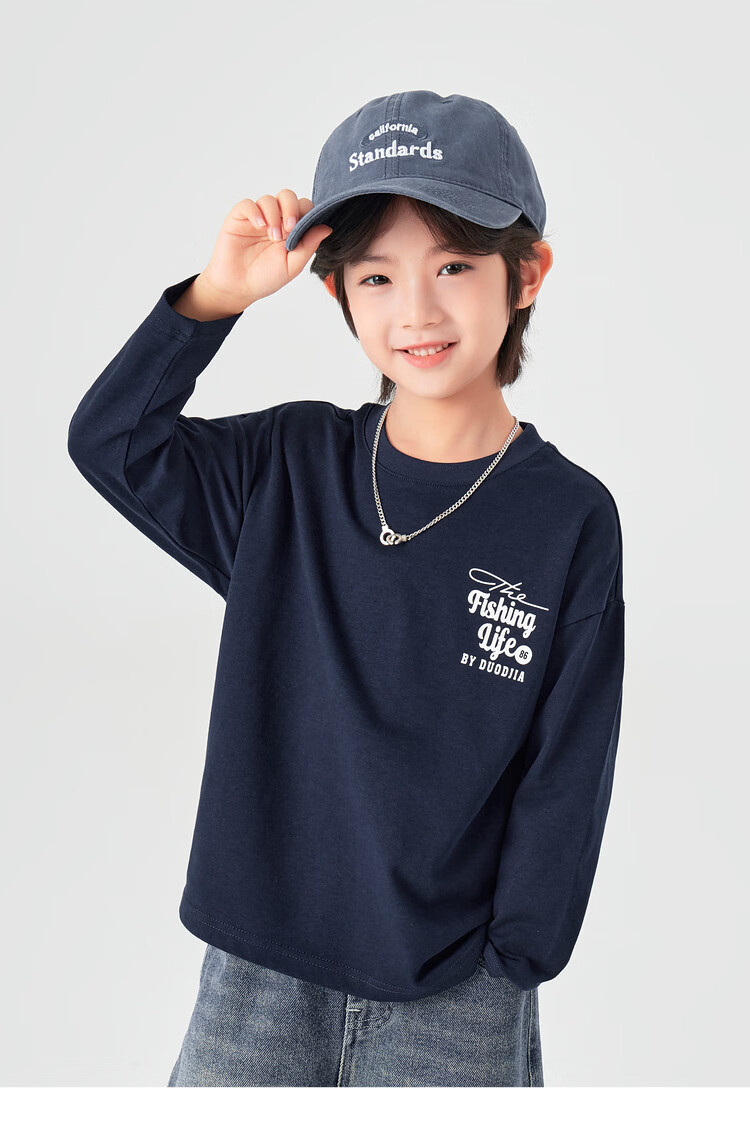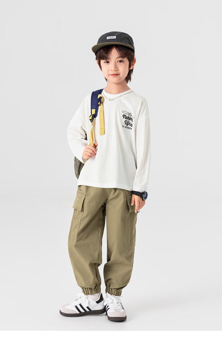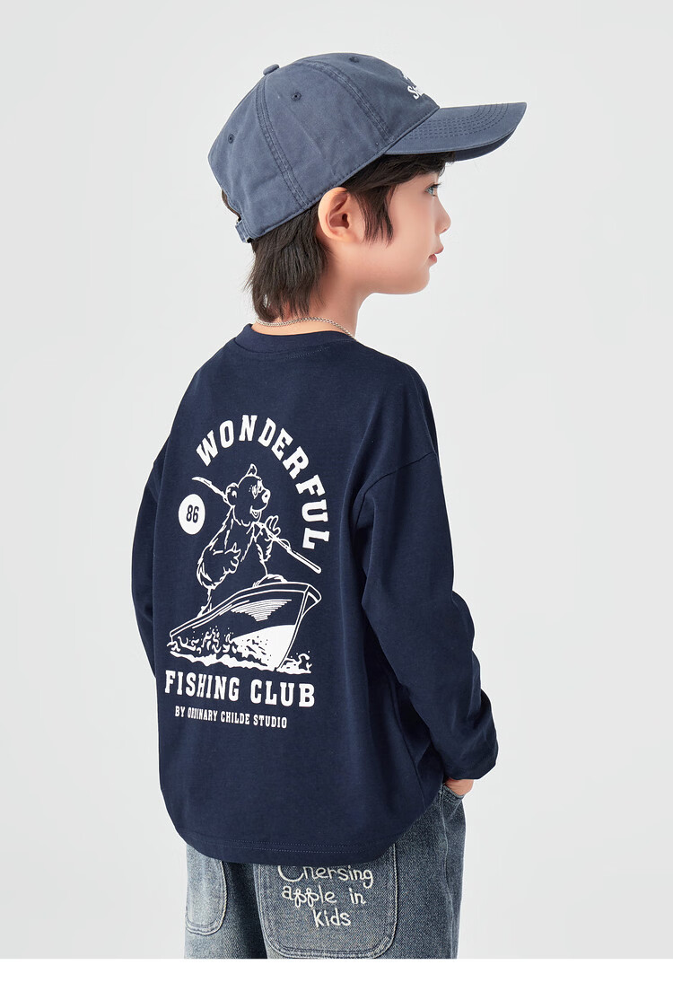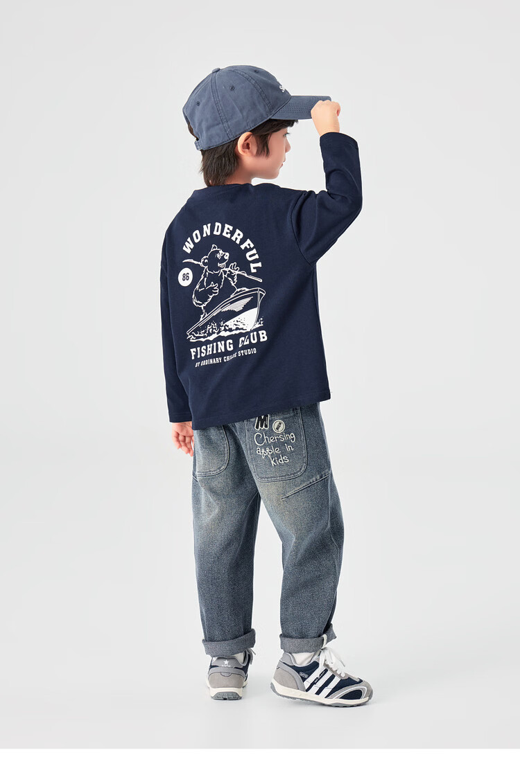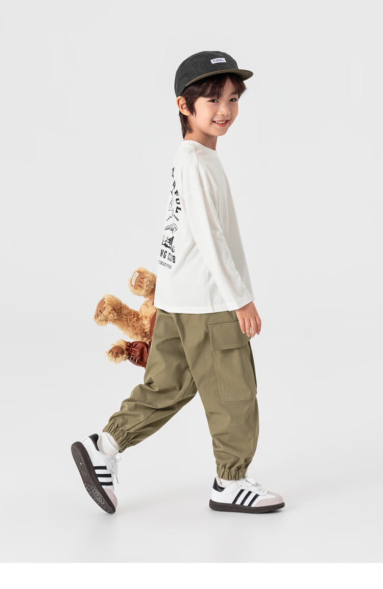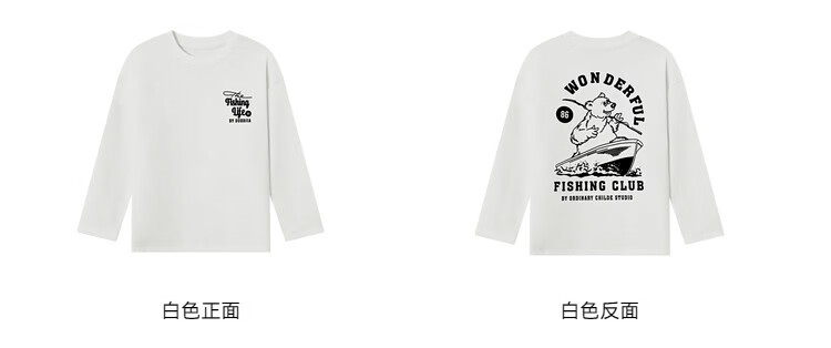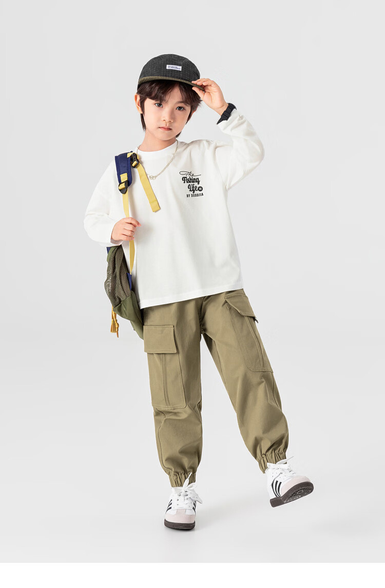 Duojia Class A Standard Children's T-shirt Spring and Autumn Adventure Bear Fun Long Sleeve Boys Casual Cotton Breathable Top Fashion White 110
