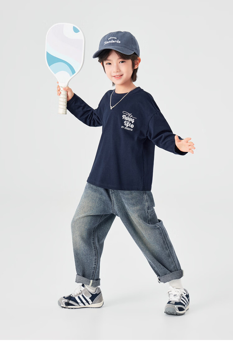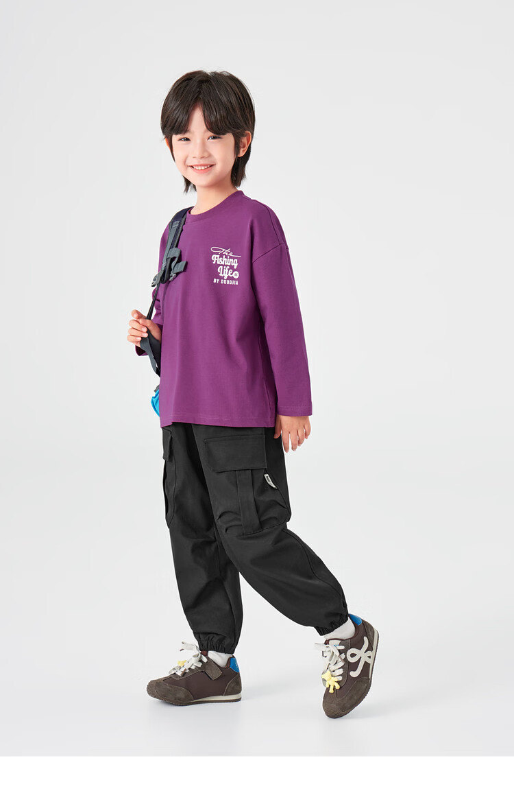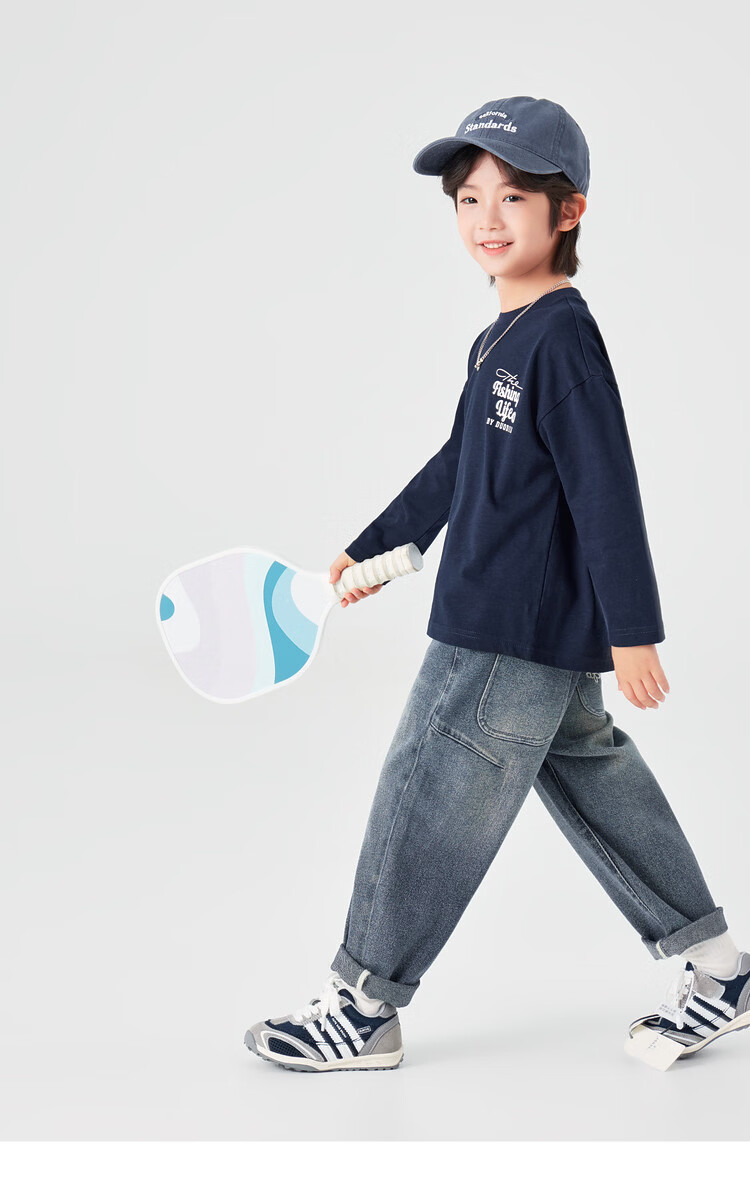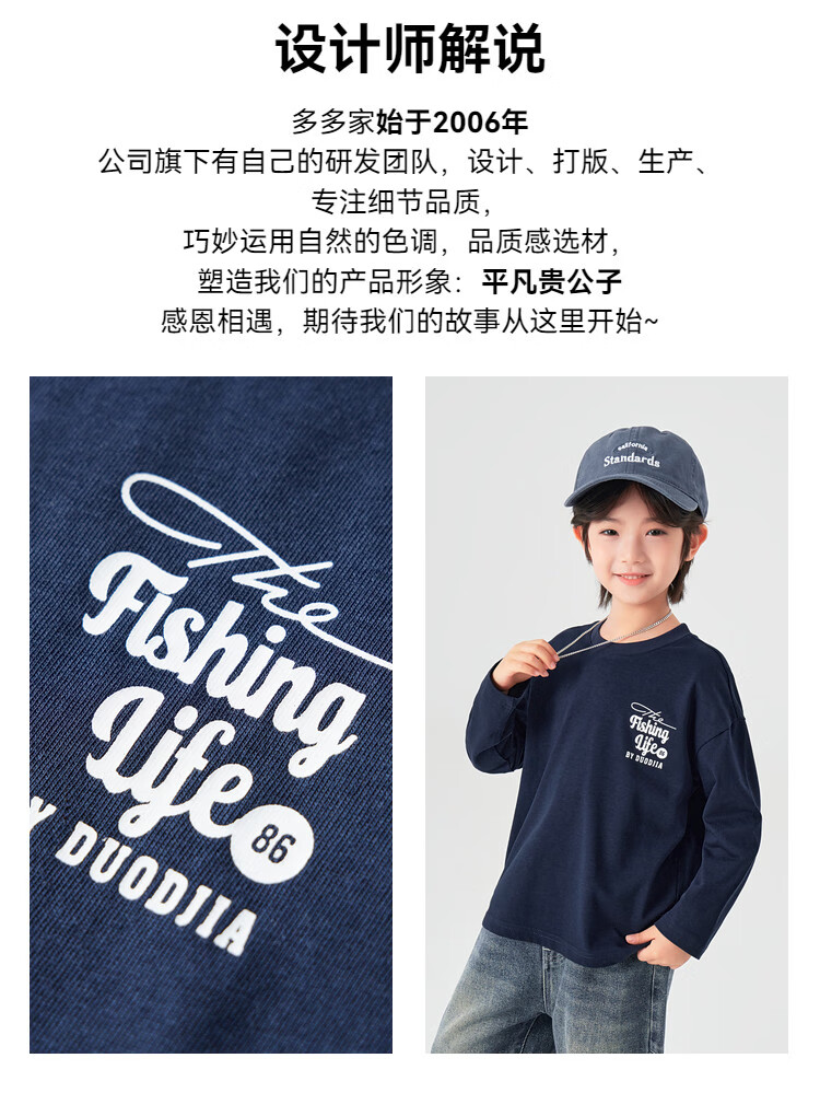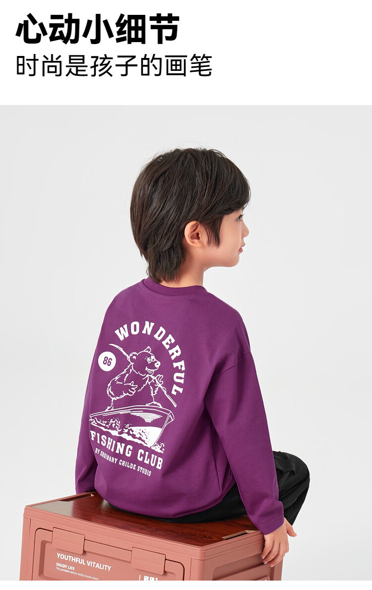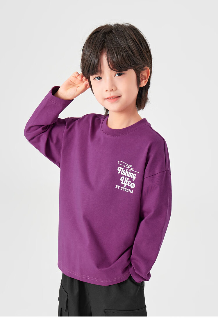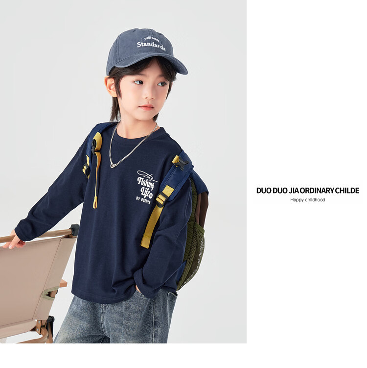 Duojia Class A Standard Children's T-shirt Spring and Autumn Adventure Bear Fun Long Sleeve Boys Casual Cotton Breathable Top Fashion White 110