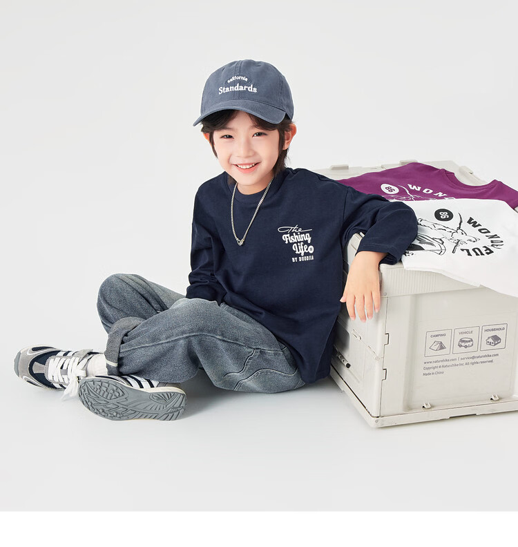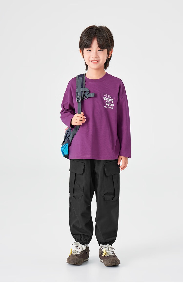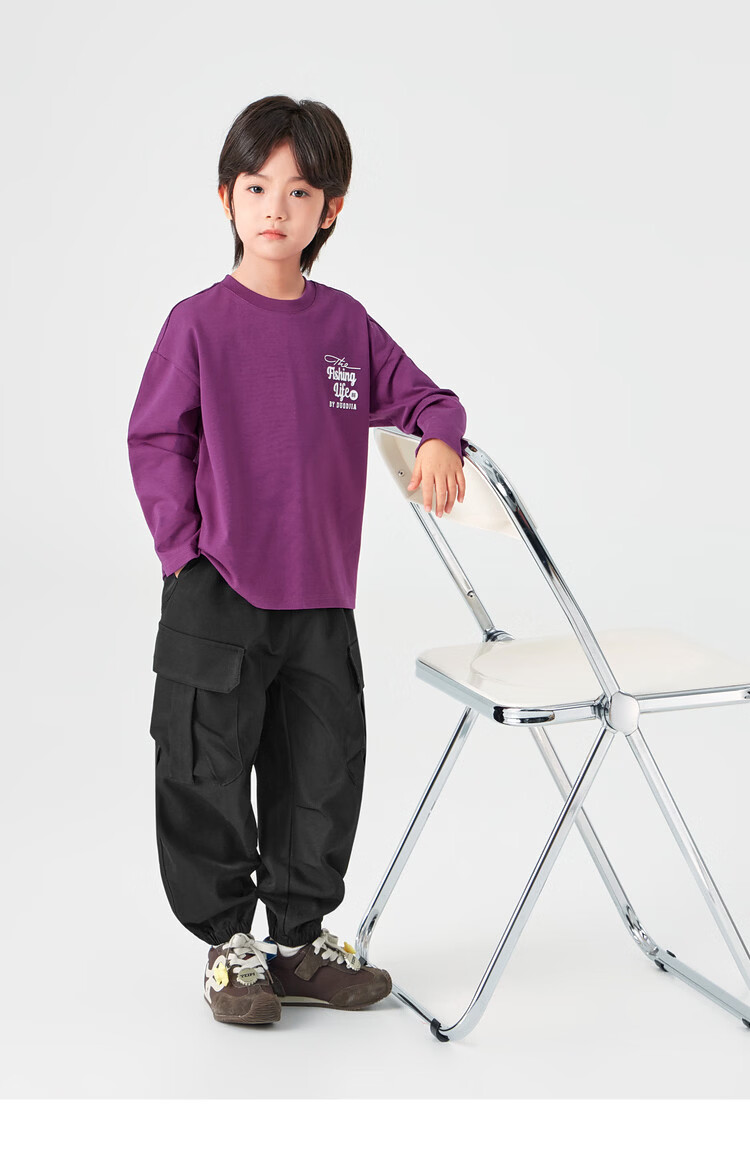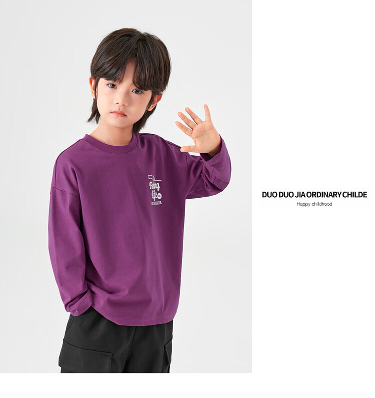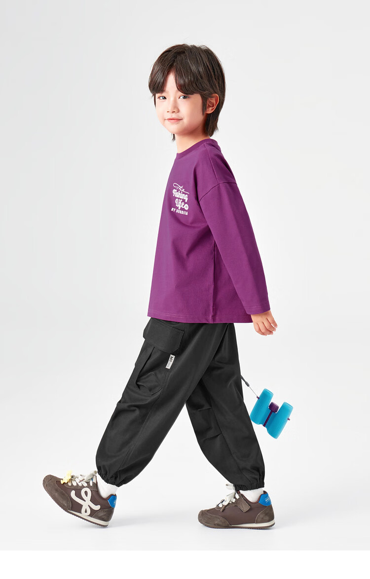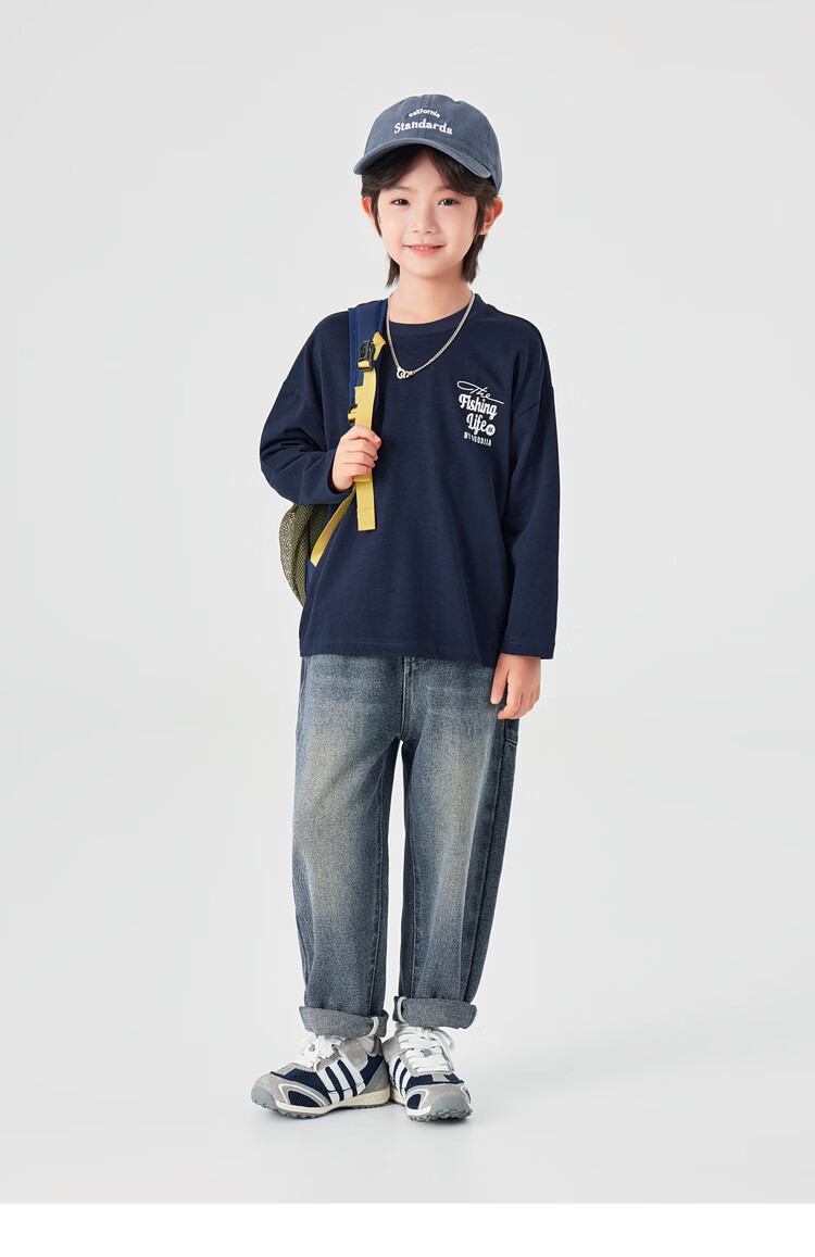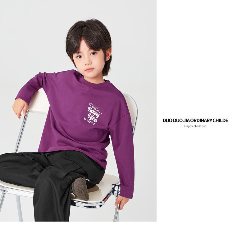 Duojia Class A Standard Children's T-shirt Spring and Autumn Adventure Bear Fun Long Sleeve Boys Casual Cotton Breathable Top Fashion White 110