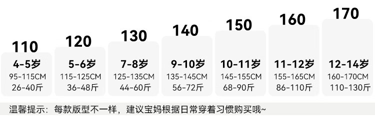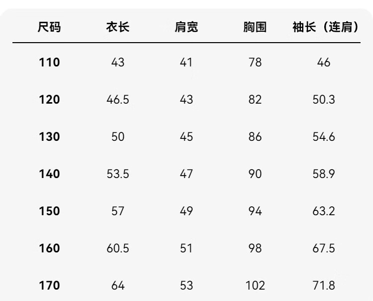 China (cm) 160-165/84-86 165-170 / 88-90 167-172 / 92-96 168-173 / 98-102 170-176 / 106-110