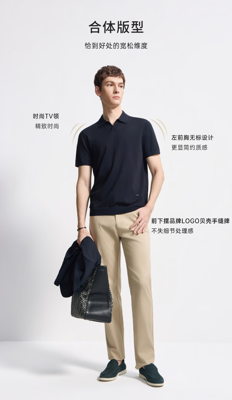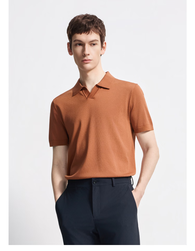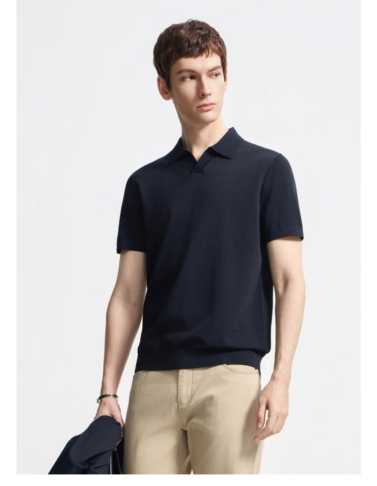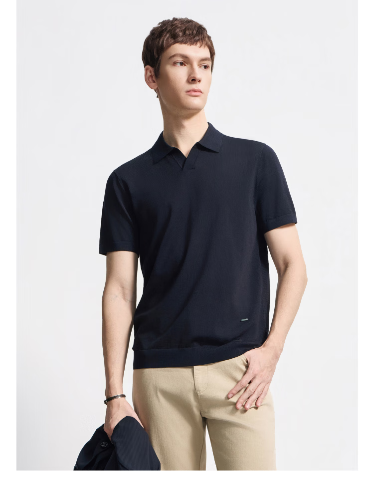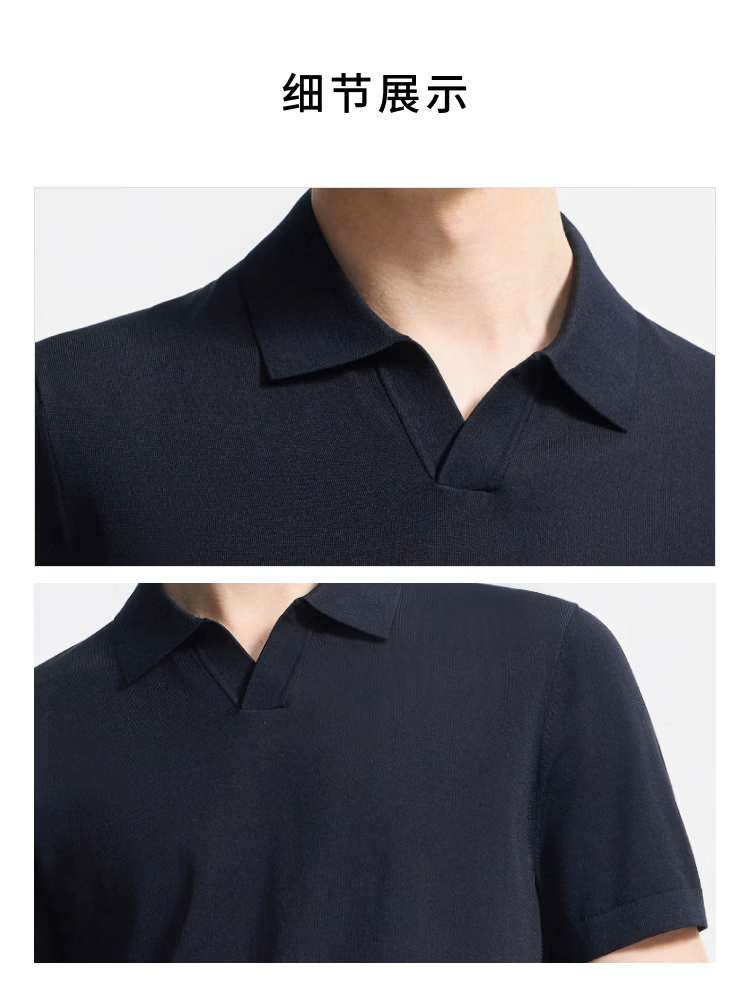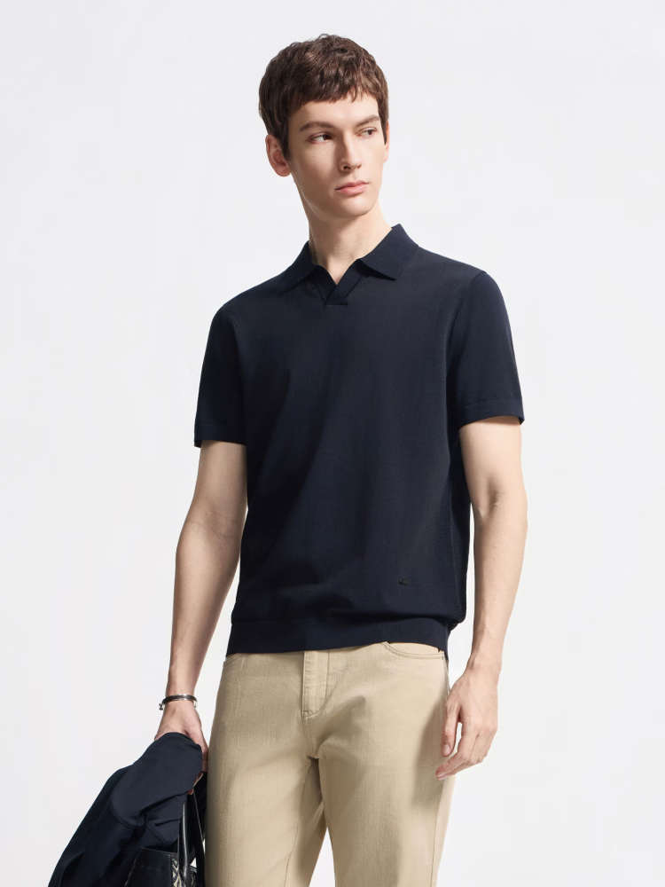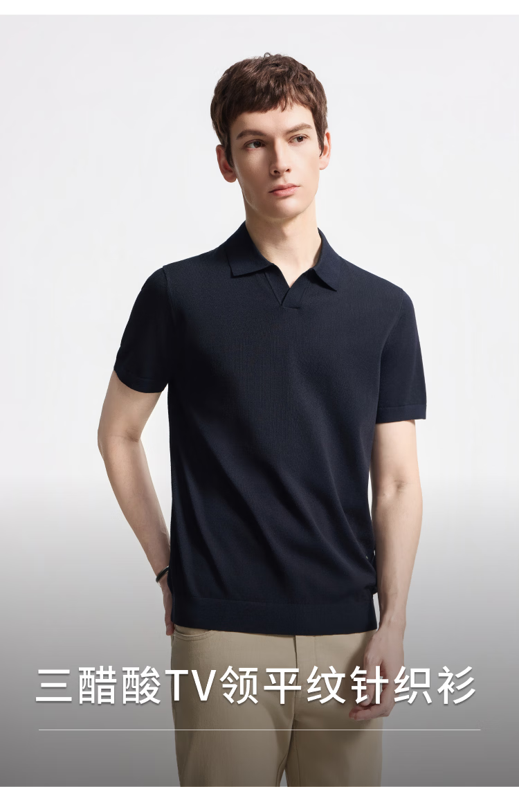 DIKENI 2026 spring and summer new men's quality triacetate cool breathable seagull collar short-sleeved knitted polo shirt black and blue L (50)