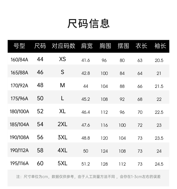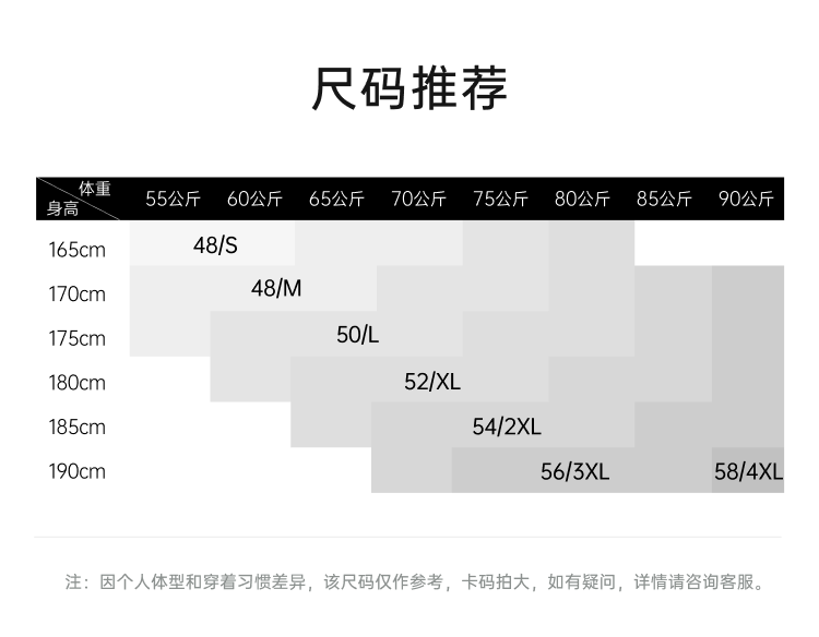China (cm) 165 / 88-90 170 / 96-98 175 / 108-110 180 / 118-122 185 / 126-130