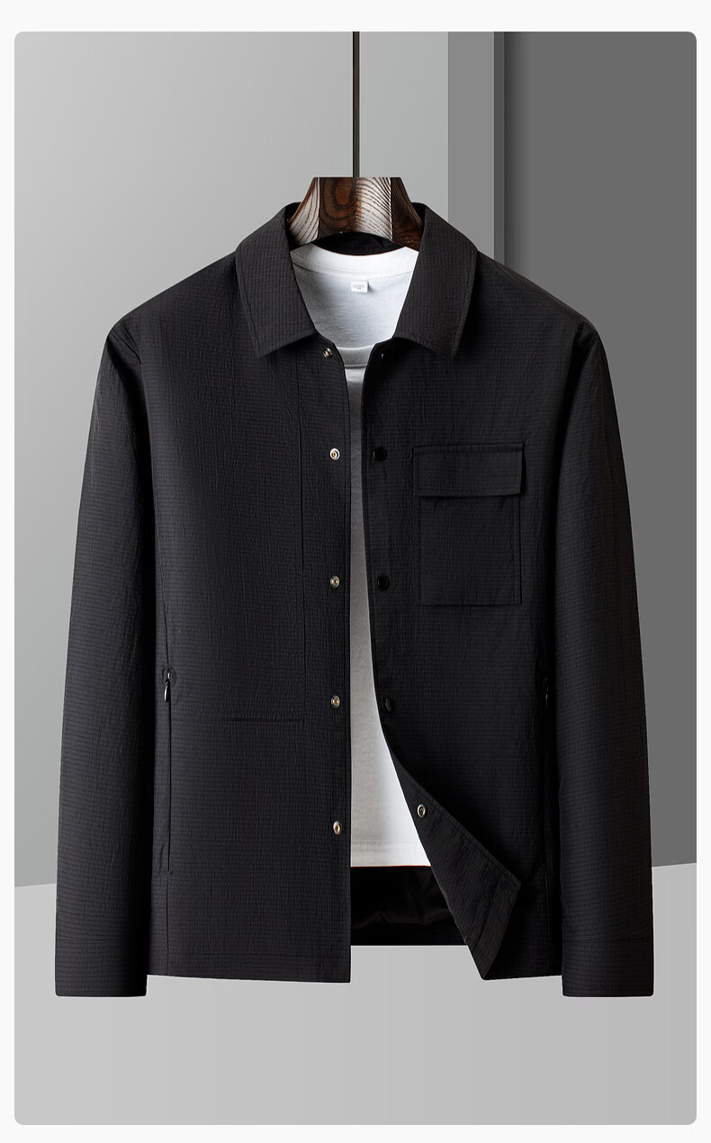 Snow Flying 26 Spring and Summer New Men's Jacket Business Basic Lapel Jacket Snap Button Commuting Comfortable Versatile Casual Black|8056 M/170/88A