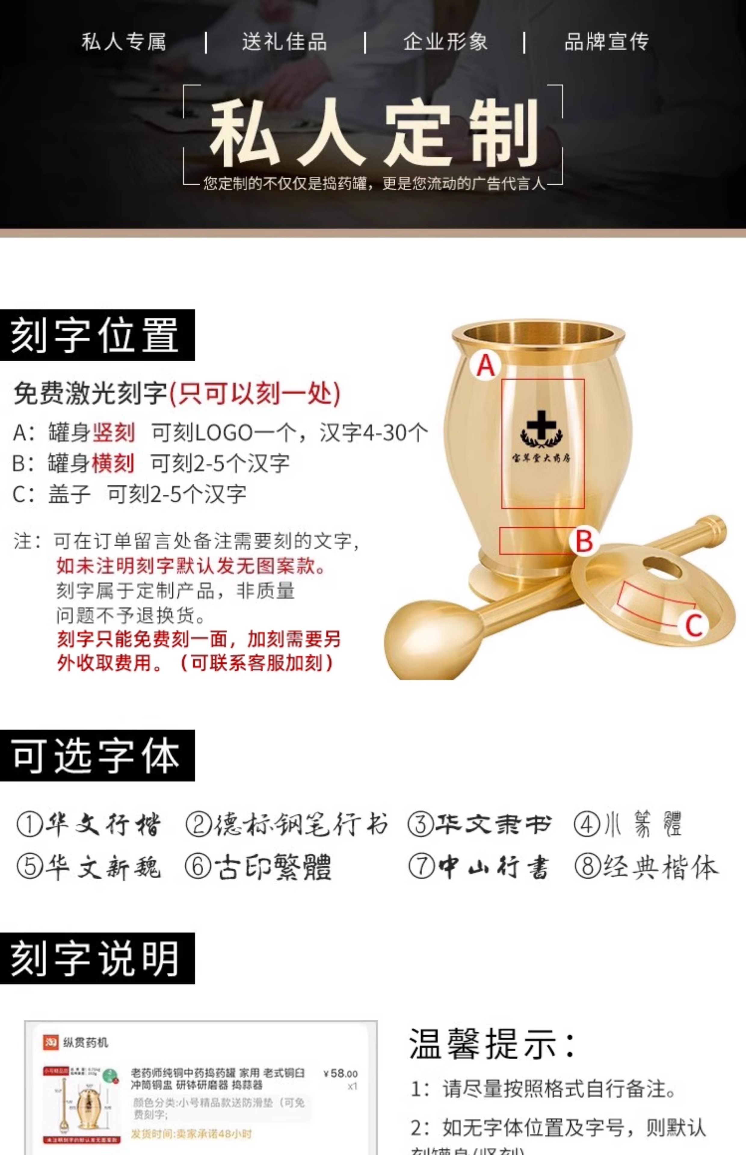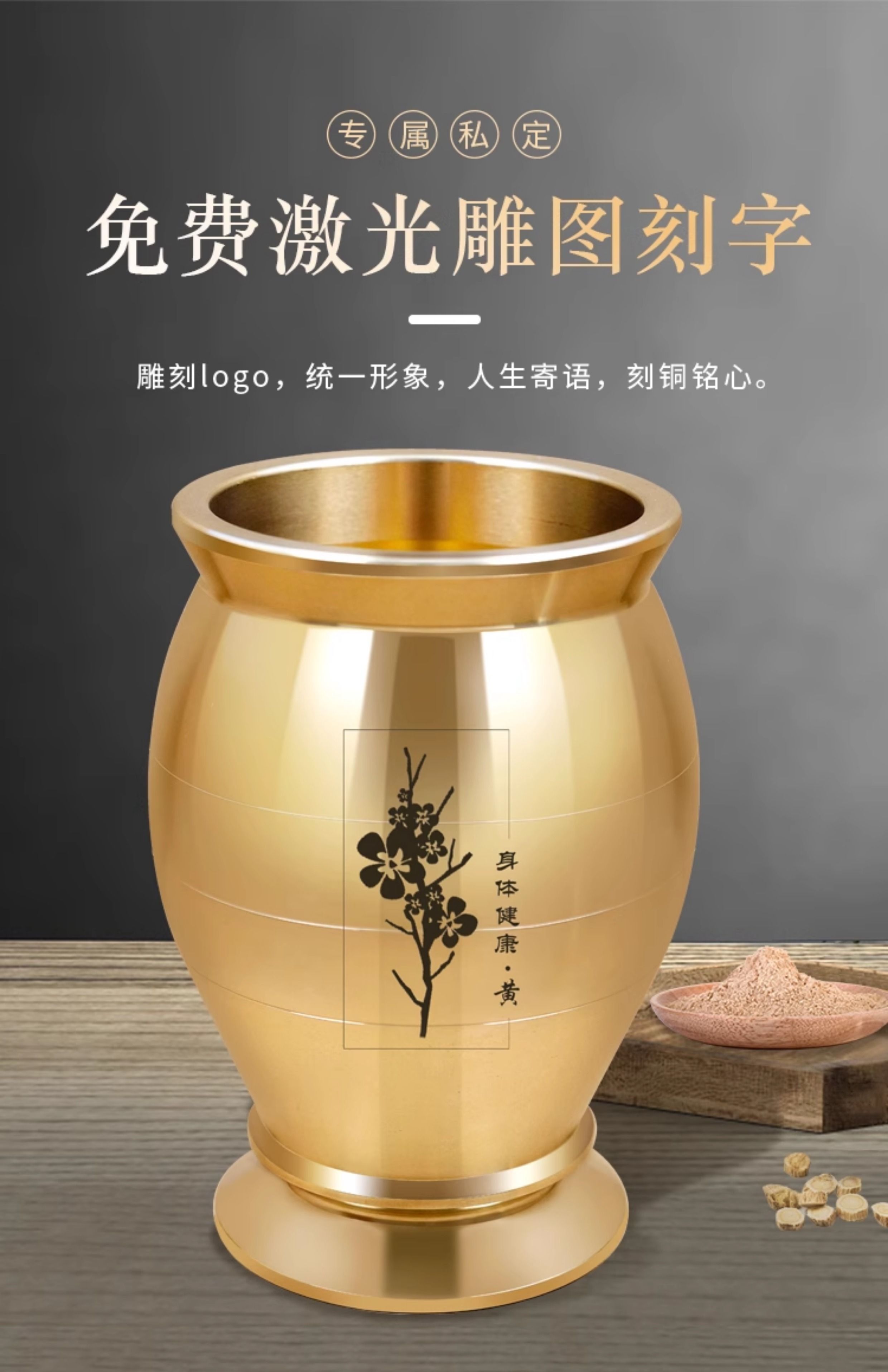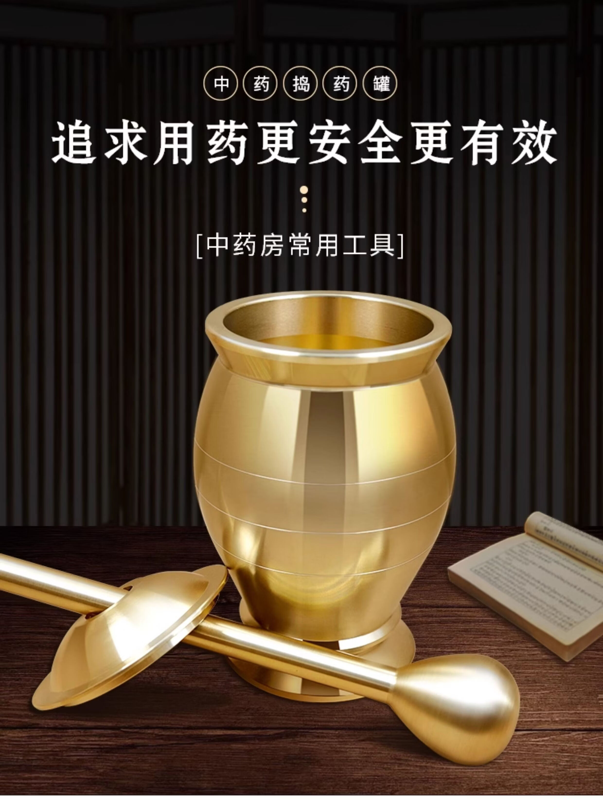 Handmade brass medicine jar, old-fashioned medicine brewing copper grinding bowl, home gift, thickening and upgrade, mini model/free leather pad
