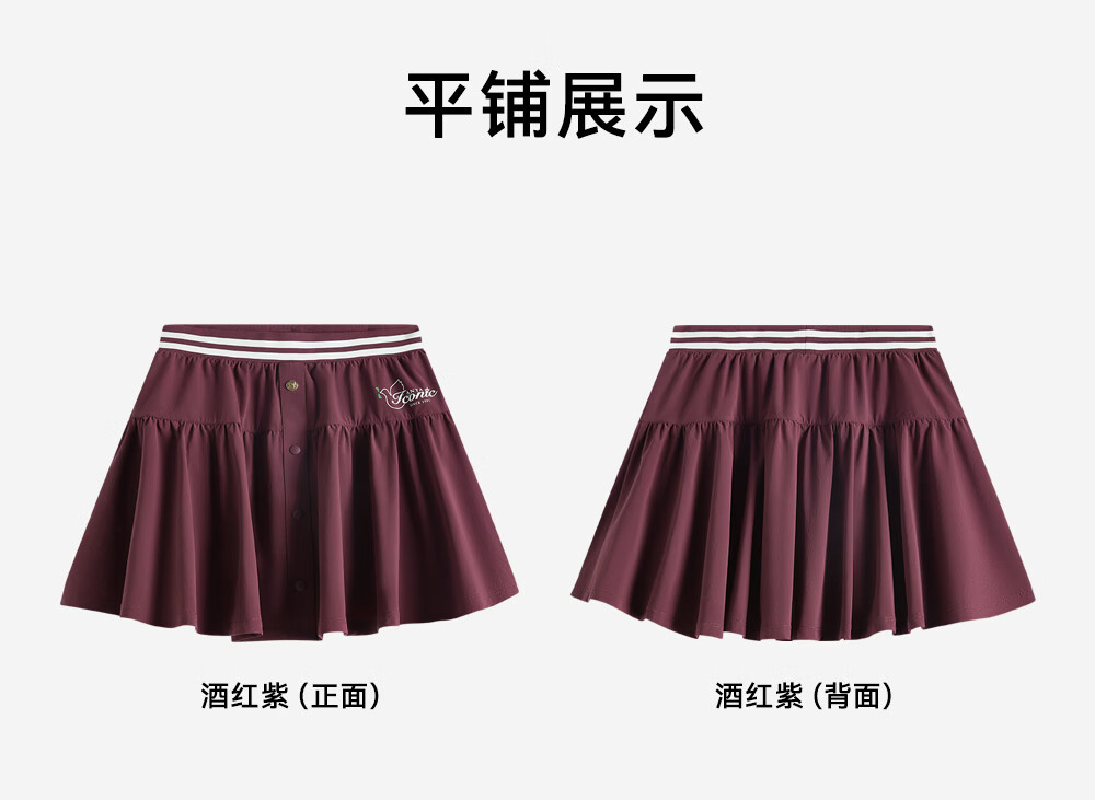 ANTA children's skirt, big girl's skirt, 26 summer trend pleated sports and leisure mall same style 362628311 burgundy purple-2 130 cm