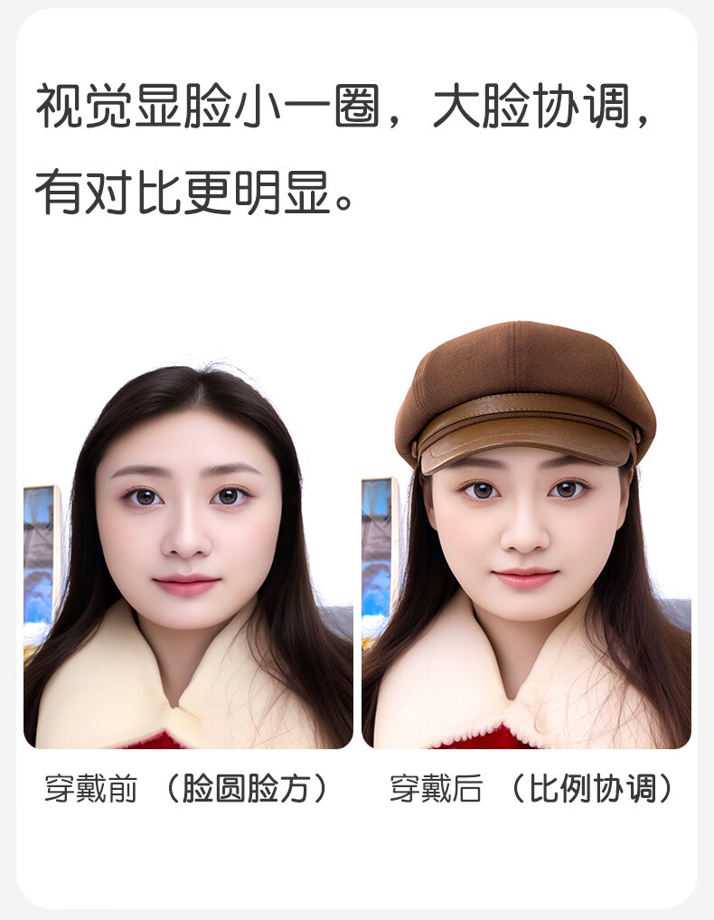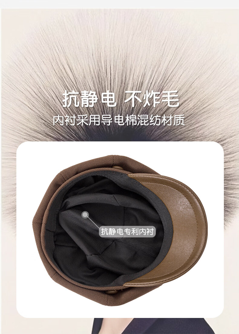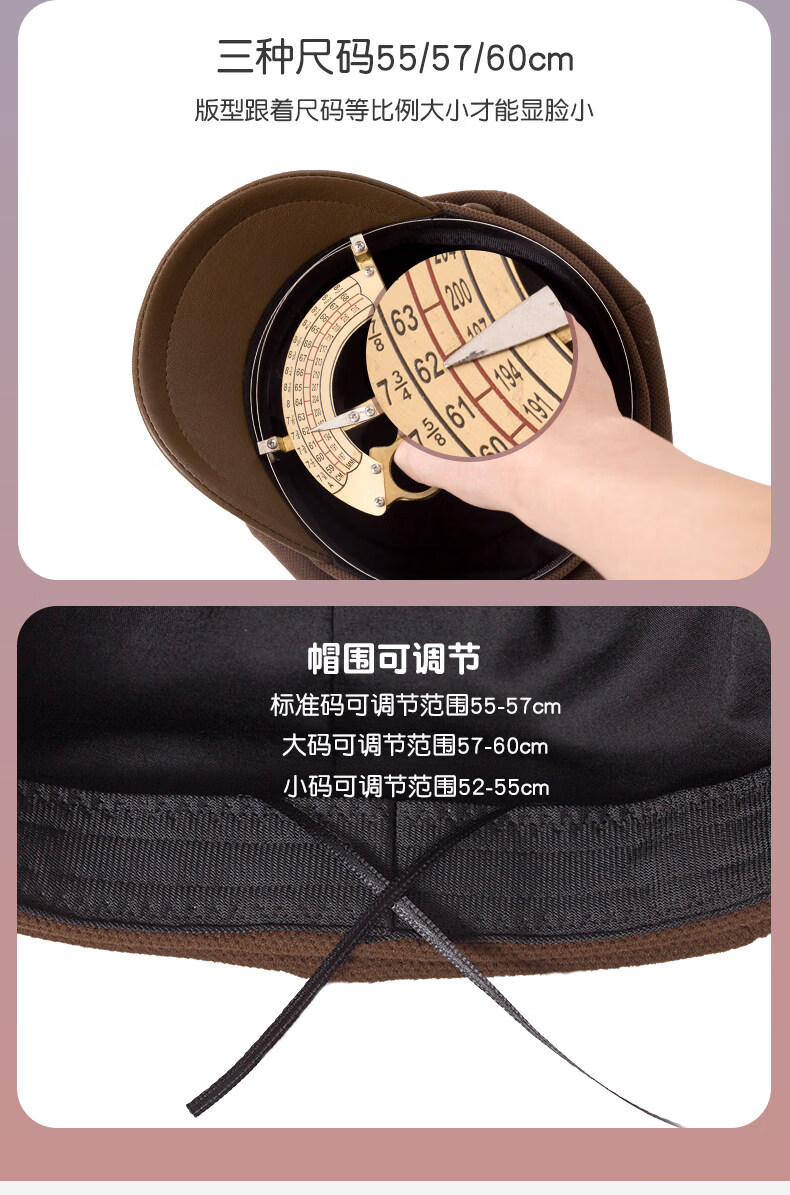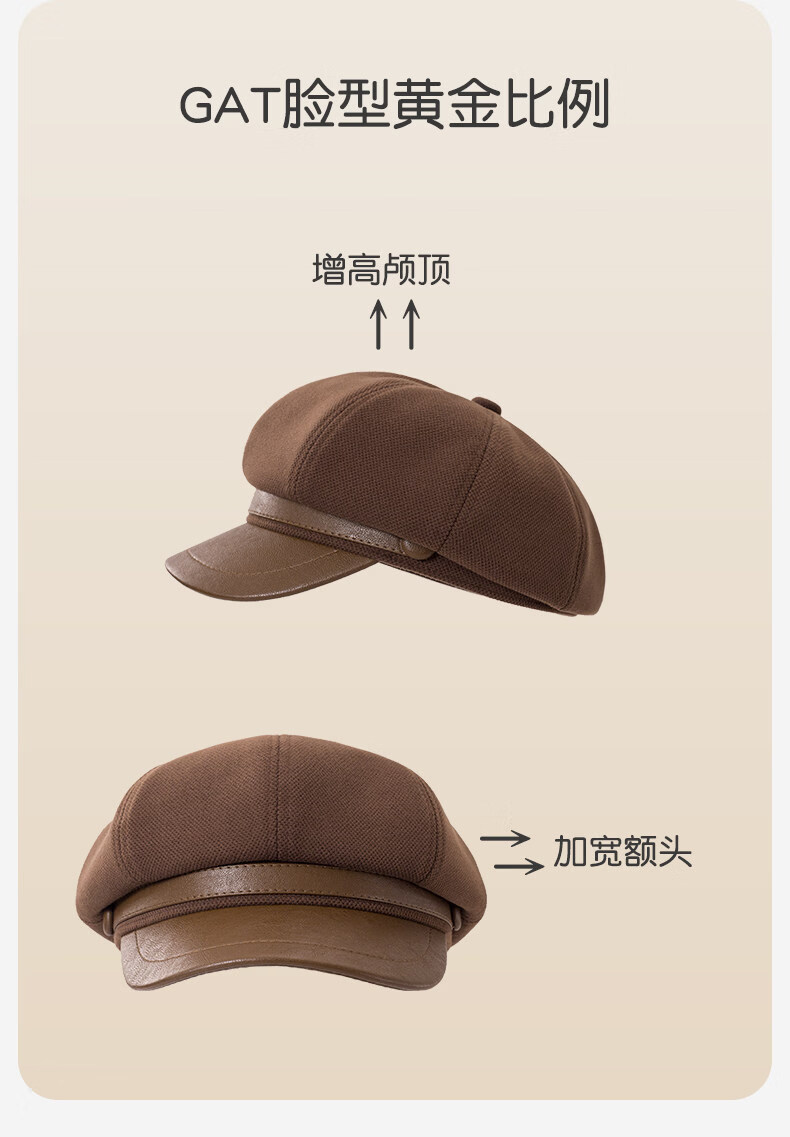 Suitable for square and round faces, small and large head circumference, PU leather octagonal hat, retro beret, women's autumn and winter woolen woolen hat for small head circumference, black M small size (52-55c)