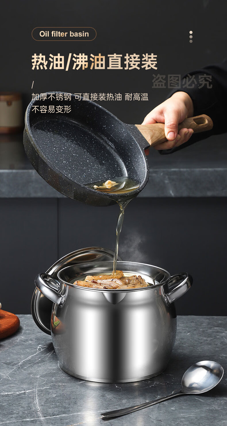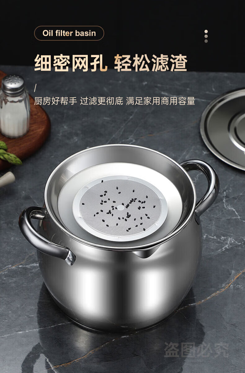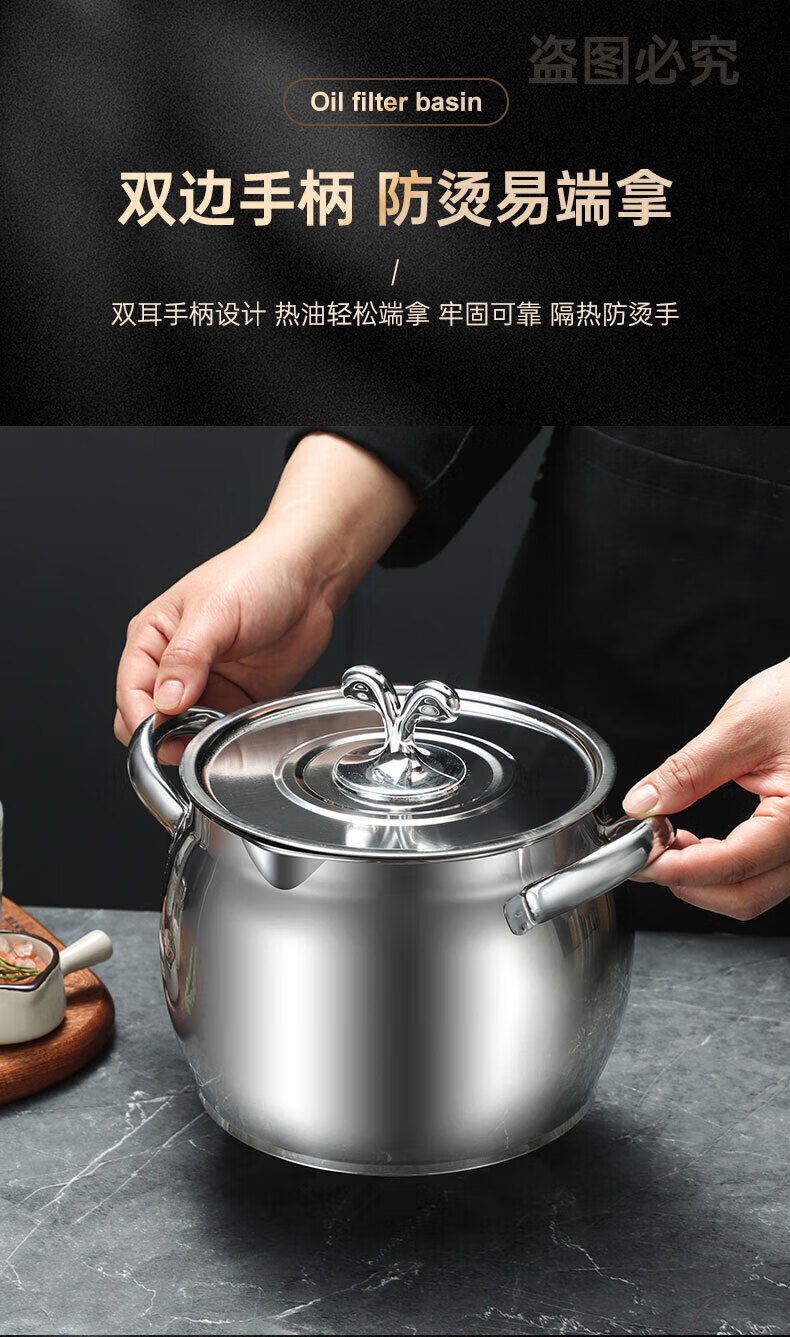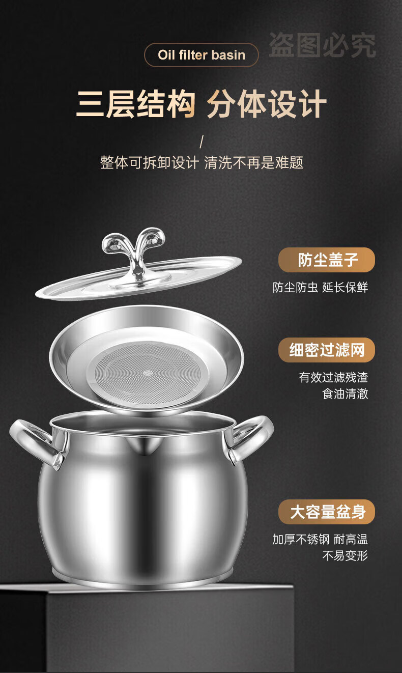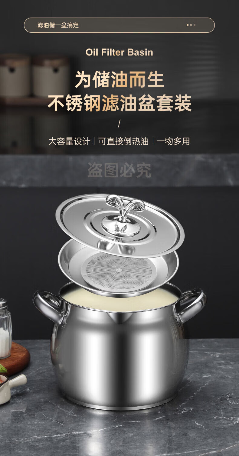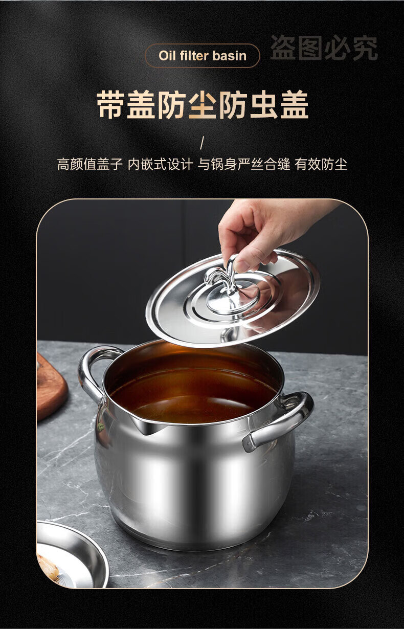 LOCK & LOCK quality same style 316 stainless steel lard tank with lid and filter kitchen meat oil tank household oil storage basin large 8Jin Jin equals 0.5kg capacity comes with filter + lid + spoon 316 stainless steel high resistance