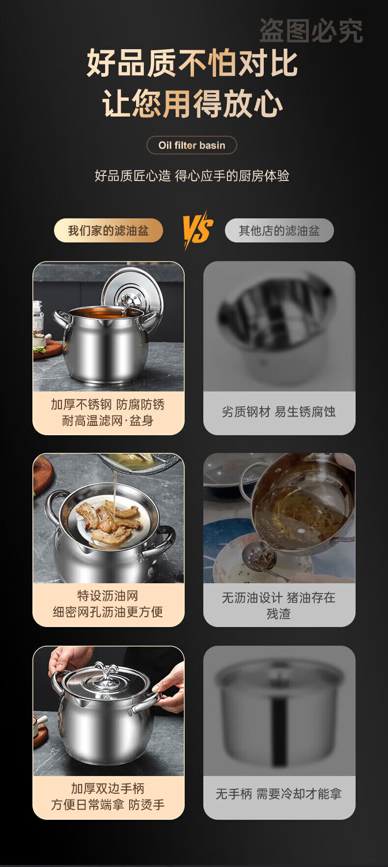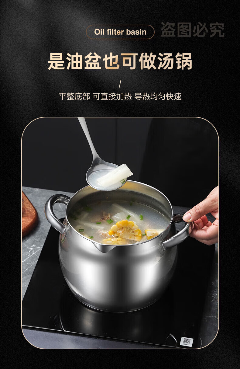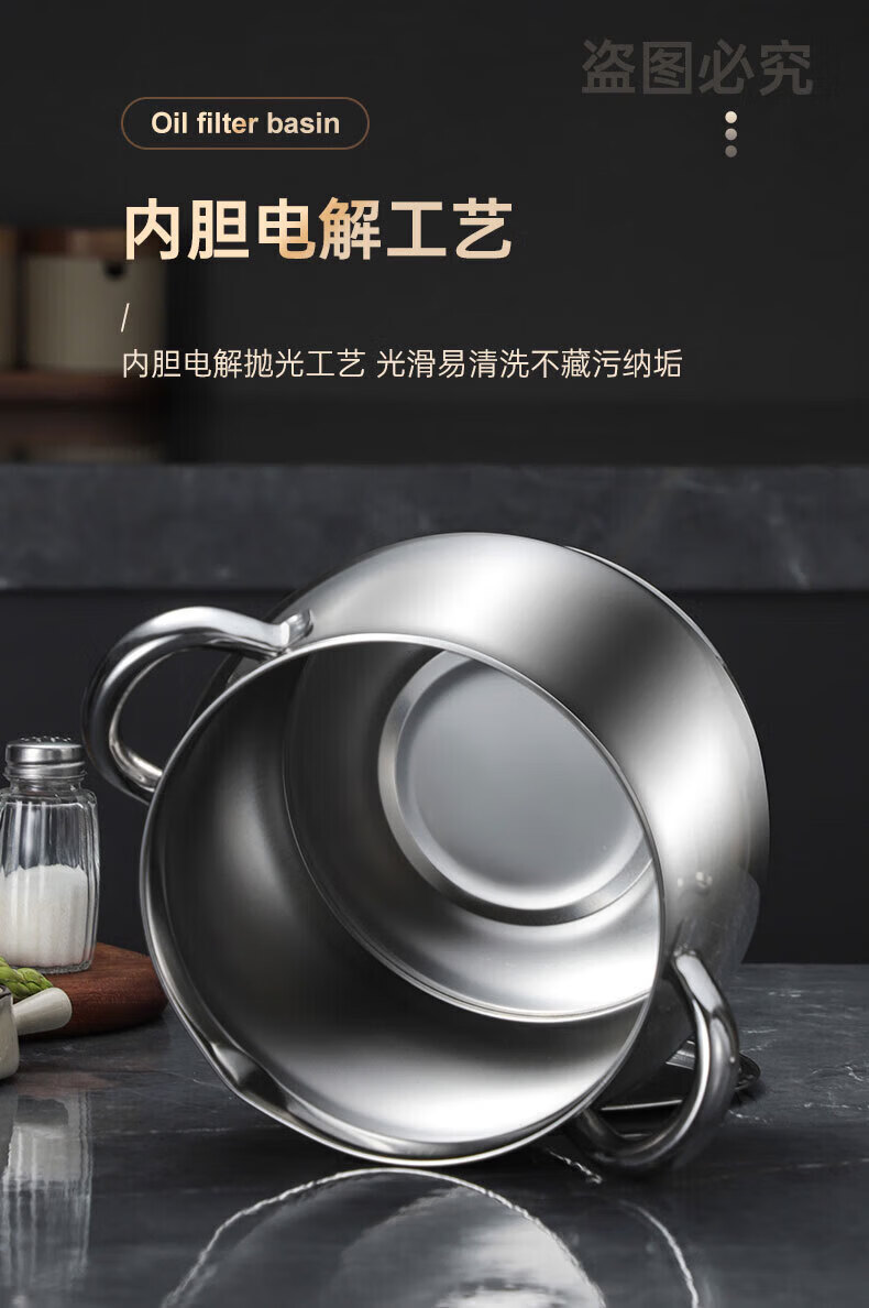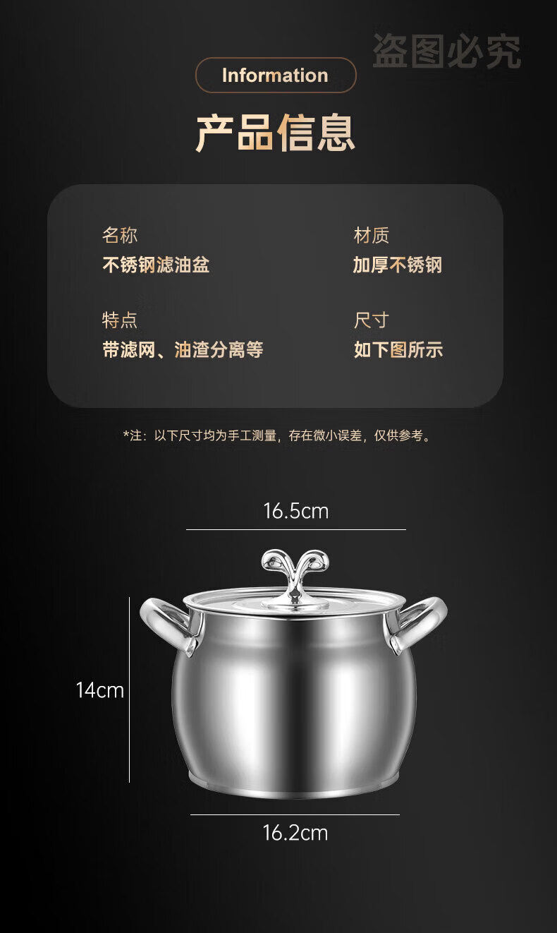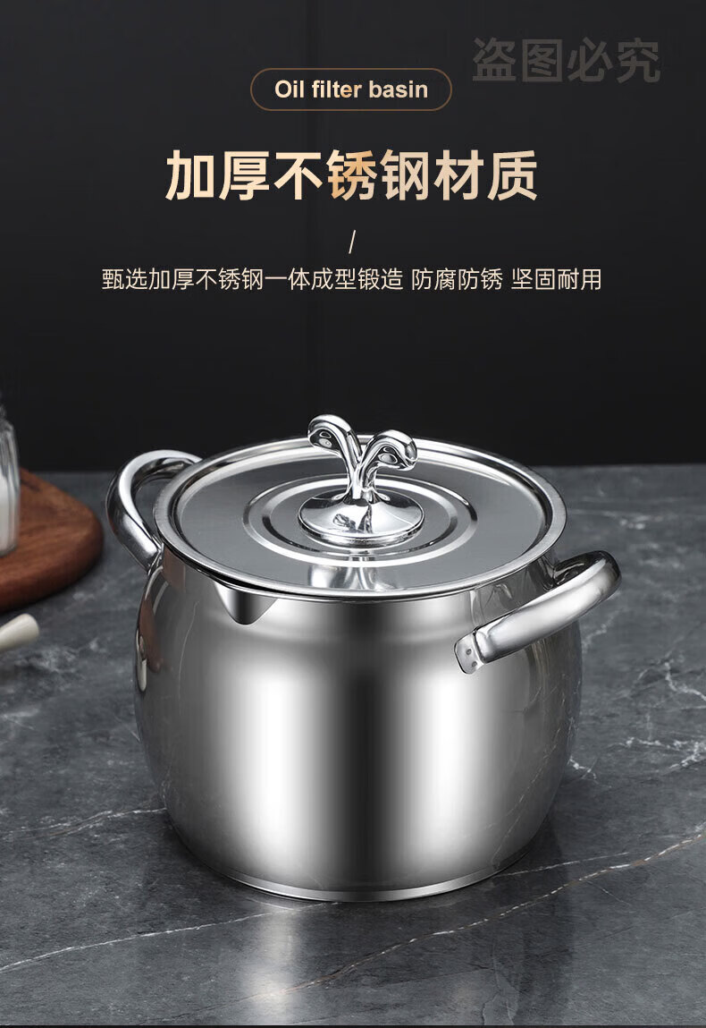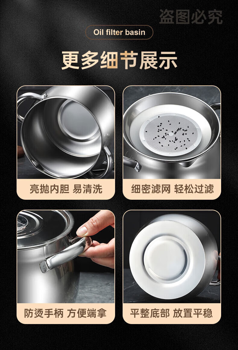 LOCK & LOCK quality same style 316 stainless steel lard tank with lid and filter kitchen meat oil tank household oil storage basin large 8Jin Jin equals 0.5kg capacity comes with filter + lid + spoon 316 stainless steel high resistance